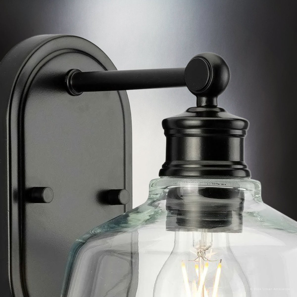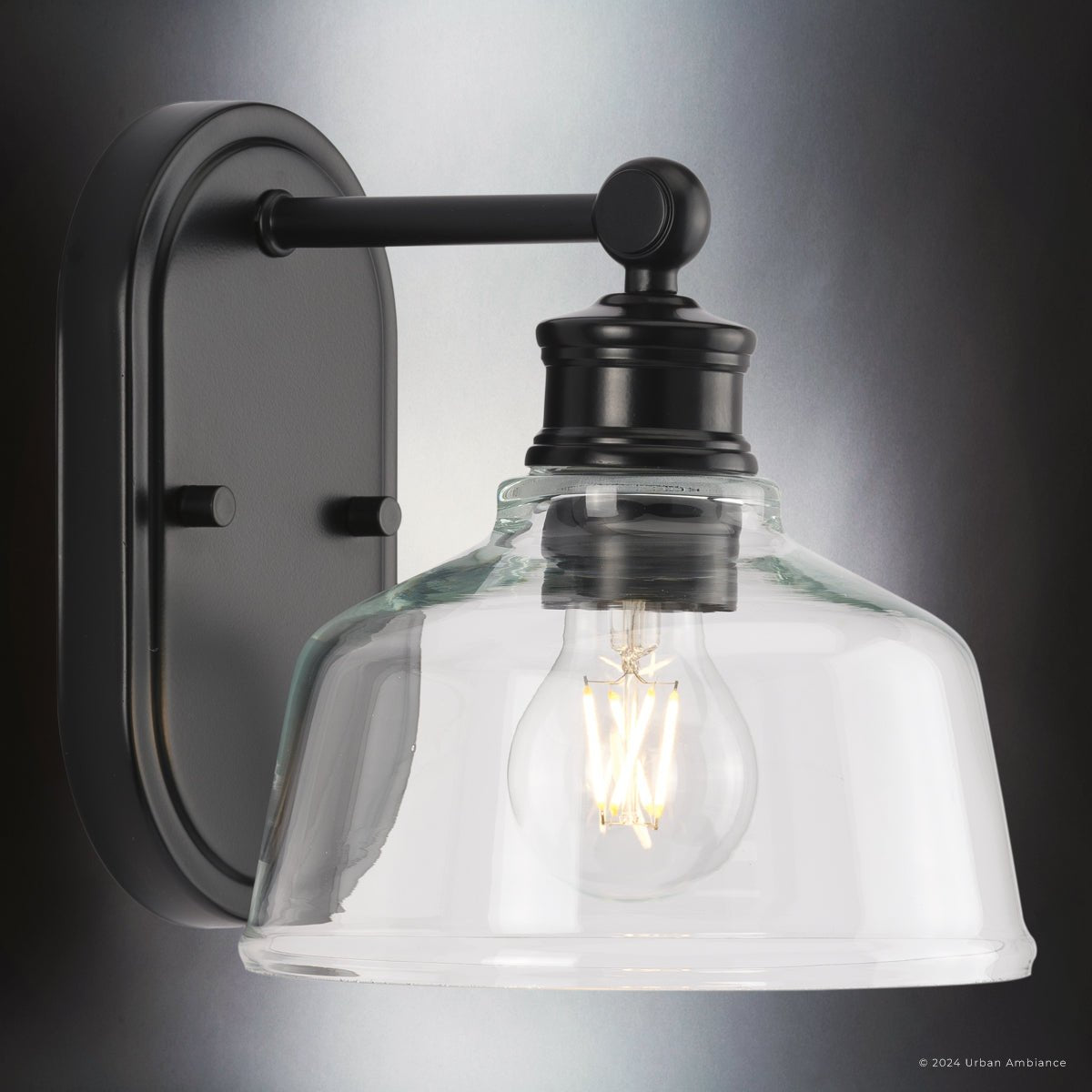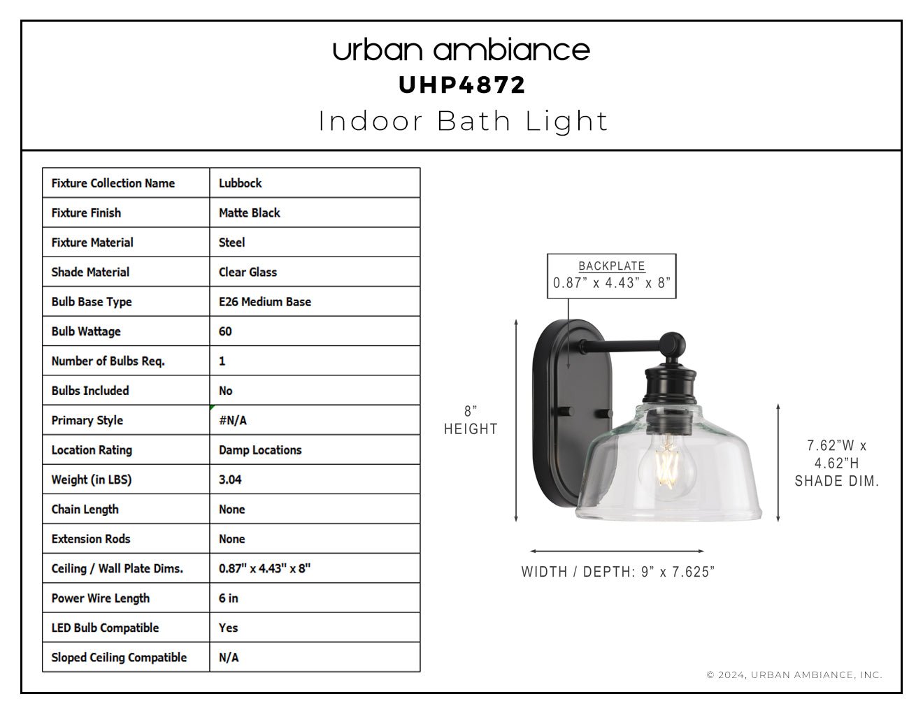 UHP4872 Vintage Indoor Bath Light, 8''H x 9"W x 7-5/8''D, Matte Black Finish, Lubbock Collection