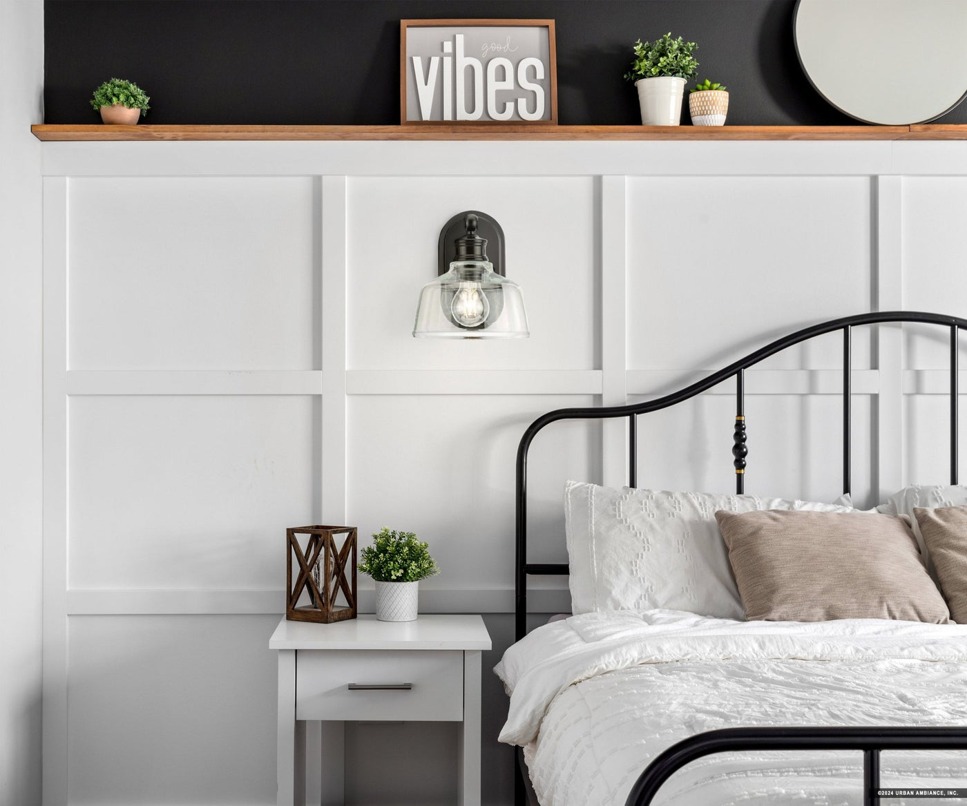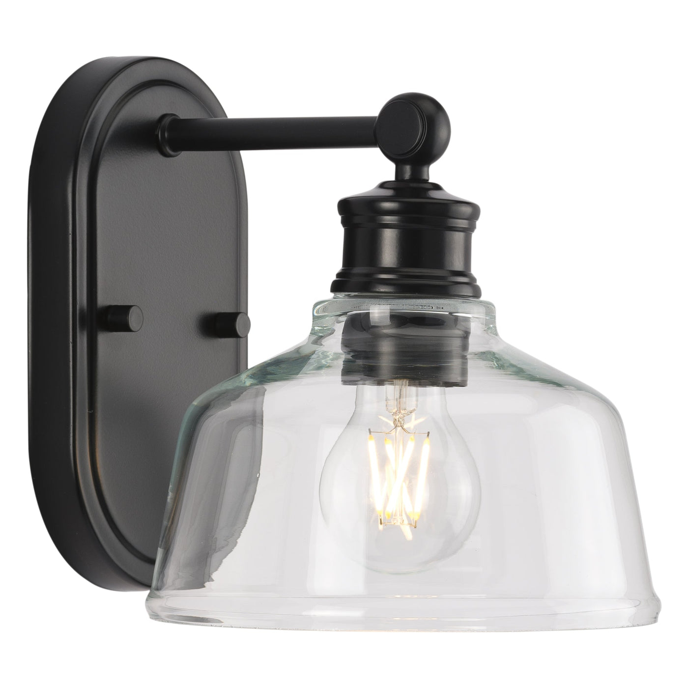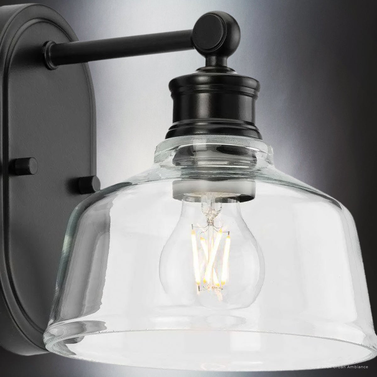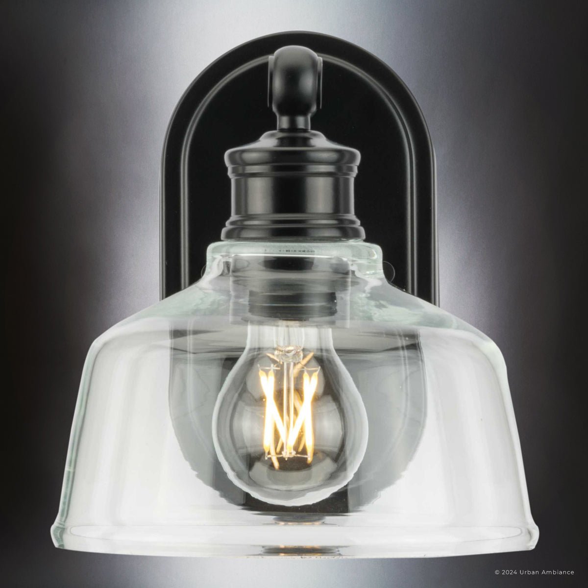 UHP4872 Vintage Indoor Bath Light, 8''H x 9"W x 7-5/8''D, Matte Black Finish, Lubbock Collection