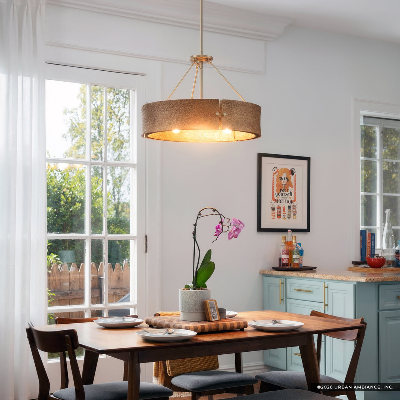 UHP5034 Modern Rustic Indoor Pendant, 13-3/8''H x 16-1/4"W x 19''D, Soft Gold Finish, Richmond Collection
