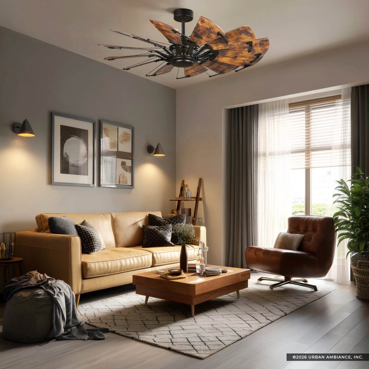 UHP9471 Tuscan Indoor Ceiling Fan, 17-3/8''H x 52"W x 52''D, Architectural Bronze Finish, Saybrook Collection