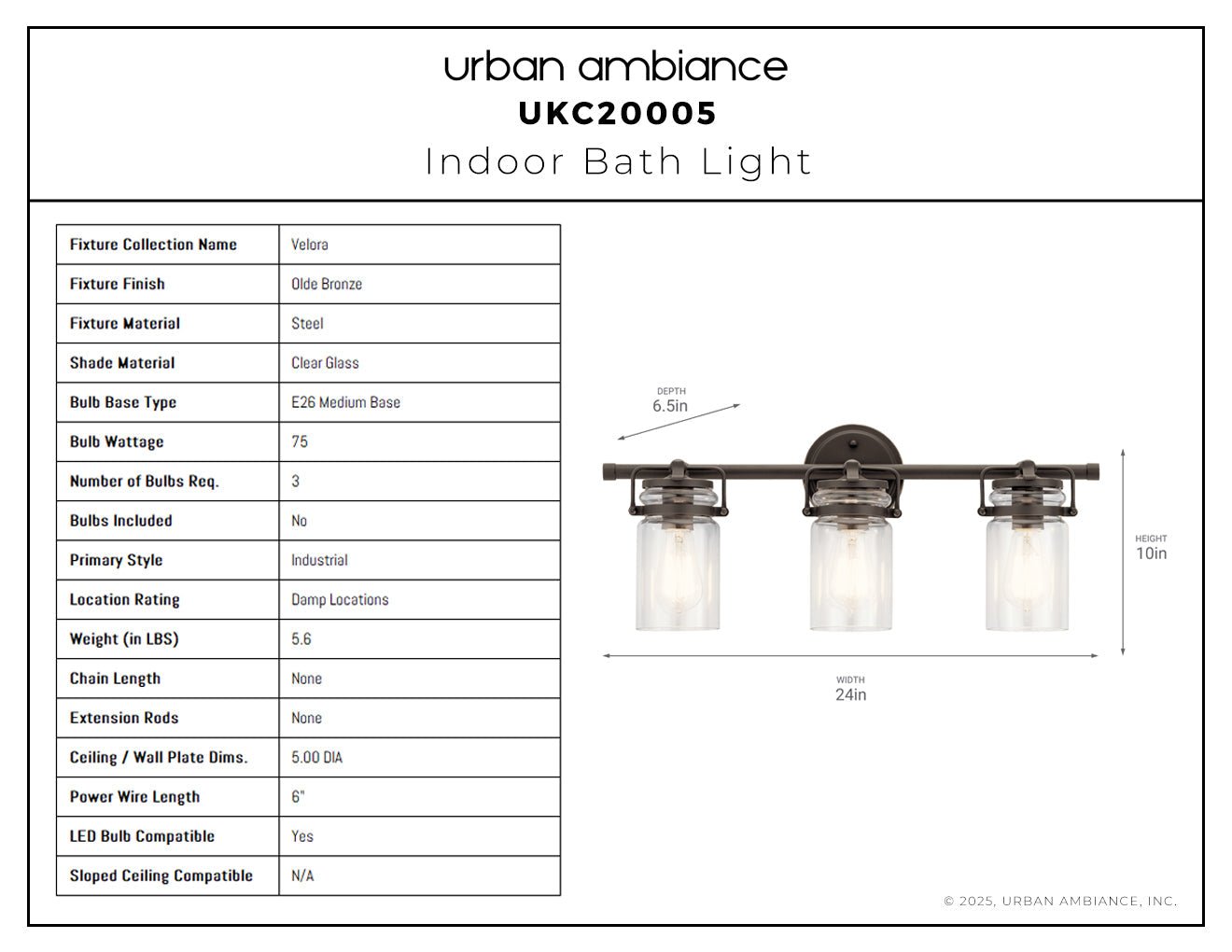 UKC20005 Industrial Indoor Bath Light, 10''H x 24''W x 6.75''Dep, Olde Bronze Finish, Velora Collection