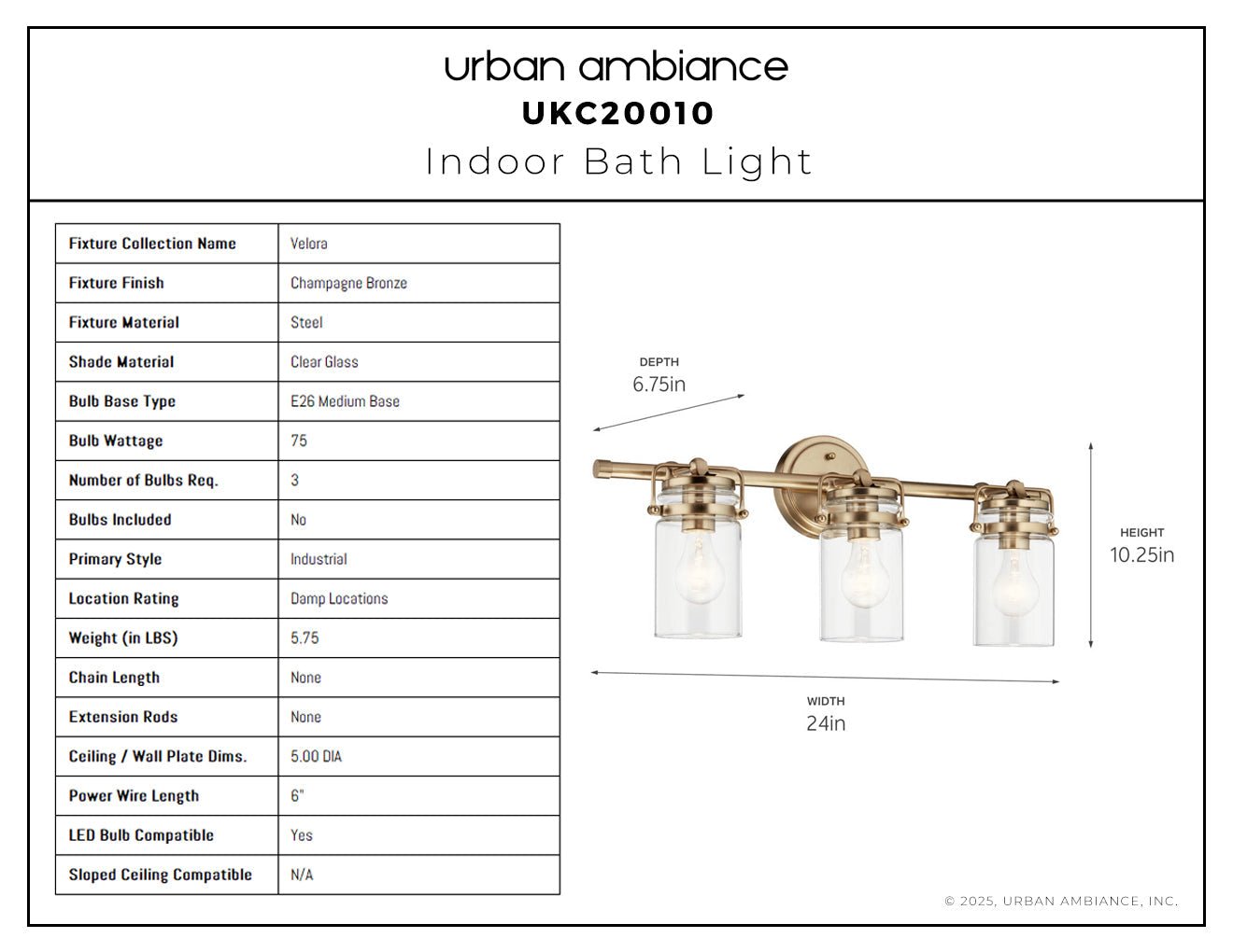 UKC20010 Industrial Indoor Bath Light, 10.25''H x 24''W x 6.75''Dep, Champagne Bronze Finish, Velora Collection