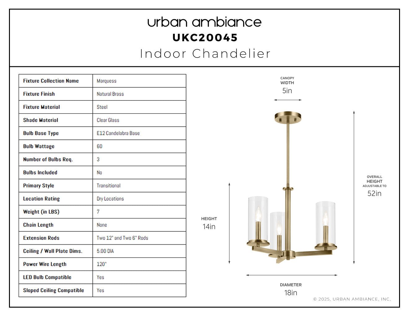 UKC20045 Transitional Indoor Chandelier, 14''H x 18''W x 18''Dep, Natural Brass Finish, Marquess Collection