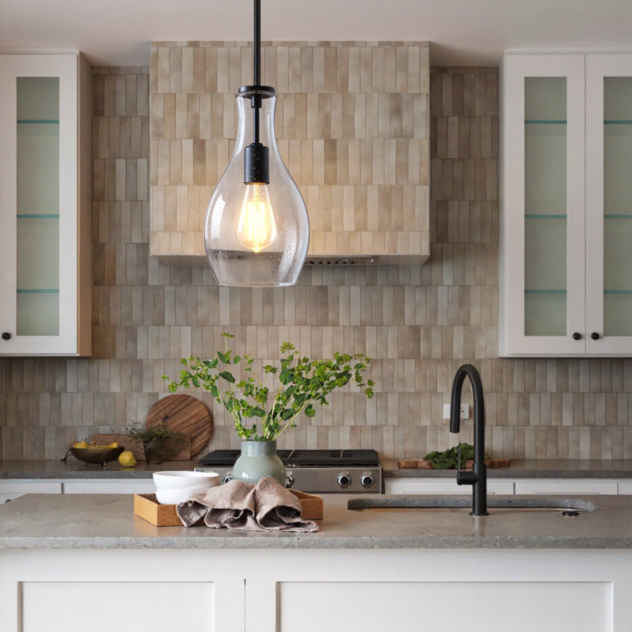 UKC20101 Casual Indoor Pendant, 13.75''H x 7''W x 7''Dep, Black Finish, Opalyn Collection