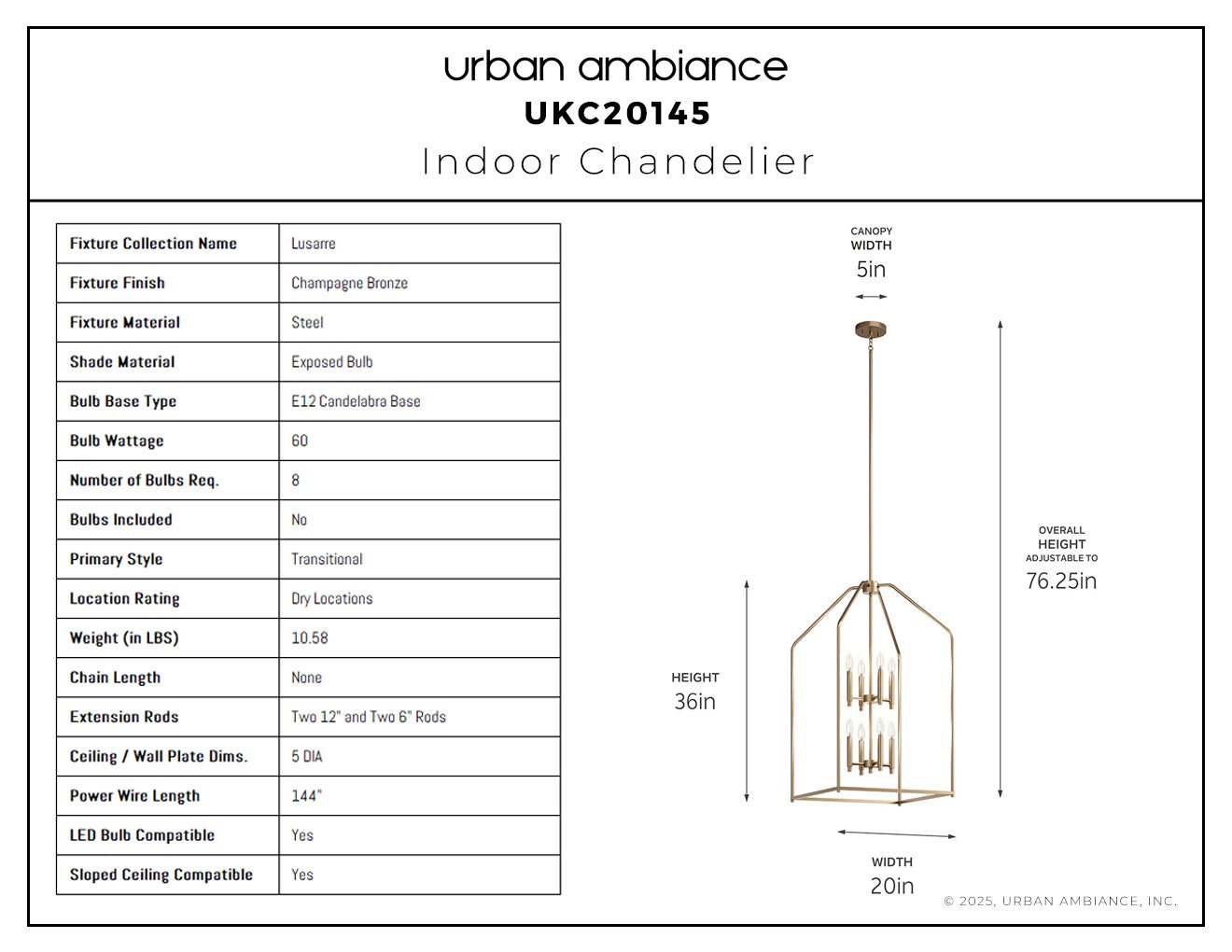 UKC20145 Transitional Indoor Chandelier, 36''H x 20''W x 20''Dep, Champagne Bronze Finish, Lusarre Collection