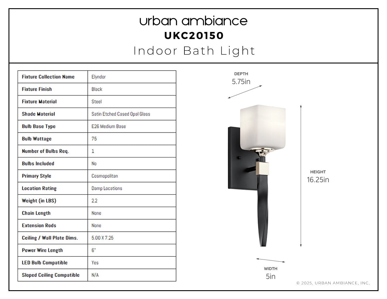 UKC20150 Cosmopolitan Indoor Bath Light, 16.25''H x 5''W x 5.75''Dep, Black Finish, Elyndor Collection