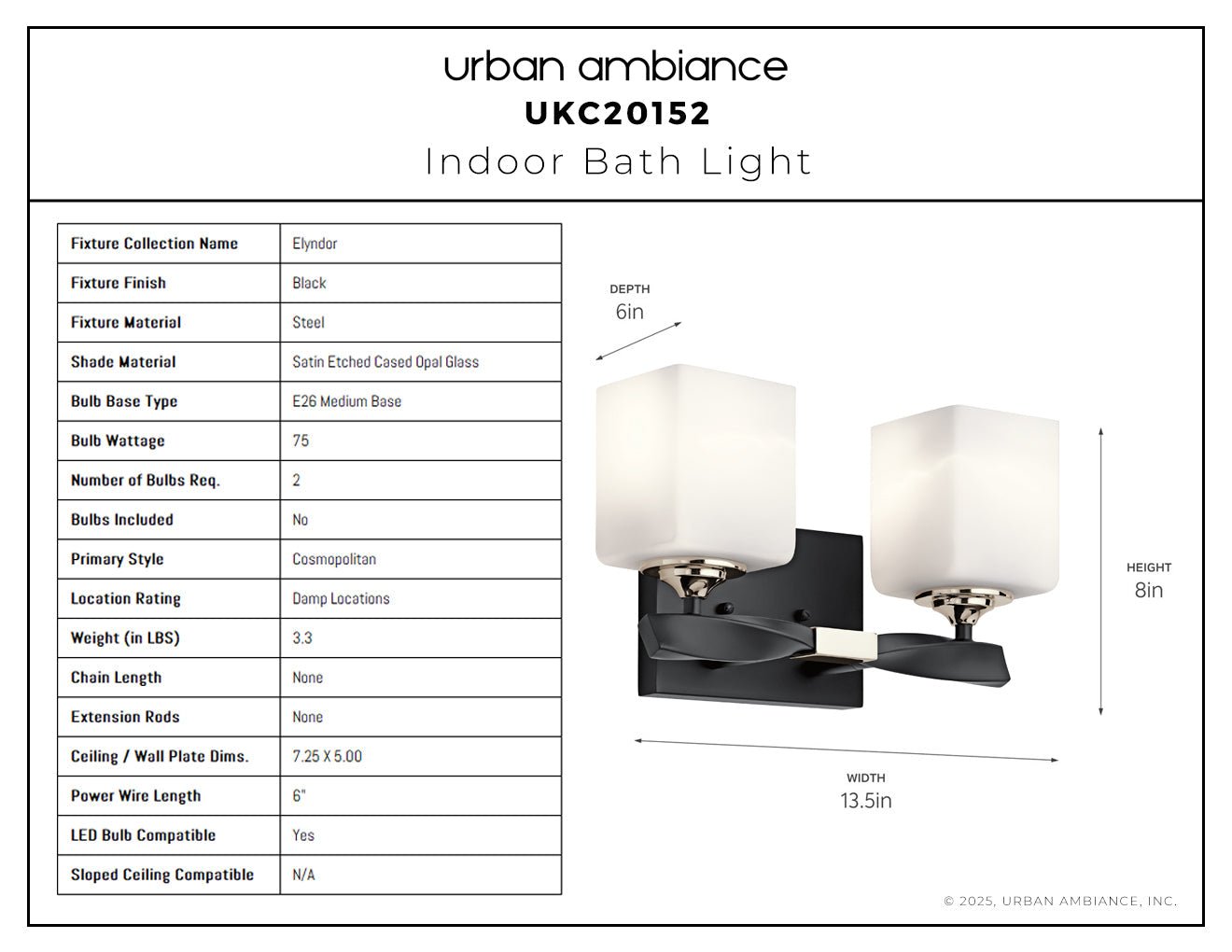 UKC20152 Cosmopolitan Indoor Bath Light, 7.75''H x 13.5''W x 6''Dep, Black Finish, Elyndor Collection
