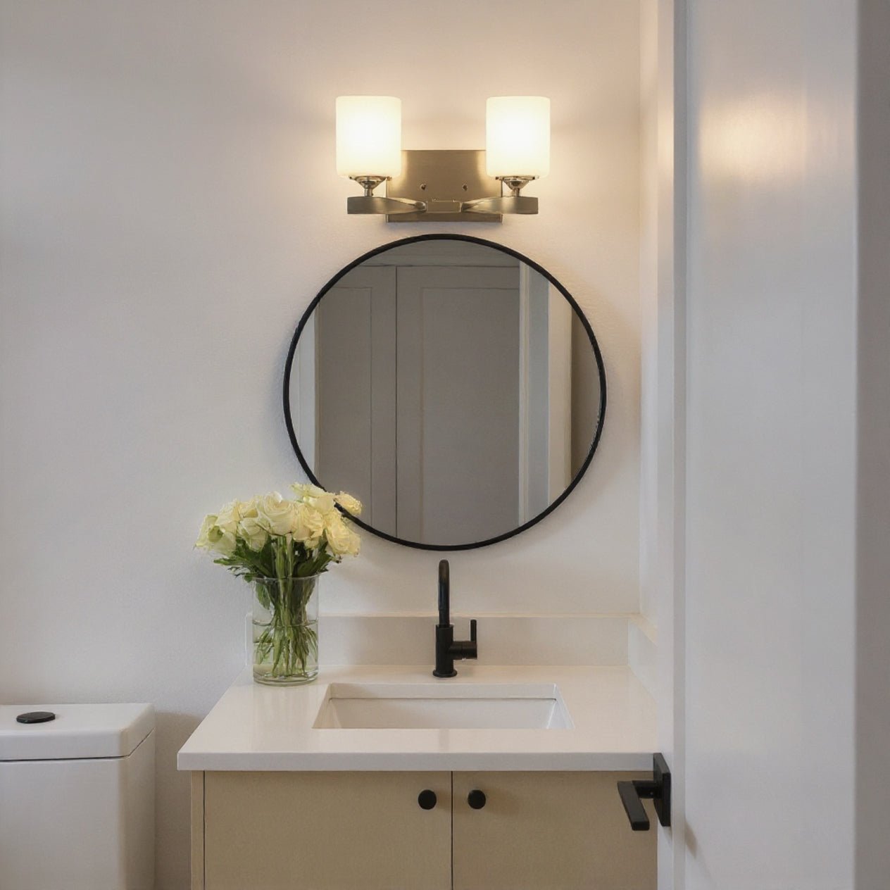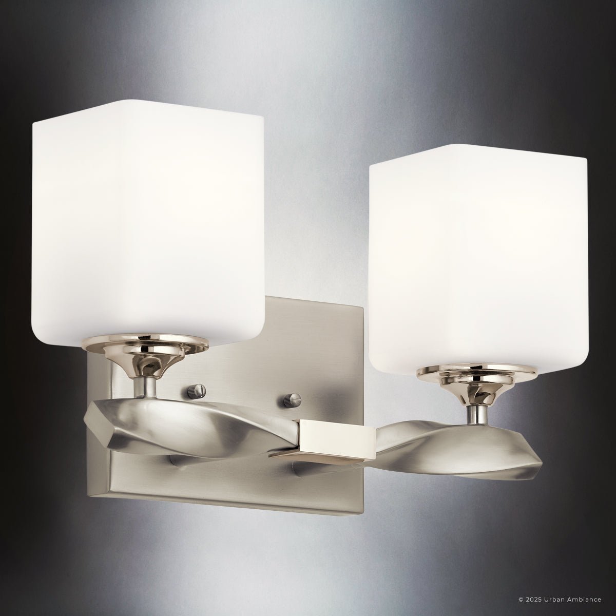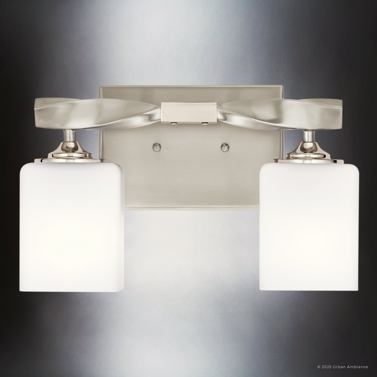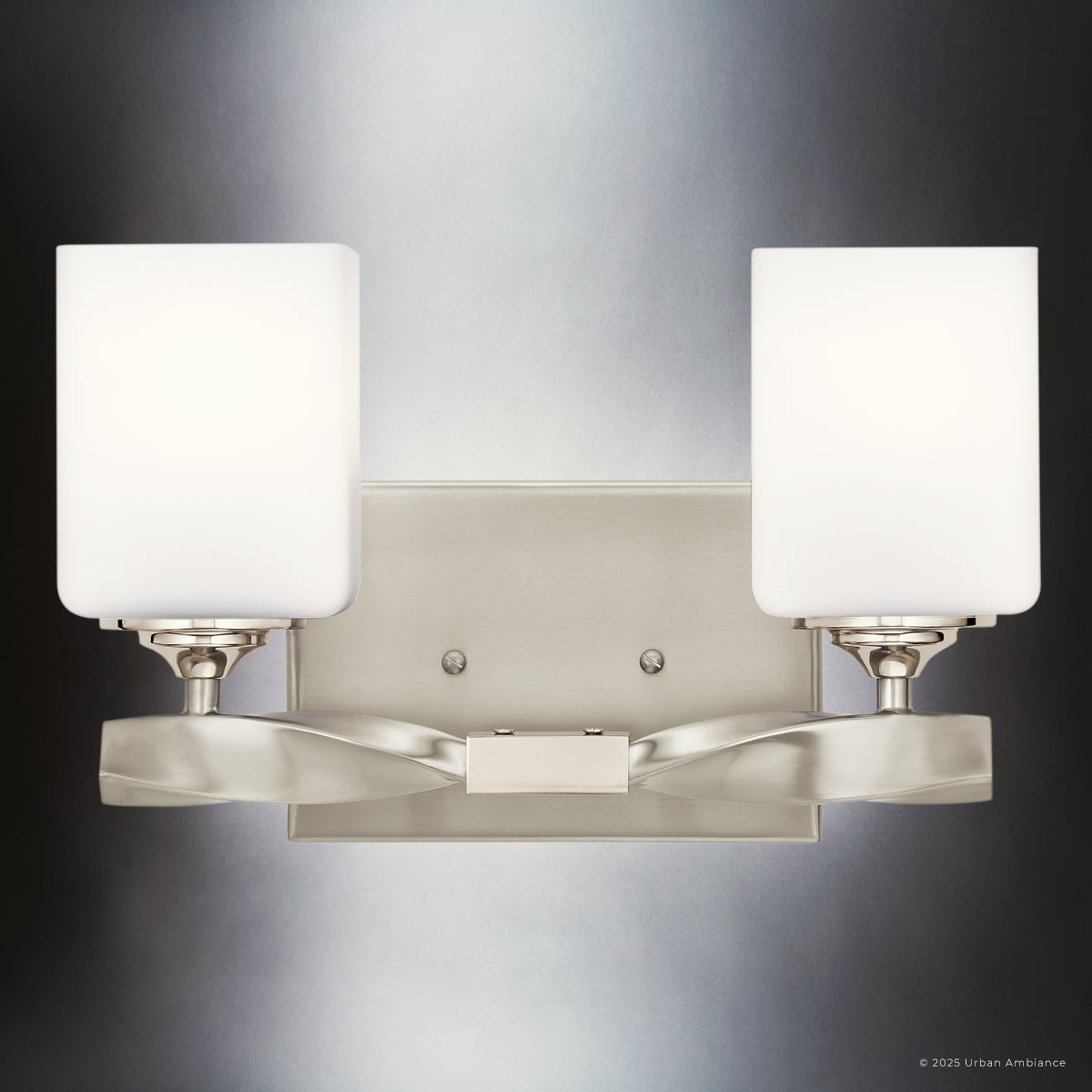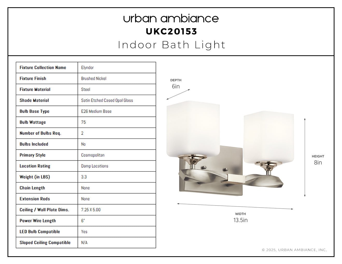 UKC20153 Cosmopolitan Indoor Bath Light, 7.75''H x 13.5''W x 6''Dep, Brushed Nickel Finish, Elyndor Collection