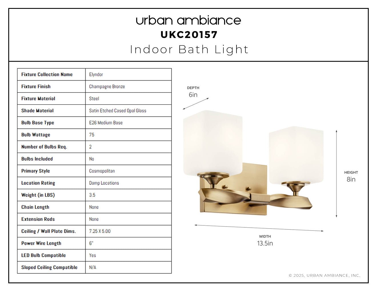 UKC20157 Cosmopolitan Indoor Bath Light, 8''H x 13.5''W x 6''Dep, Champagne Bronze Finish, Elyndor Collection