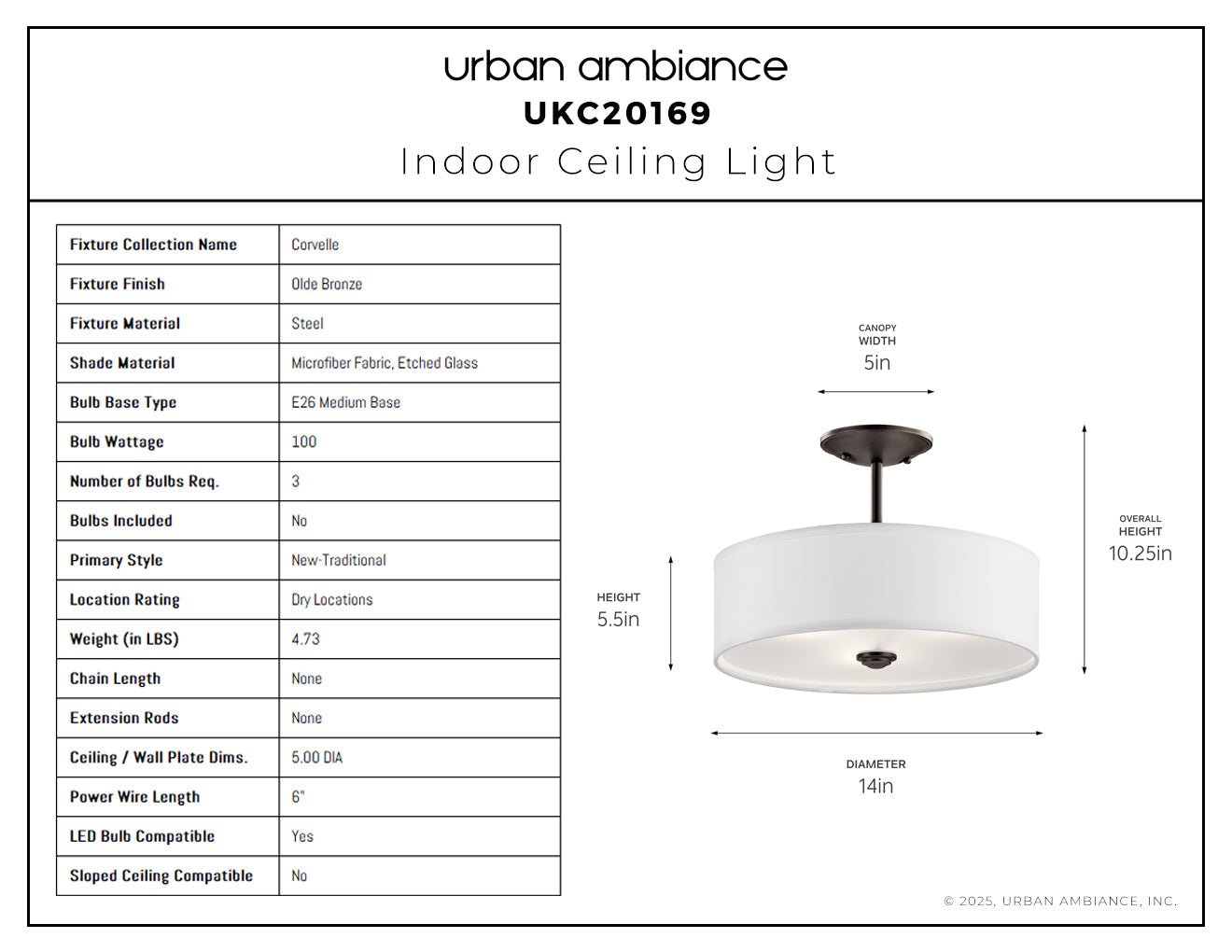 UKC20169 New Traditional Indoor Ceiling Light, 10''H x 14''W x 14''Dep, Olde Bronze Finish, Corvelle Collection