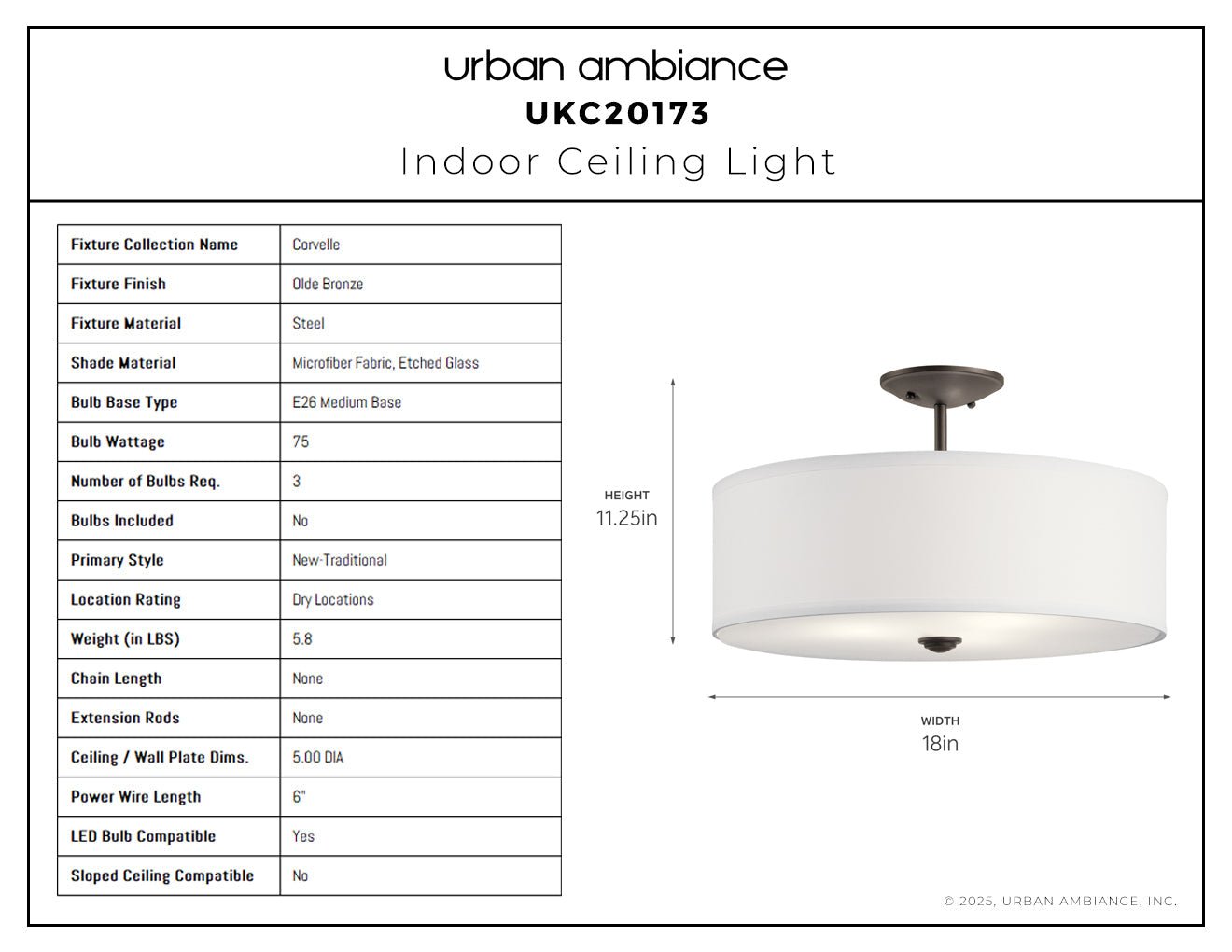 UKC20173 New Traditional Indoor Ceiling Light, 11.5''H x 18''W x 18''Dep, Olde Bronze Finish, Corvelle Collection