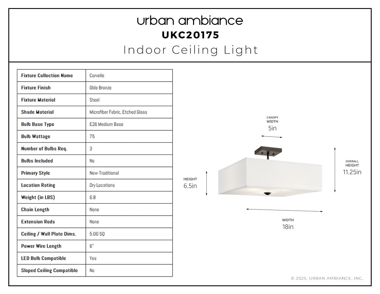 UKC20175 New Traditional Indoor Ceiling Light, 11.25''H x 18''W x 0''Dep, Olde Bronze Finish, Corvelle Collection