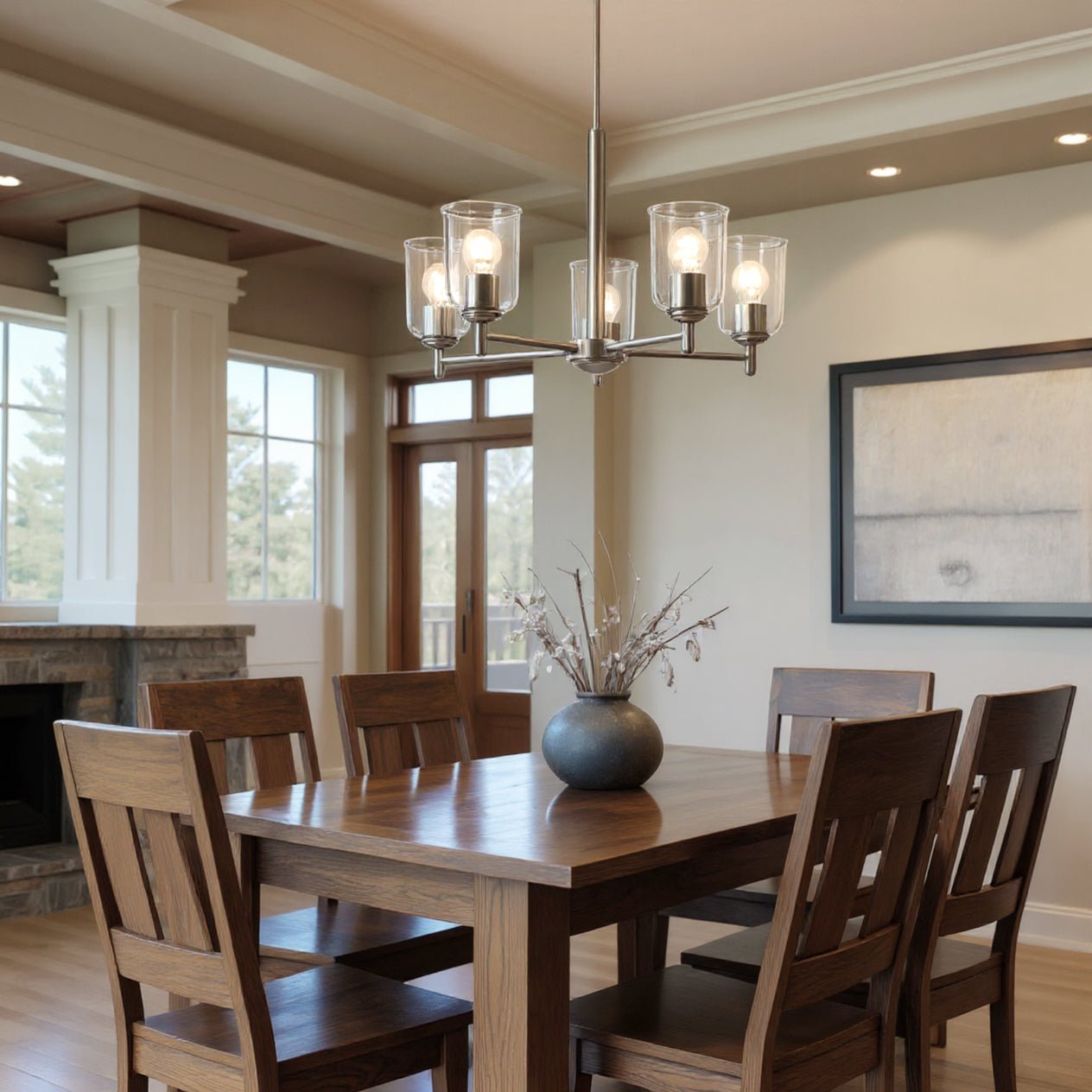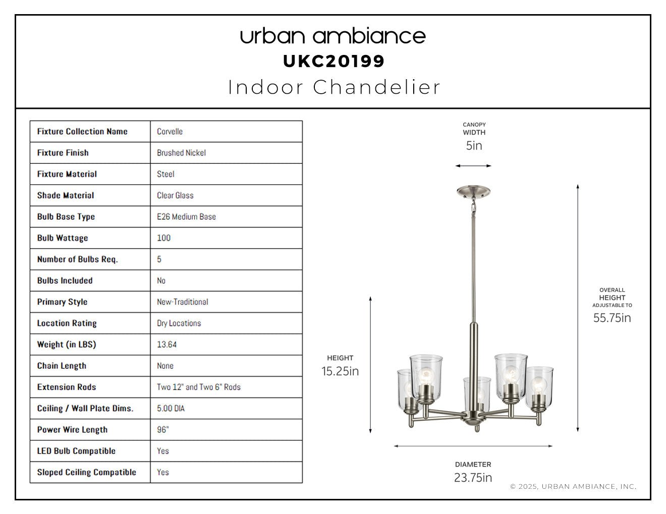 UKC20199 New Traditional Indoor Chandelier, 15.25''H x 23.75''W x 23.75''Dep, Brushed Nickel Finish, Corvelle Collection