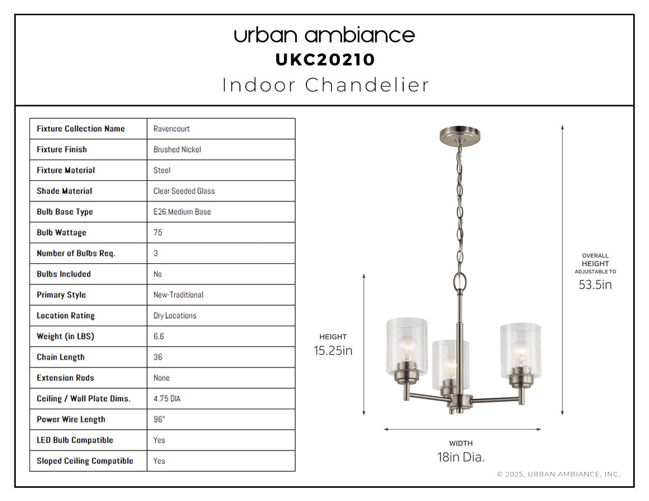UKC20210 New Traditional Indoor Chandelier, 15.5''H x 18''W x 18''Dep, Brushed Nickel Finish, Ravencourt Collection
