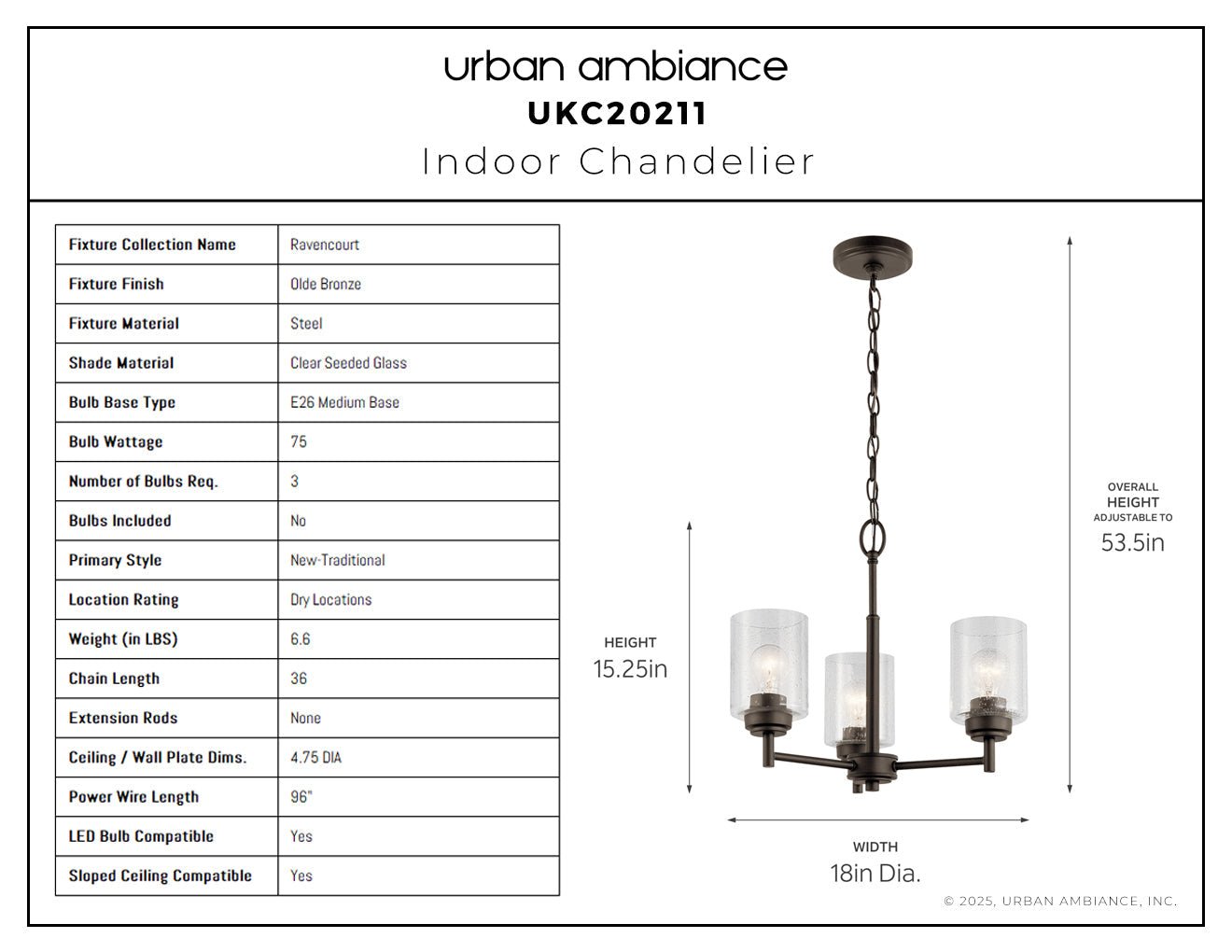 UKC20211 New Traditional Indoor Chandelier, 15.5''H x 18''W x 18''Dep, Olde Bronze Finish, Ravencourt Collection