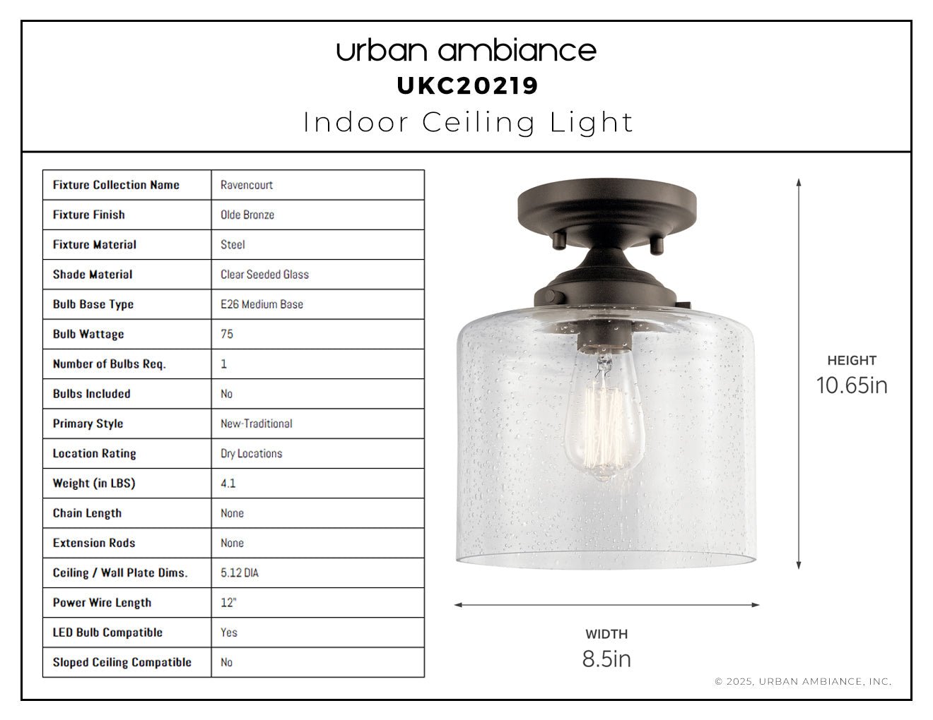 UKC20219 New Traditional Indoor Ceiling Light, 10.62''H x 8.5''W x 8.5''Dep, Olde Bronze Finish, Ravencourt Collection