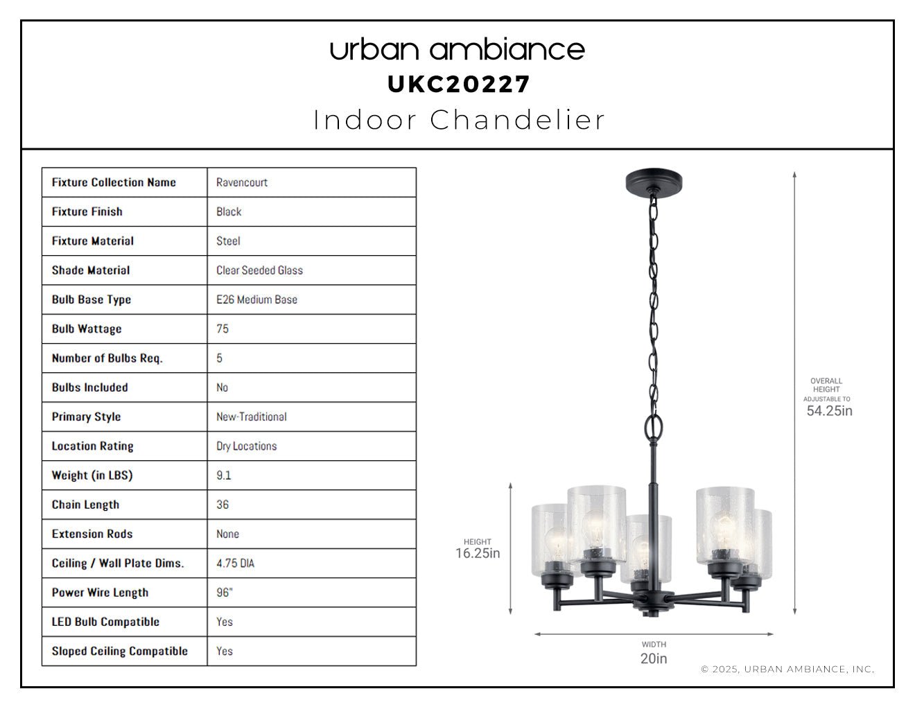 UKC20227 New Traditional Indoor Chandelier, 16.1''H x 19.75''W x 19.75''Dep, Black Finish, Ravencourt Collection
