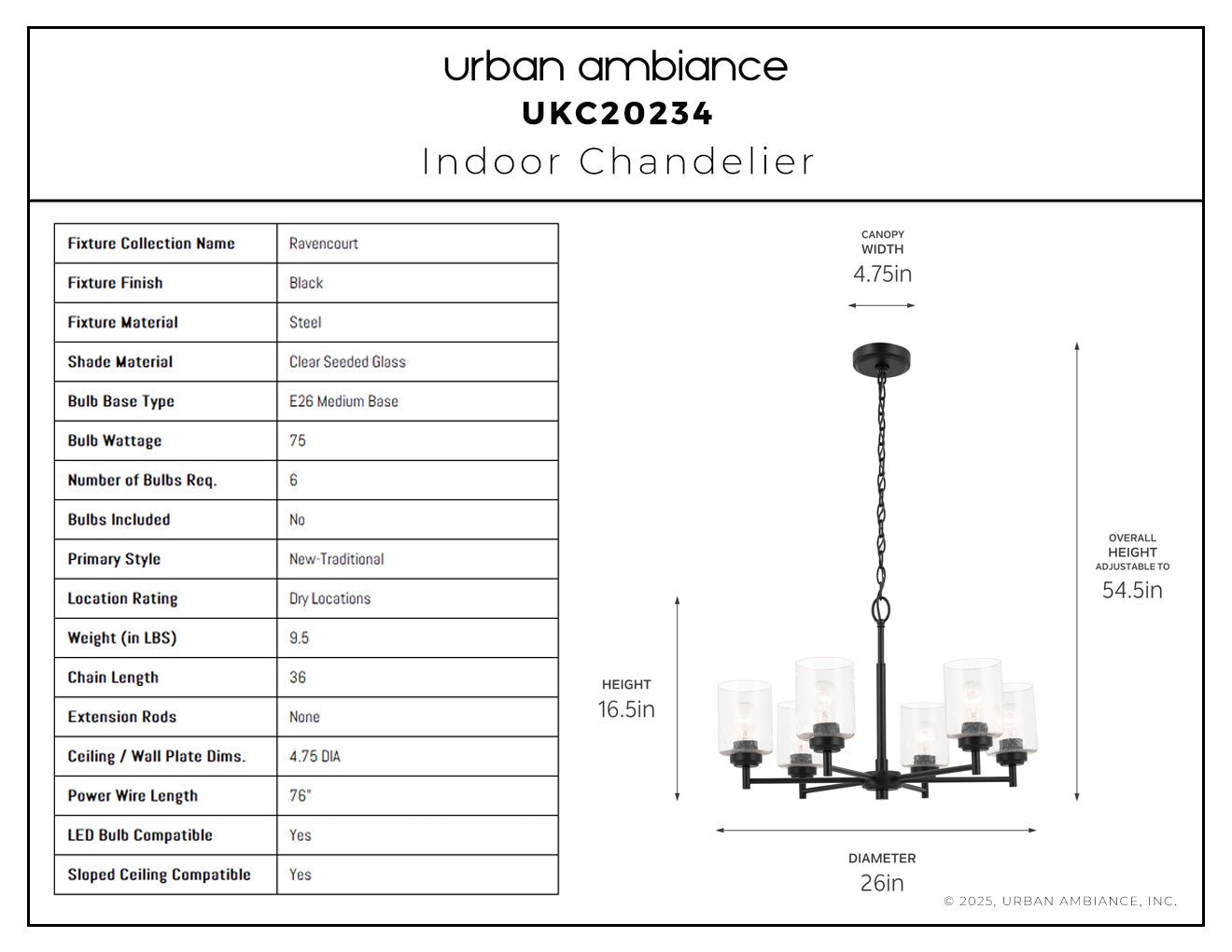 UKC20234 New Traditional Indoor Chandelier, 16.5''H x 26''W x 26''Dep, Black Finish, Ravencourt Collection