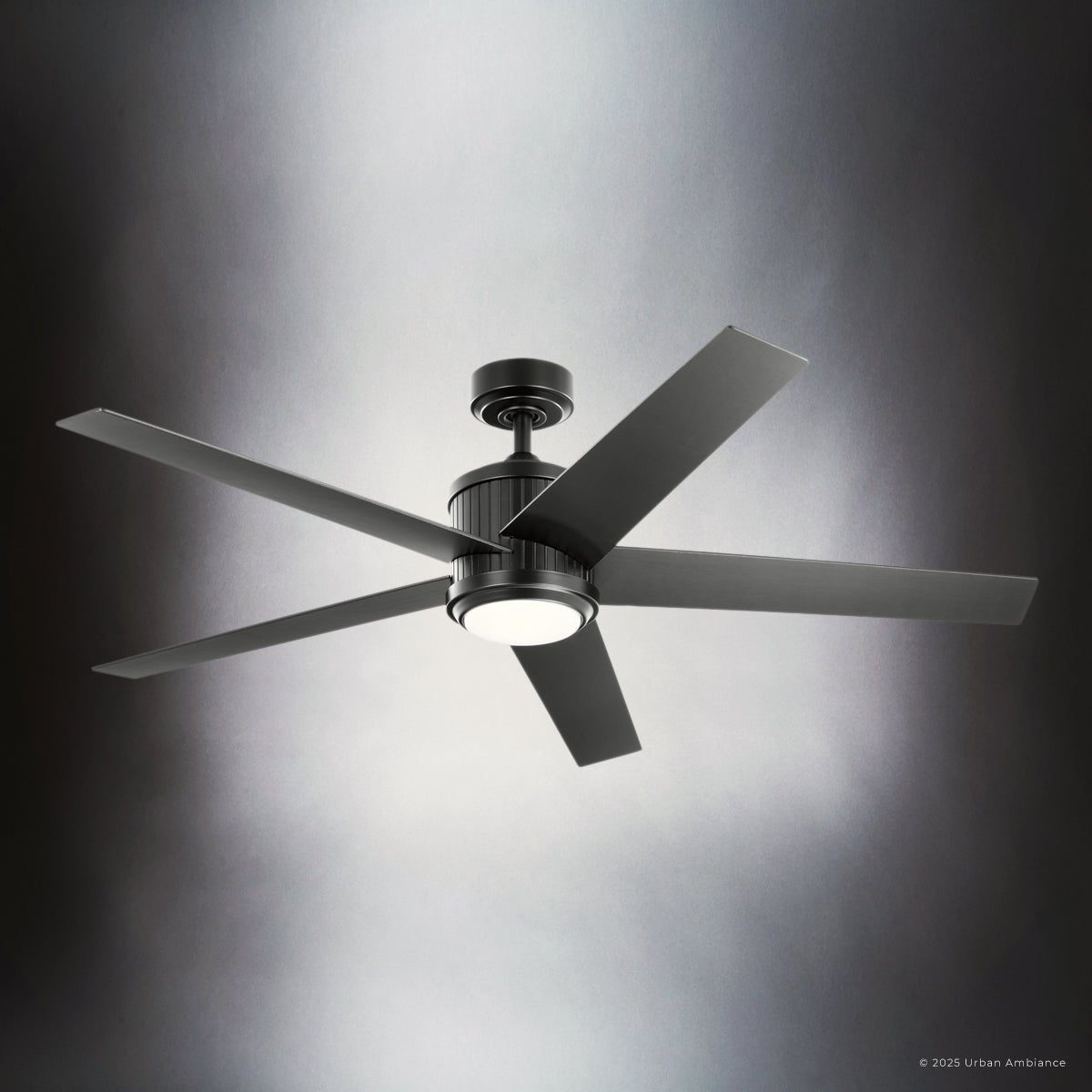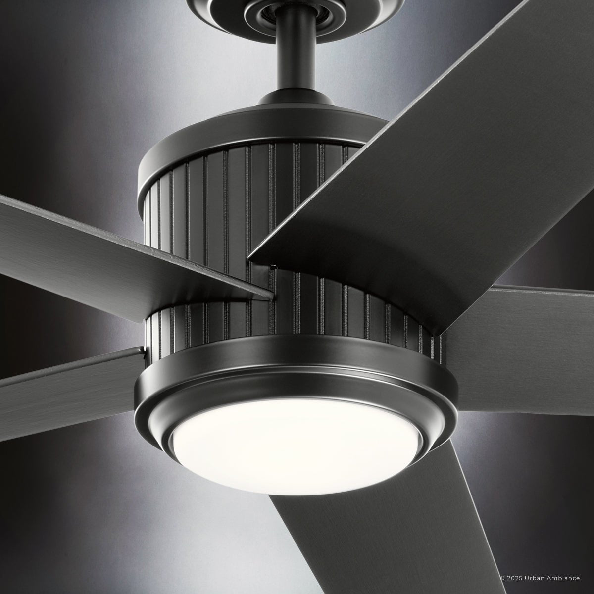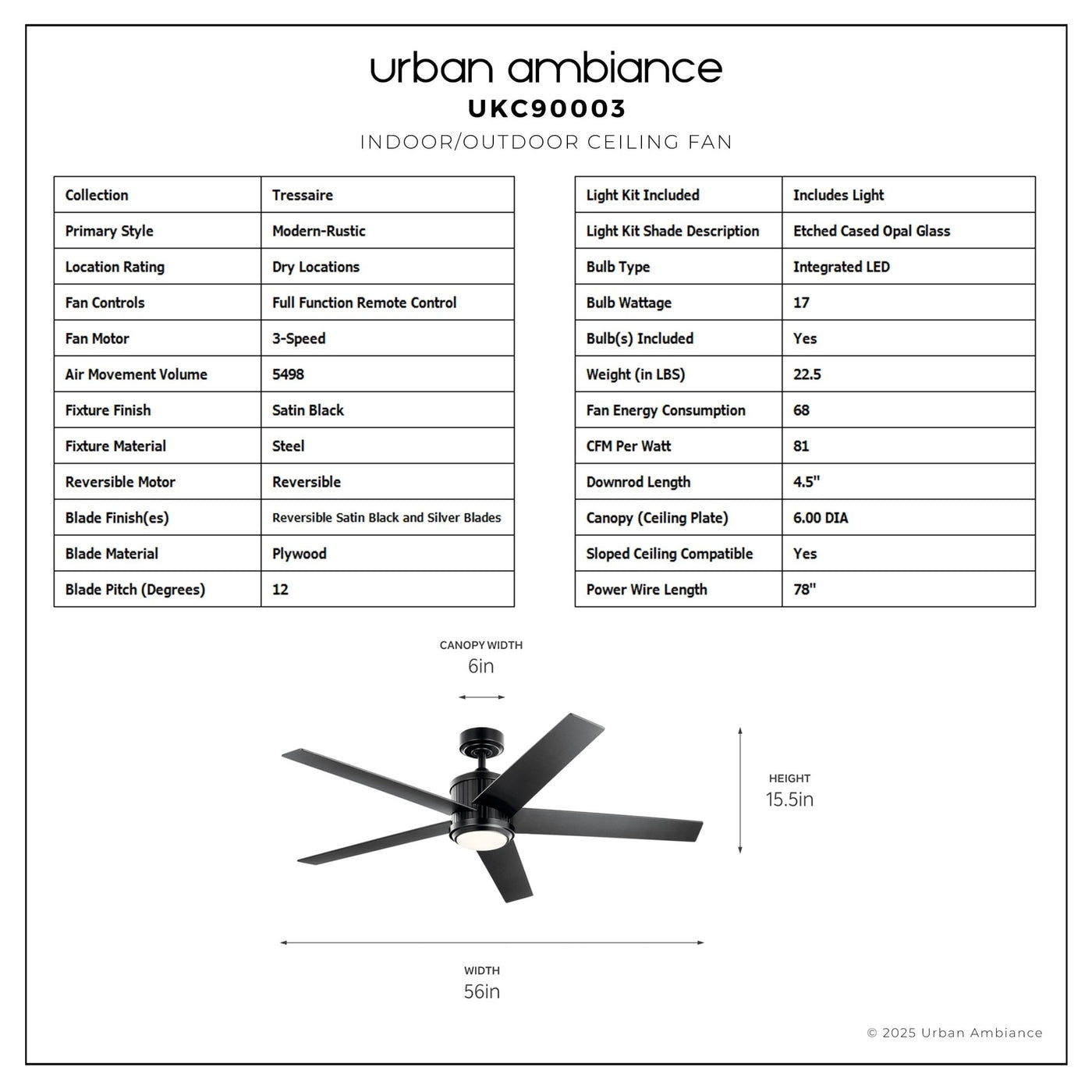 UKC90003 Modern Rustic Indoor Ceiling Fan, 15.5''H x 56''W x 56''Dep, Satin Black Finish, Tressaire Collection