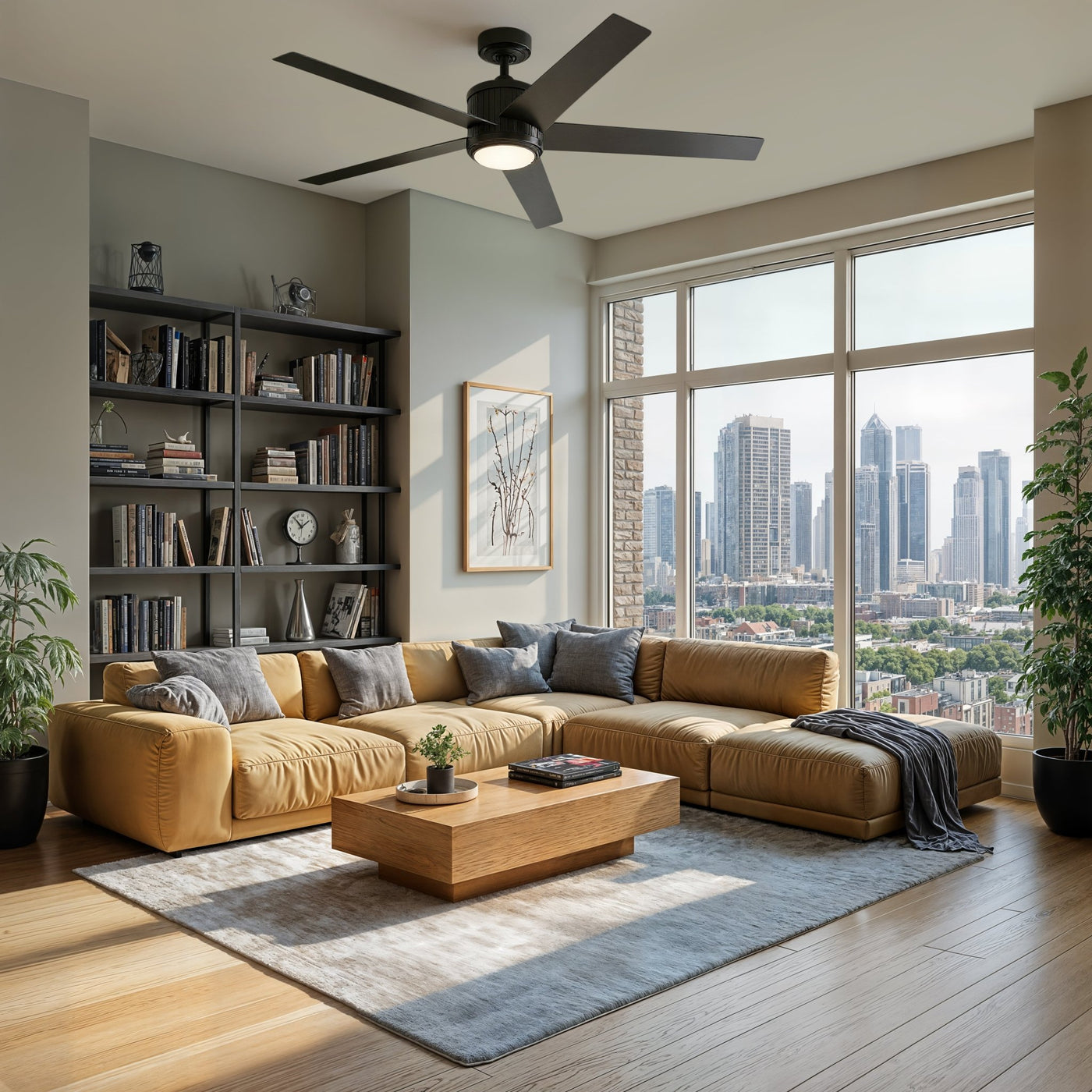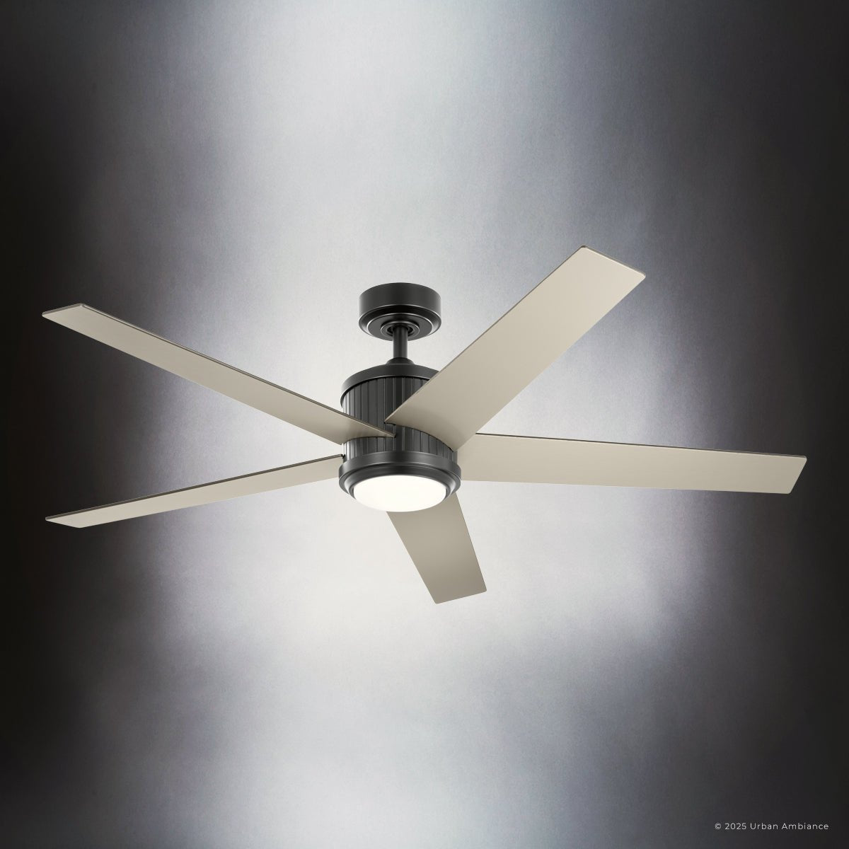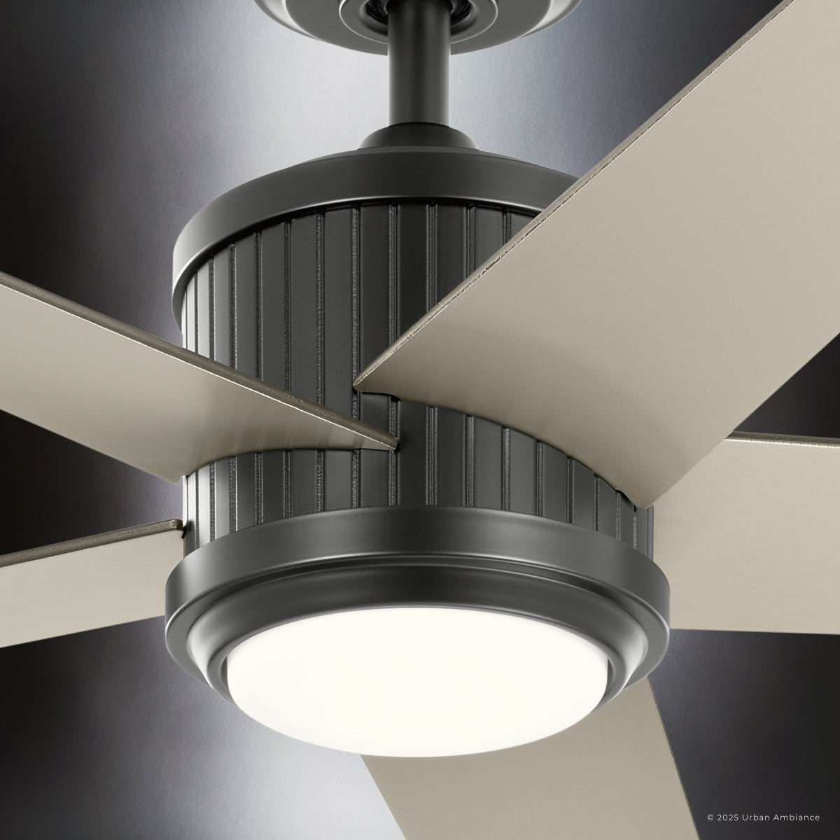 UKC90003 Modern Rustic Indoor Ceiling Fan, 15.5''H x 56''W x 56''Dep, Satin Black Finish, Tressaire Collection