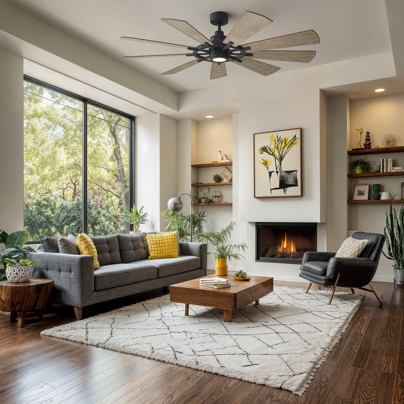 UKC90010 Americana Indoor / Outdoor Ceiling Fan, 16.75''H x 65''W x 65''Dep, Anvil Iron Finish, Carrisden Collection
