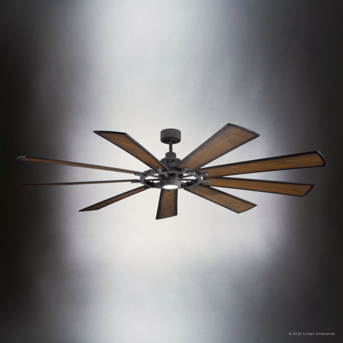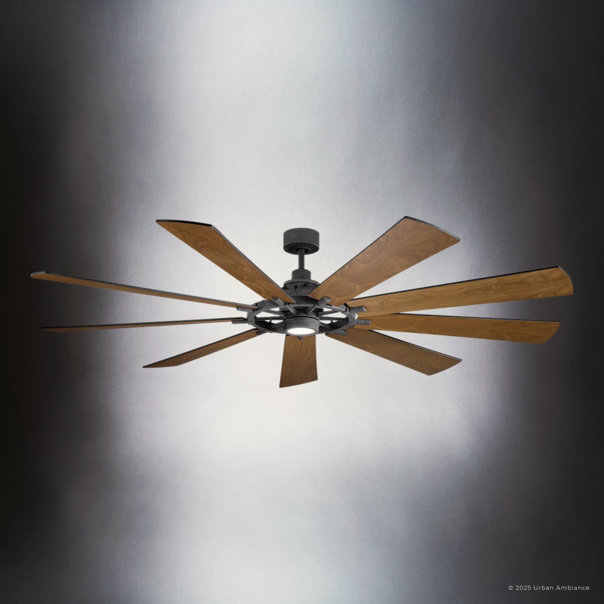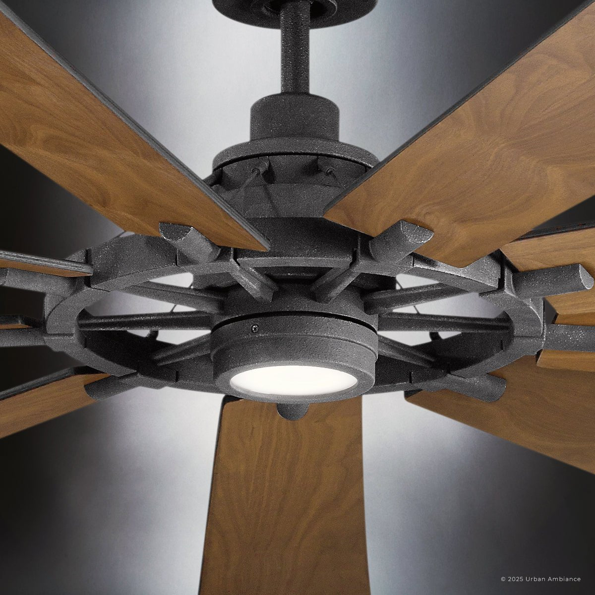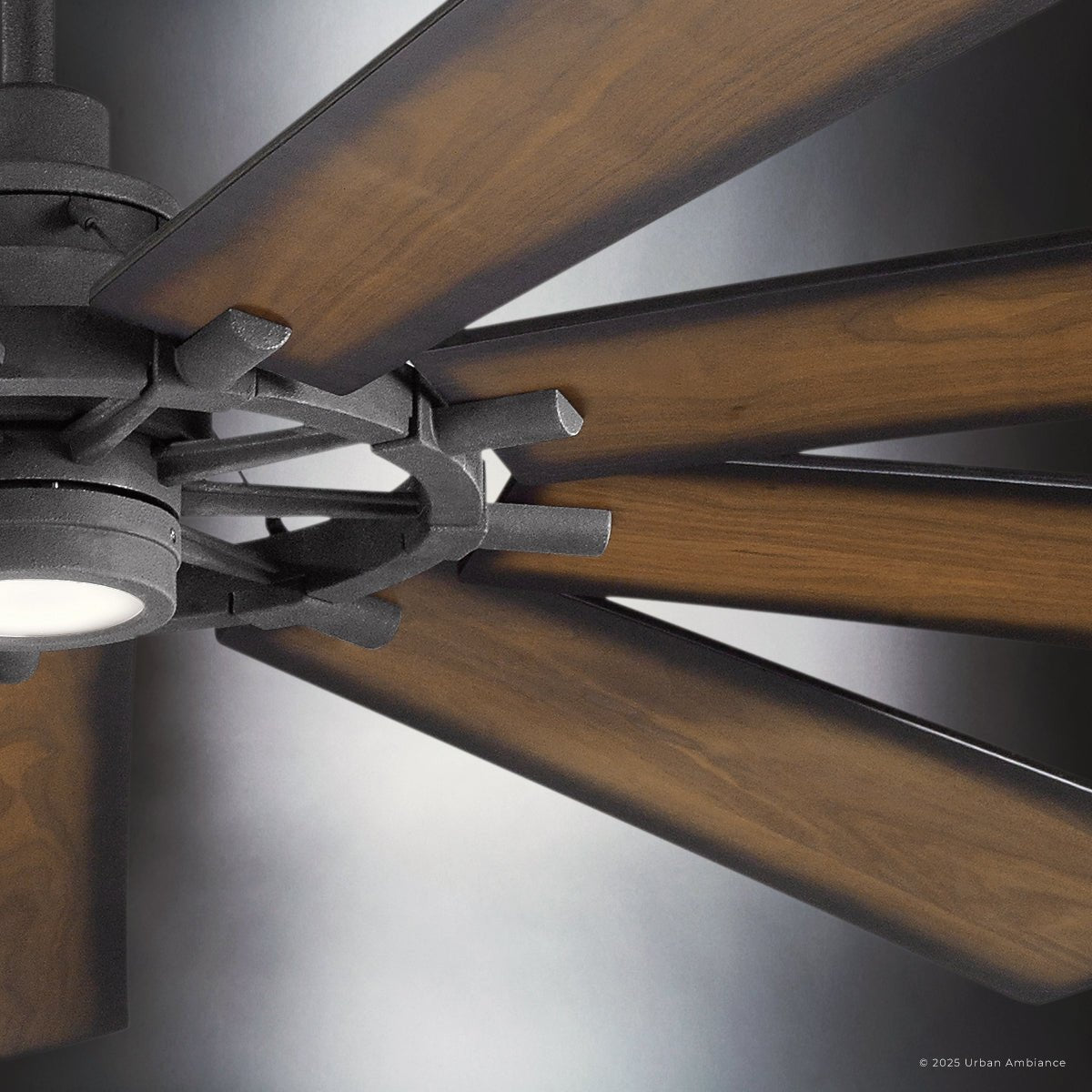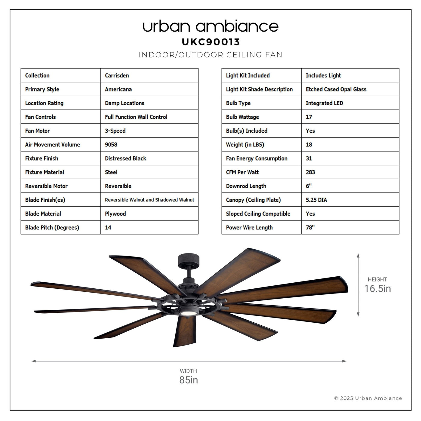 UKC90013 Americana Indoor / Outdoor Ceiling Fan, 16.5''H x 85''W x 85''Dep, Distressed Black Finish, Carrisden Collection