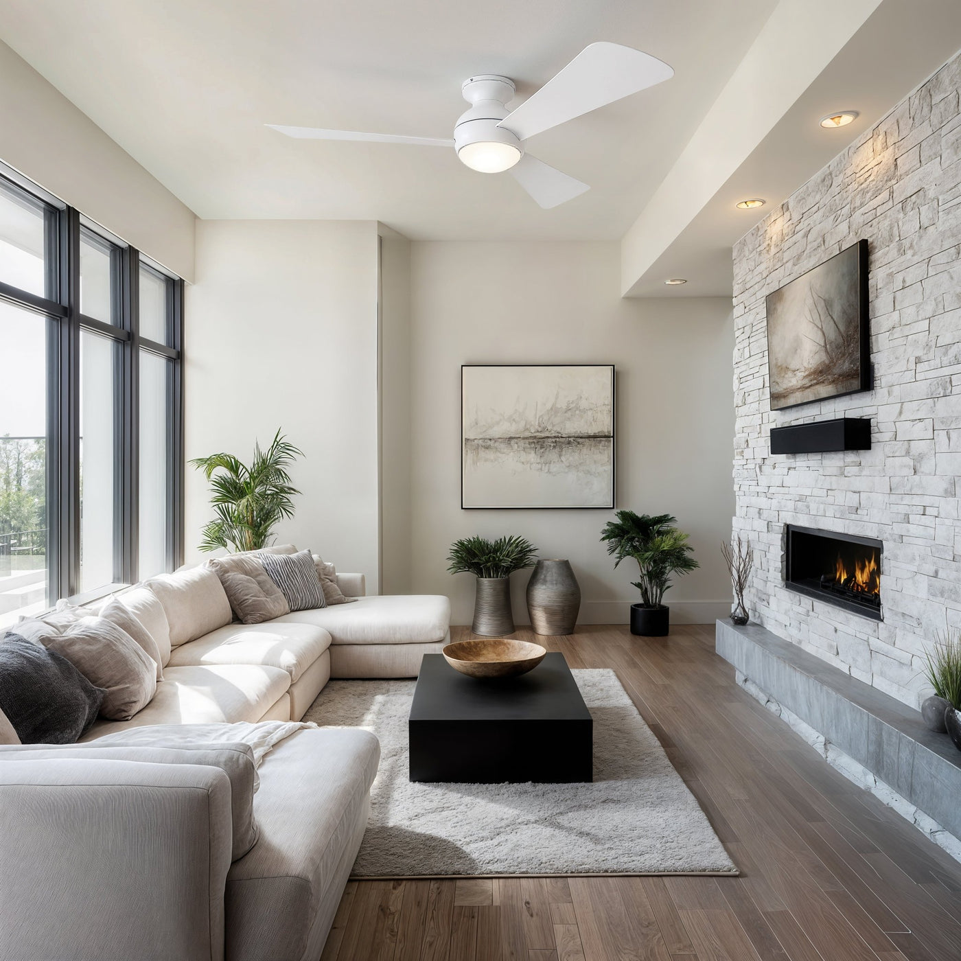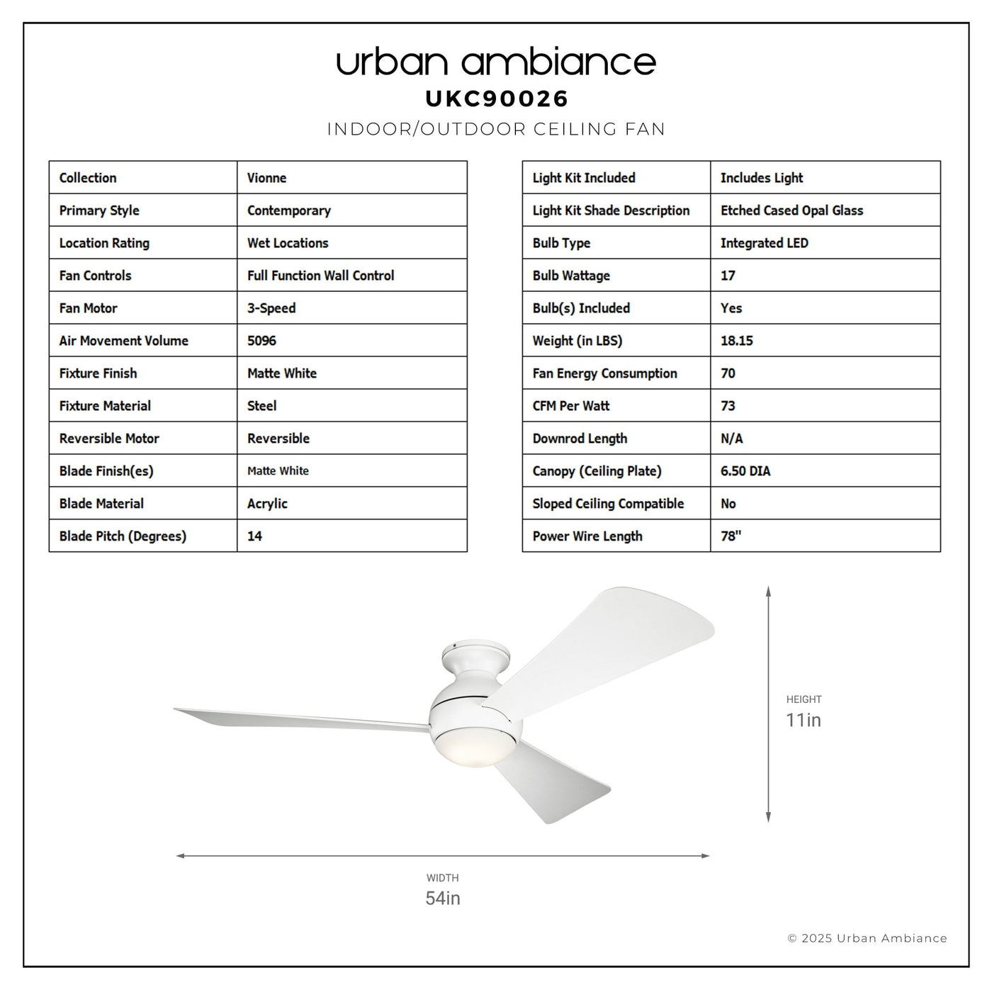 UKC90026 Contemporary Indoor / Outdoor Ceiling Fan, 11''H x 54''W x 54''Dep, Matte White Finish, Vionne Collection