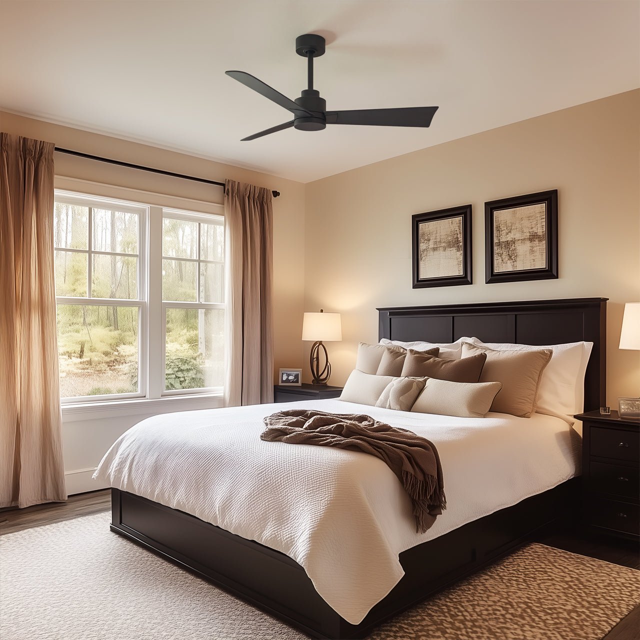 UMC9010 Modern Indoor/Outdoor Ceiling Fan, 8" (Plus Downrod) H x 42" W x 42" D, Matte Black Finish, Drifthelm Collection