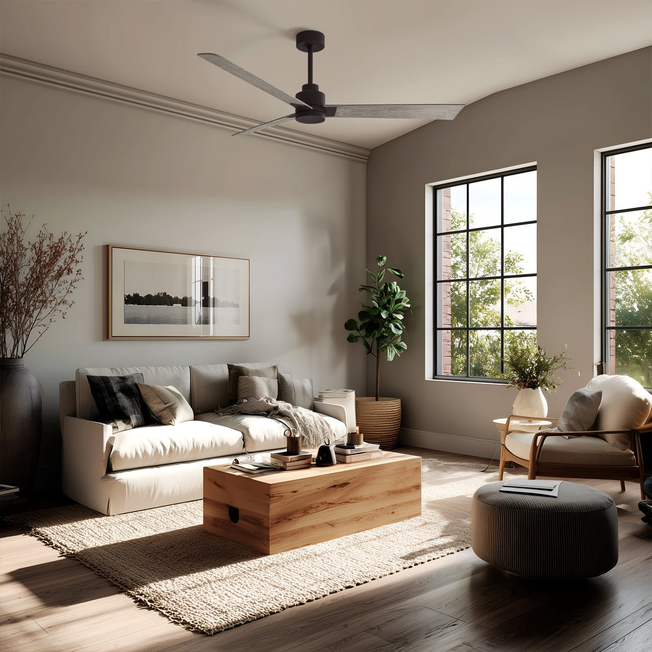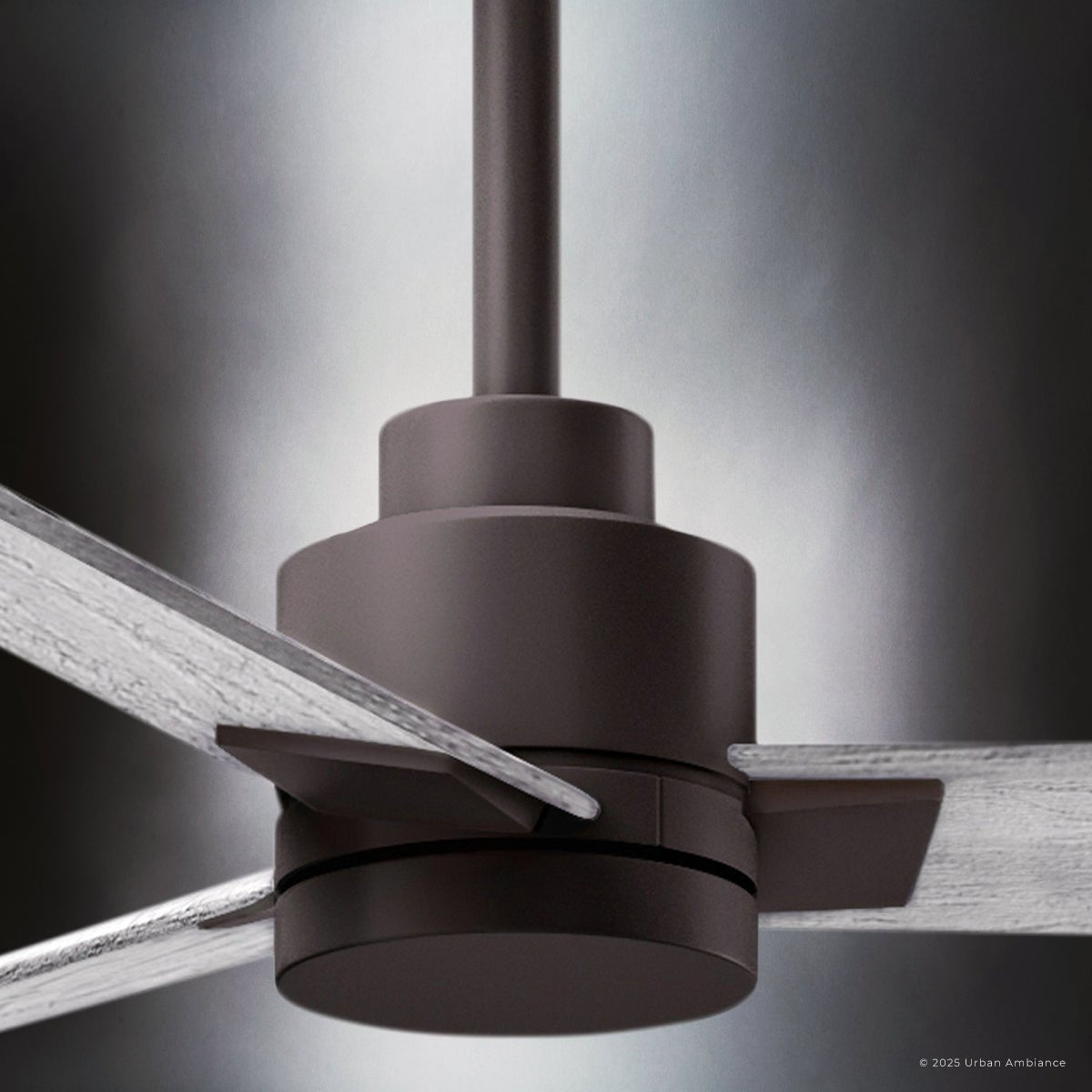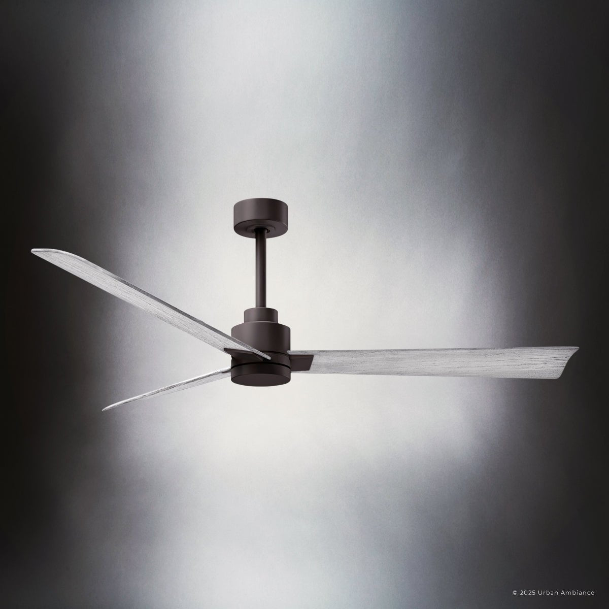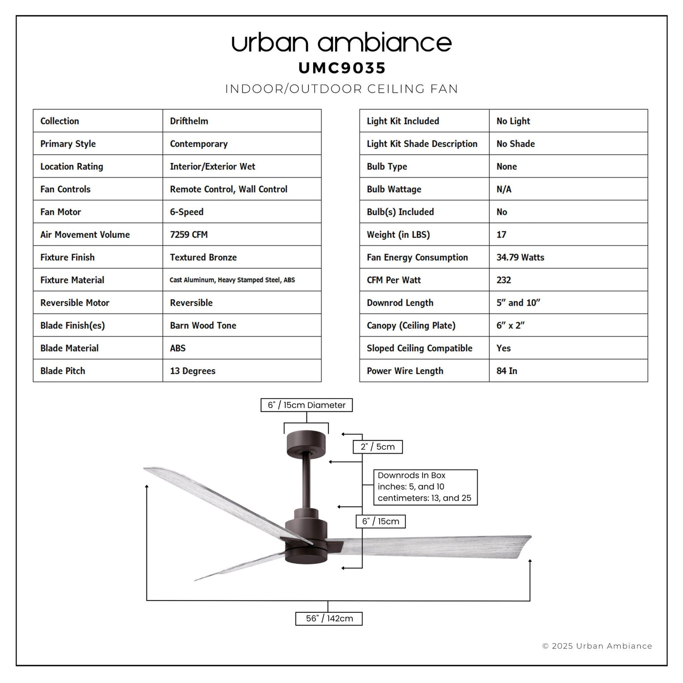 UMC9035 Contemporary Indoor/Outdoor Ceiling Fan, 8" (Plus Downrod) H x 56" W x 56" D, Textured Bronze Finish, Drifthelm Collection