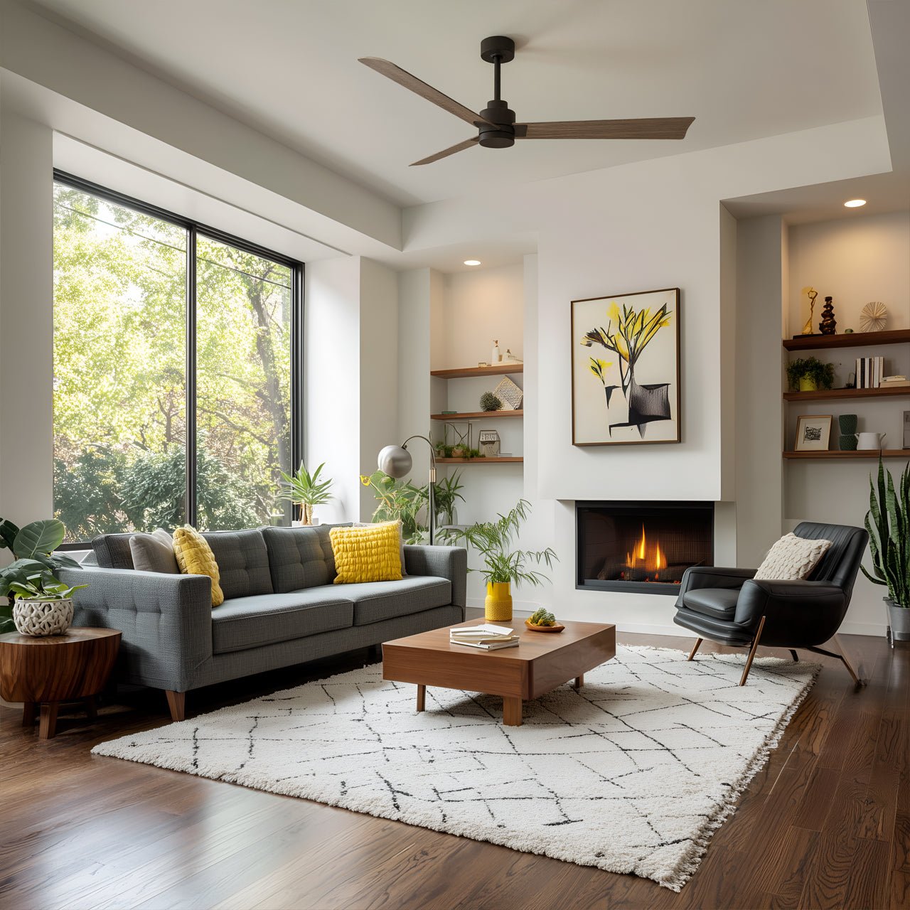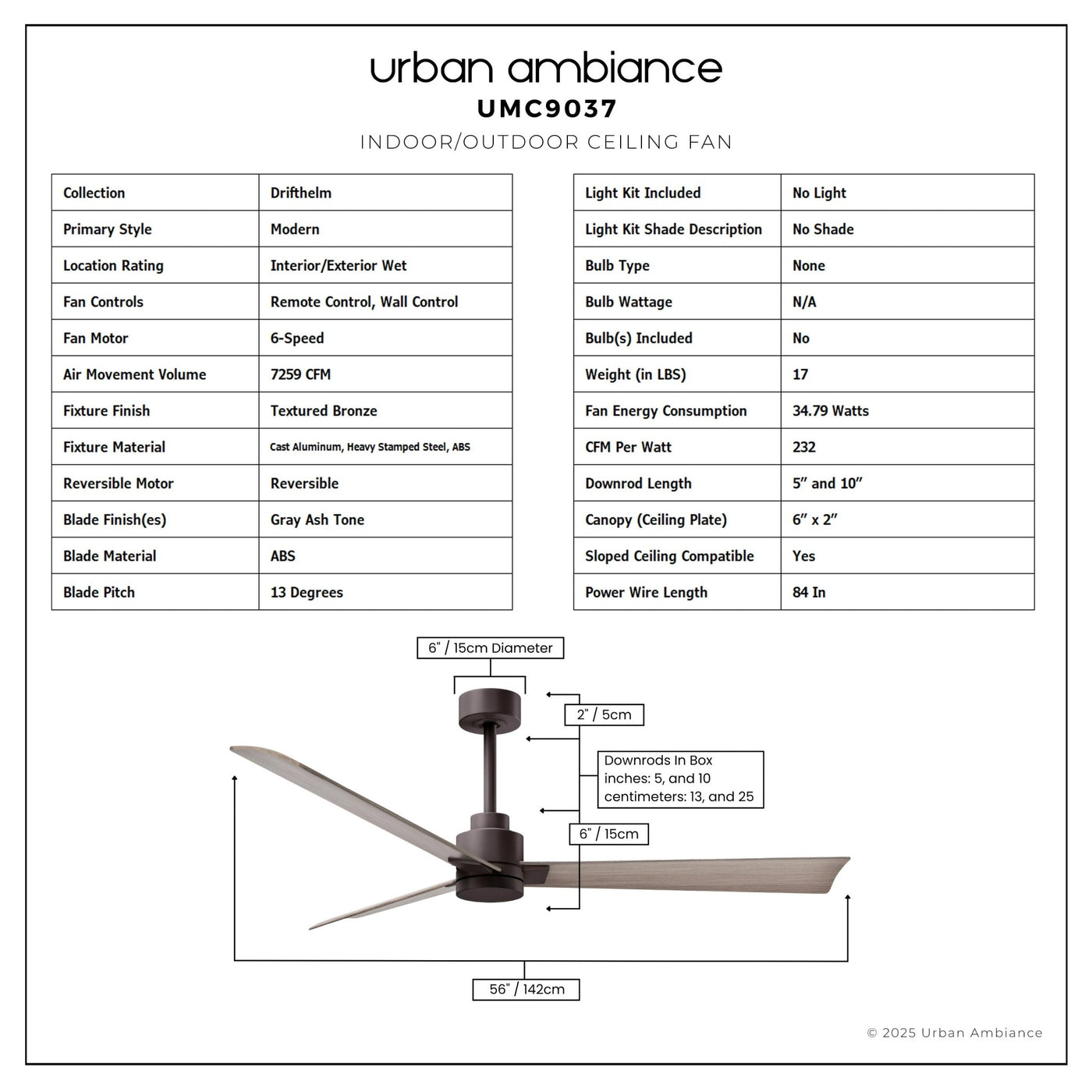 UMC9037 Modern Indoor/Outdoor Ceiling Fan, 8" (Plus Downrod) H x 56" W x 56" D, Textured Bronze Finish, Drifthelm Collection
