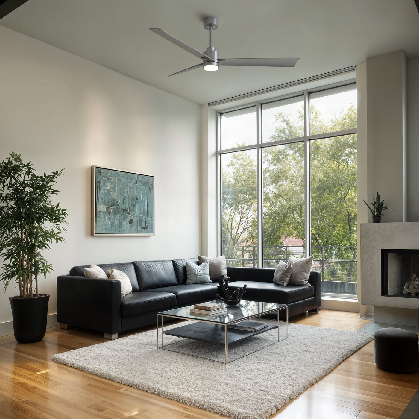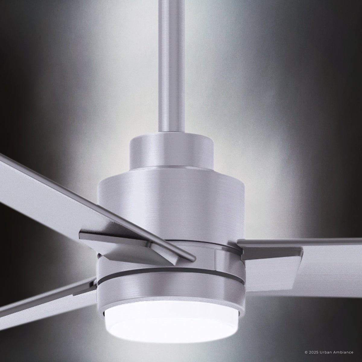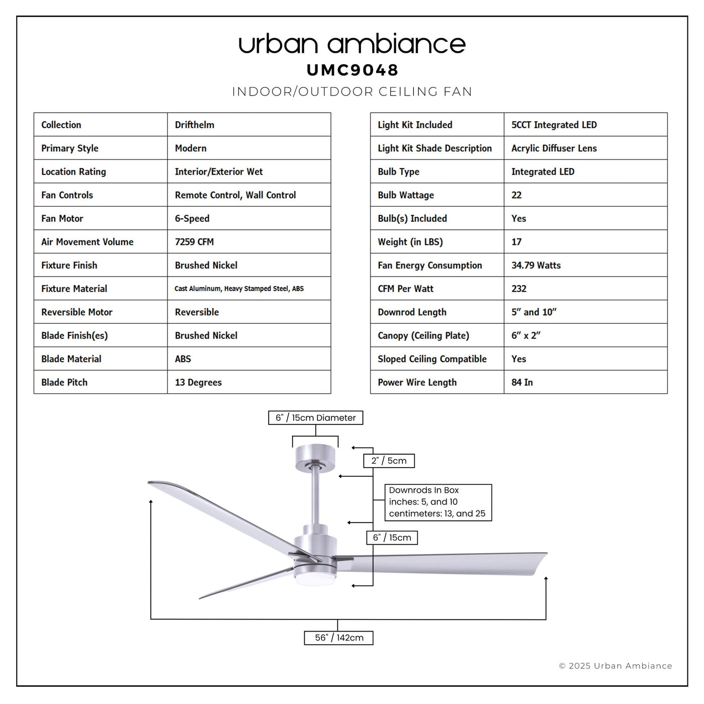 UMC9048 Modern Indoor/Outdoor Ceiling Fan, 8" (Plus Downrod) H x 56" W x 56" D, Brushed Nickel Finish, Drifthelm Collection