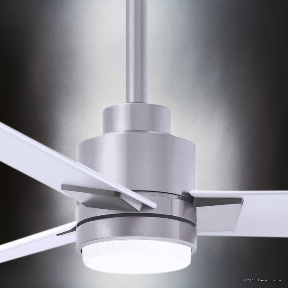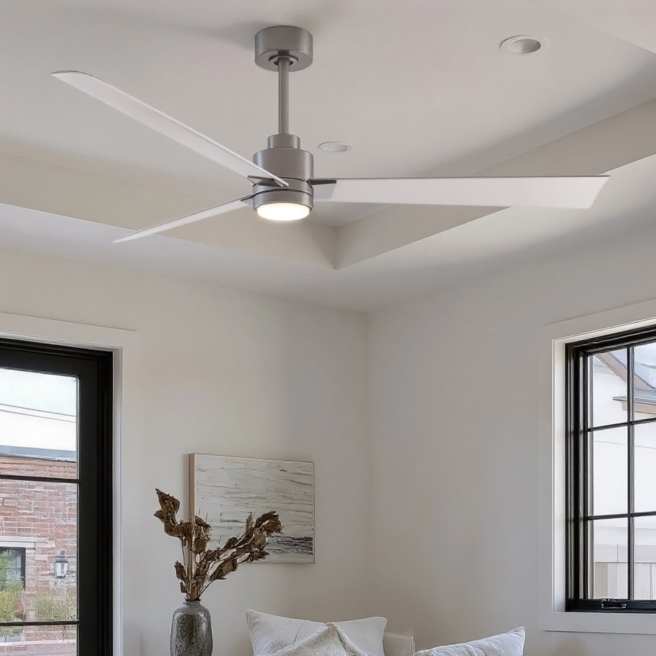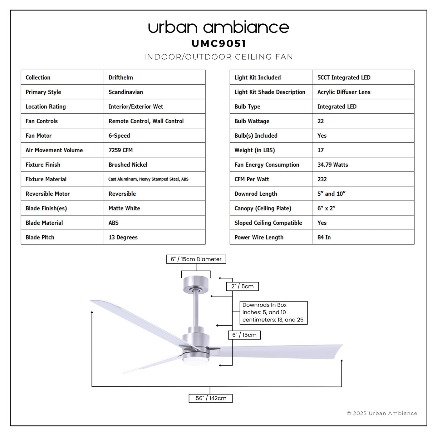 UMC9051 Scandinavian Indoor/Outdoor Ceiling Fan, 8" (Plus Downrod) H x 56" W x 56" D, Brushed Nickel Finish, Drifthelm Collection