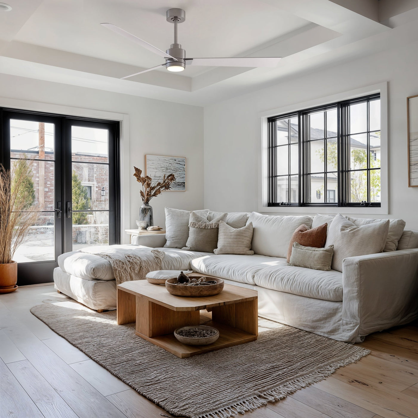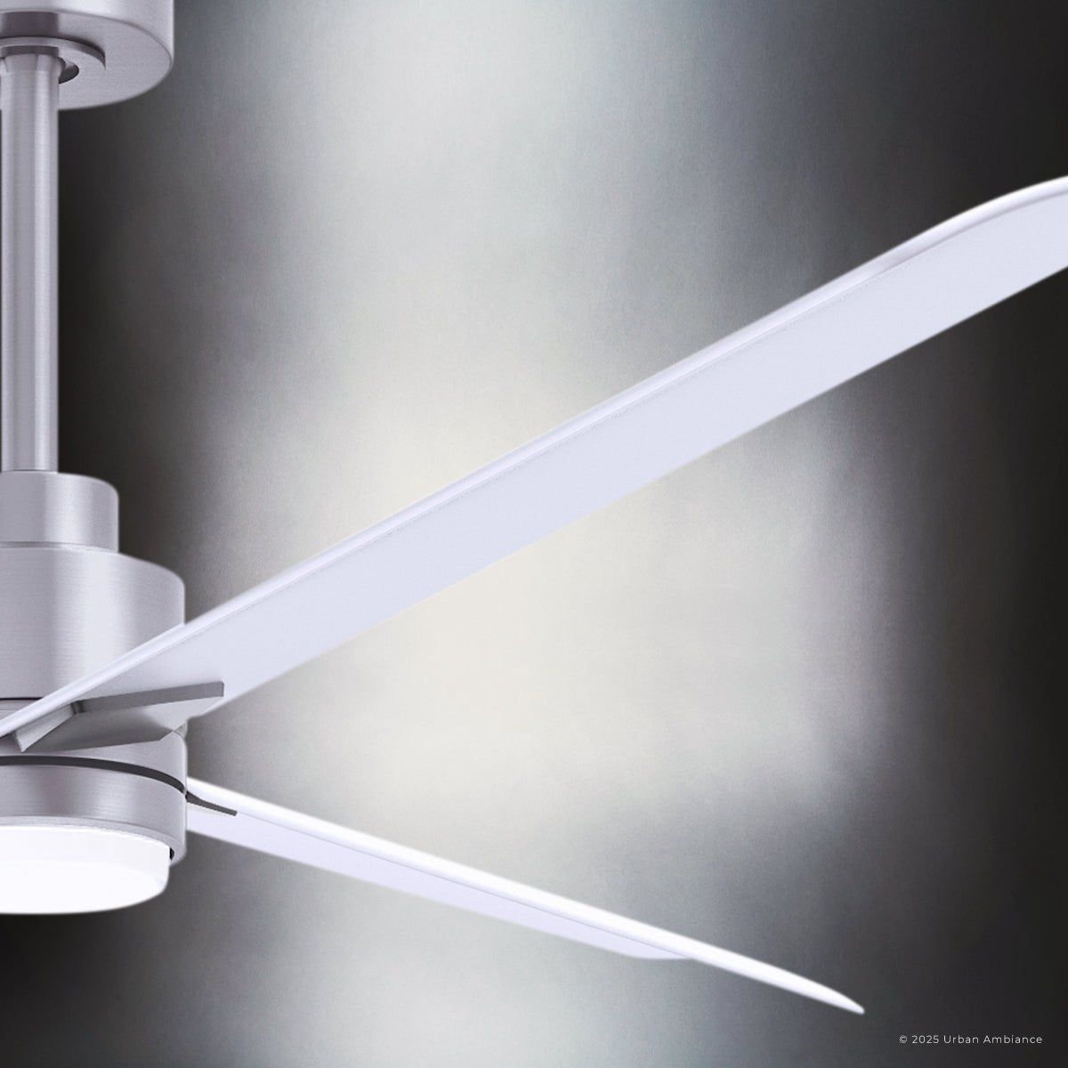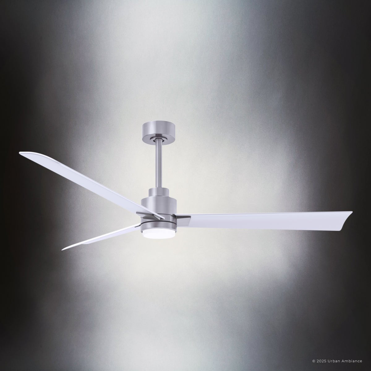 UMC9051 Scandinavian Indoor/Outdoor Ceiling Fan, 8" (Plus Downrod) H x 56" W x 56" D, Brushed Nickel Finish, Drifthelm Collection