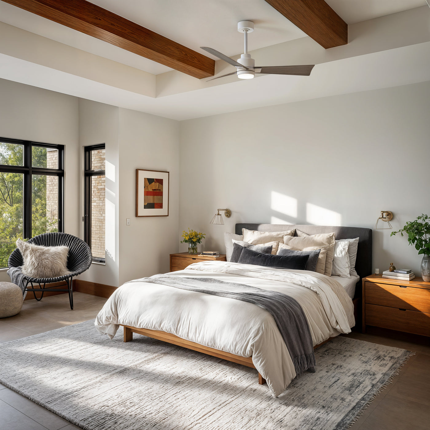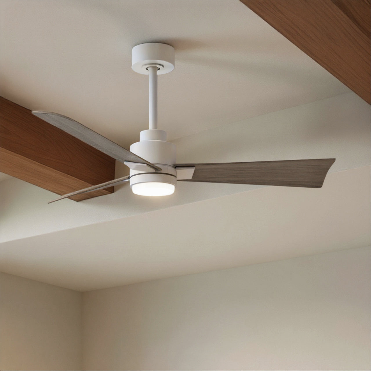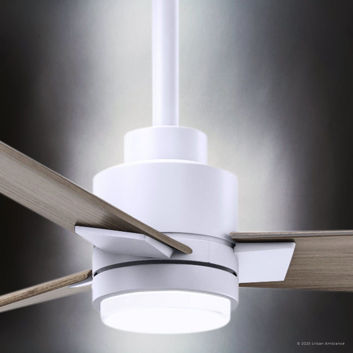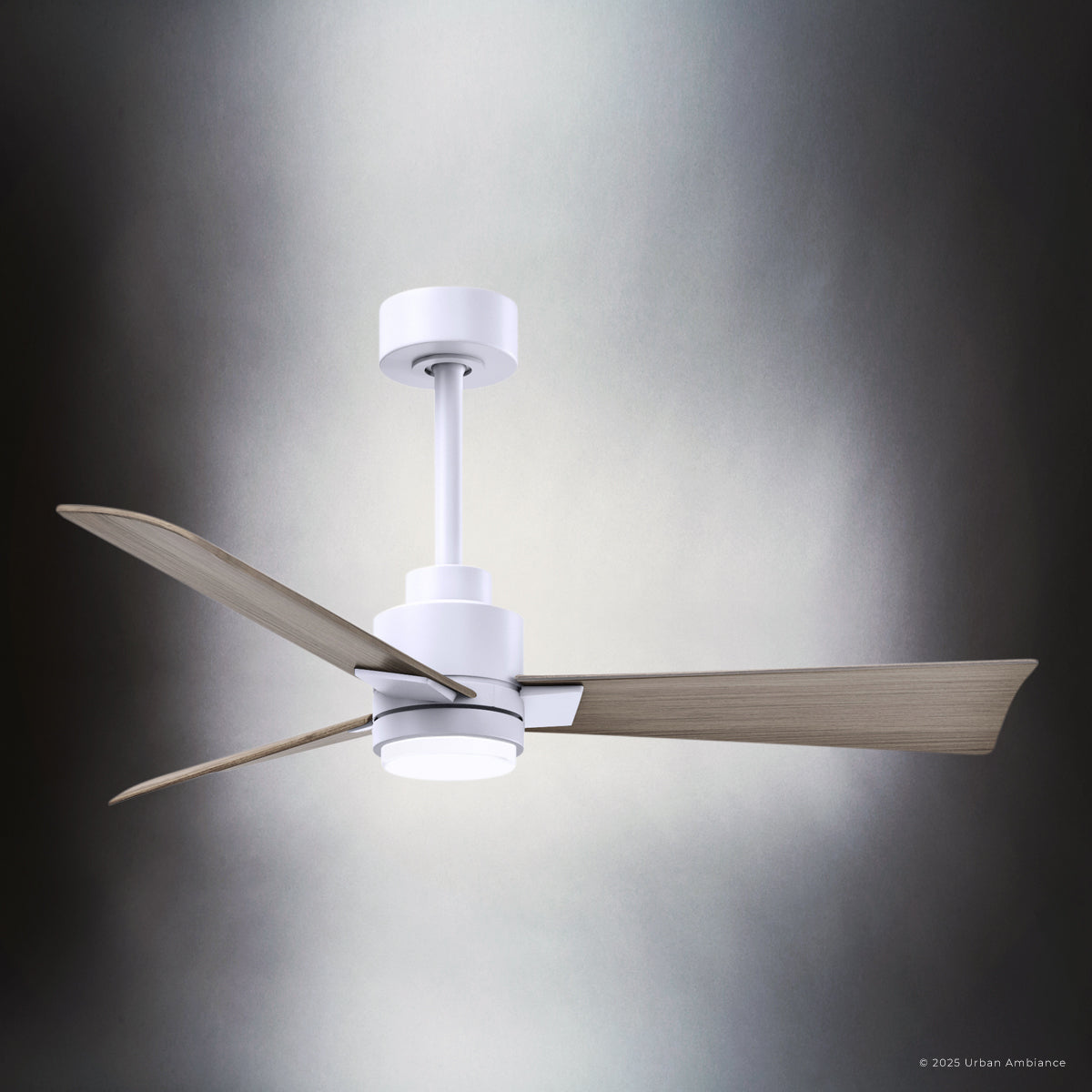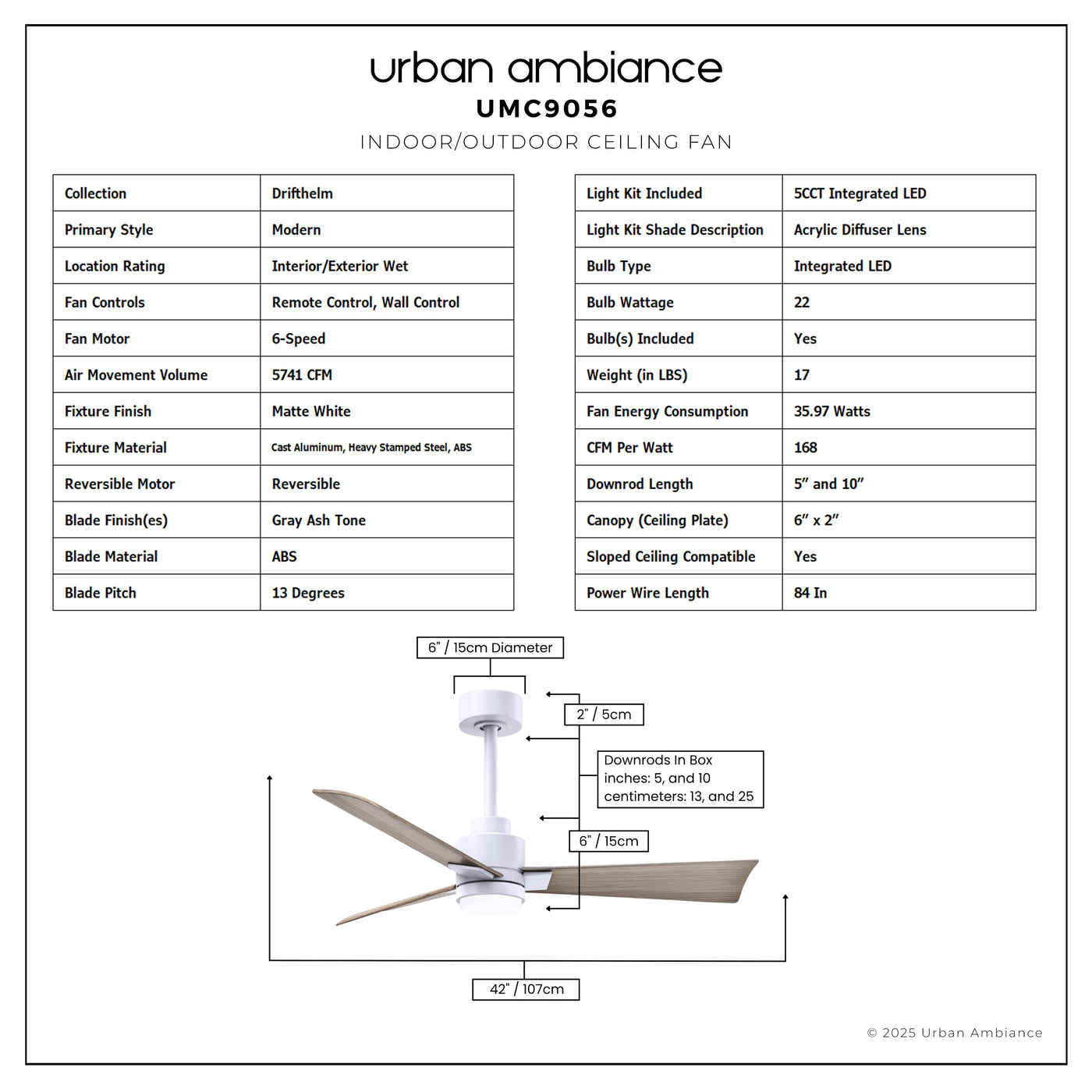 UMC9056 Modern Indoor/Outdoor Ceiling Fan, 8" (Plus Downrod) H x 42" W x 42" D, Matte White Finish, Drifthelm Collection