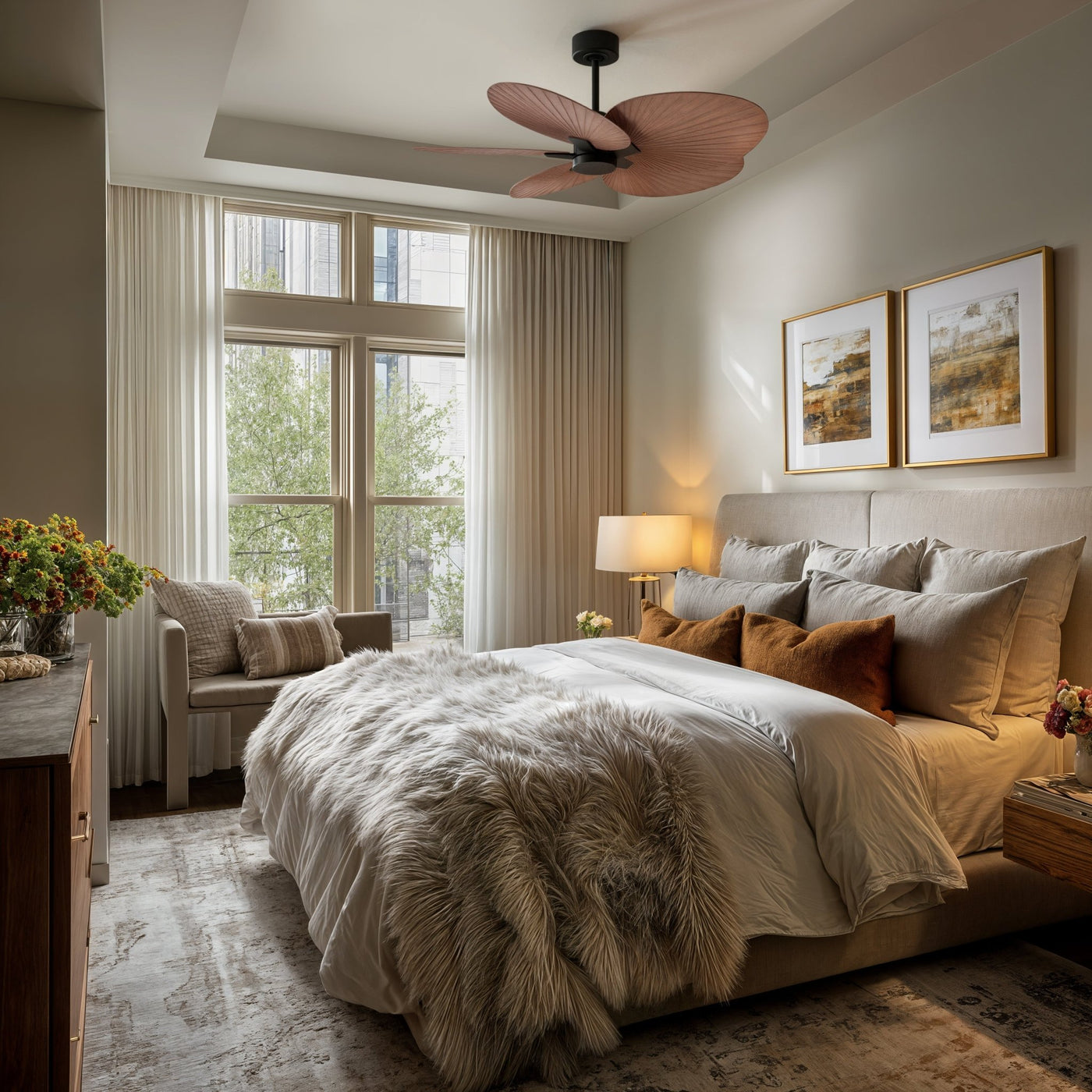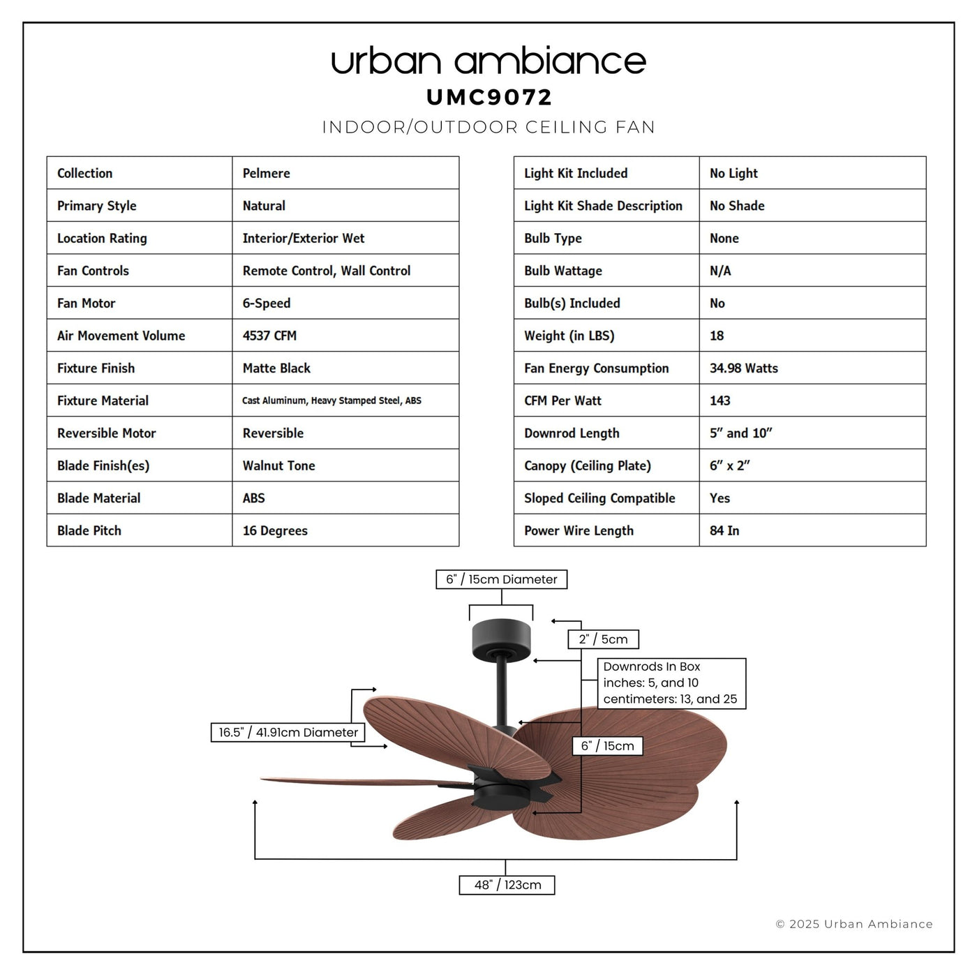 UMC9072 Natural Indoor/Outdoor Ceiling Fan, 8" (Plus Downrod) H x 48" W x 48" D, Matte Black Finish, Pelmere Collection