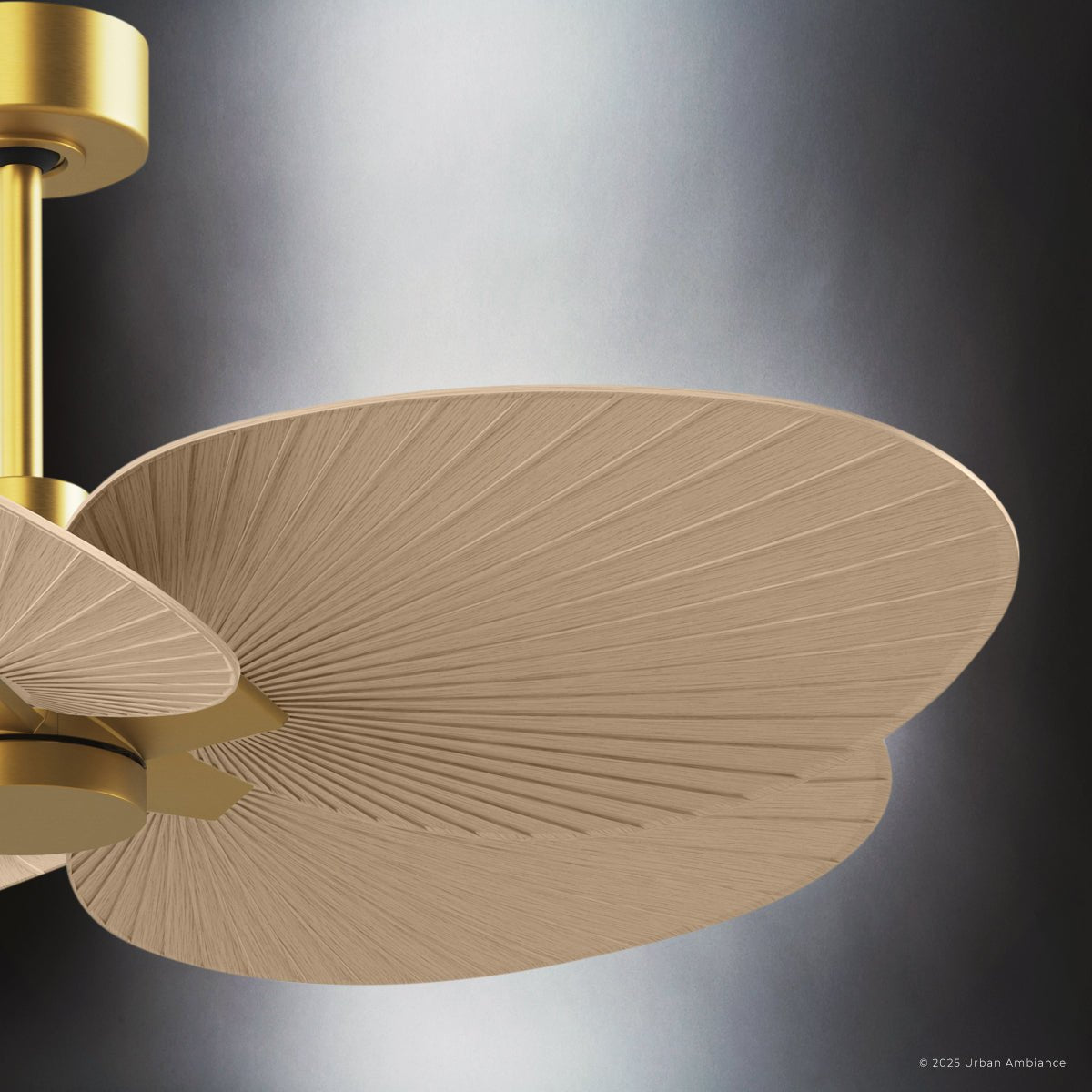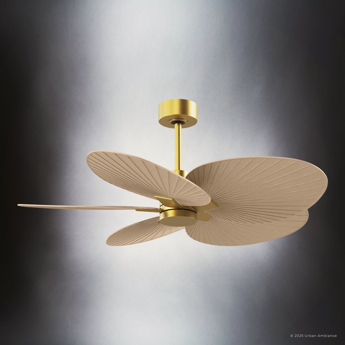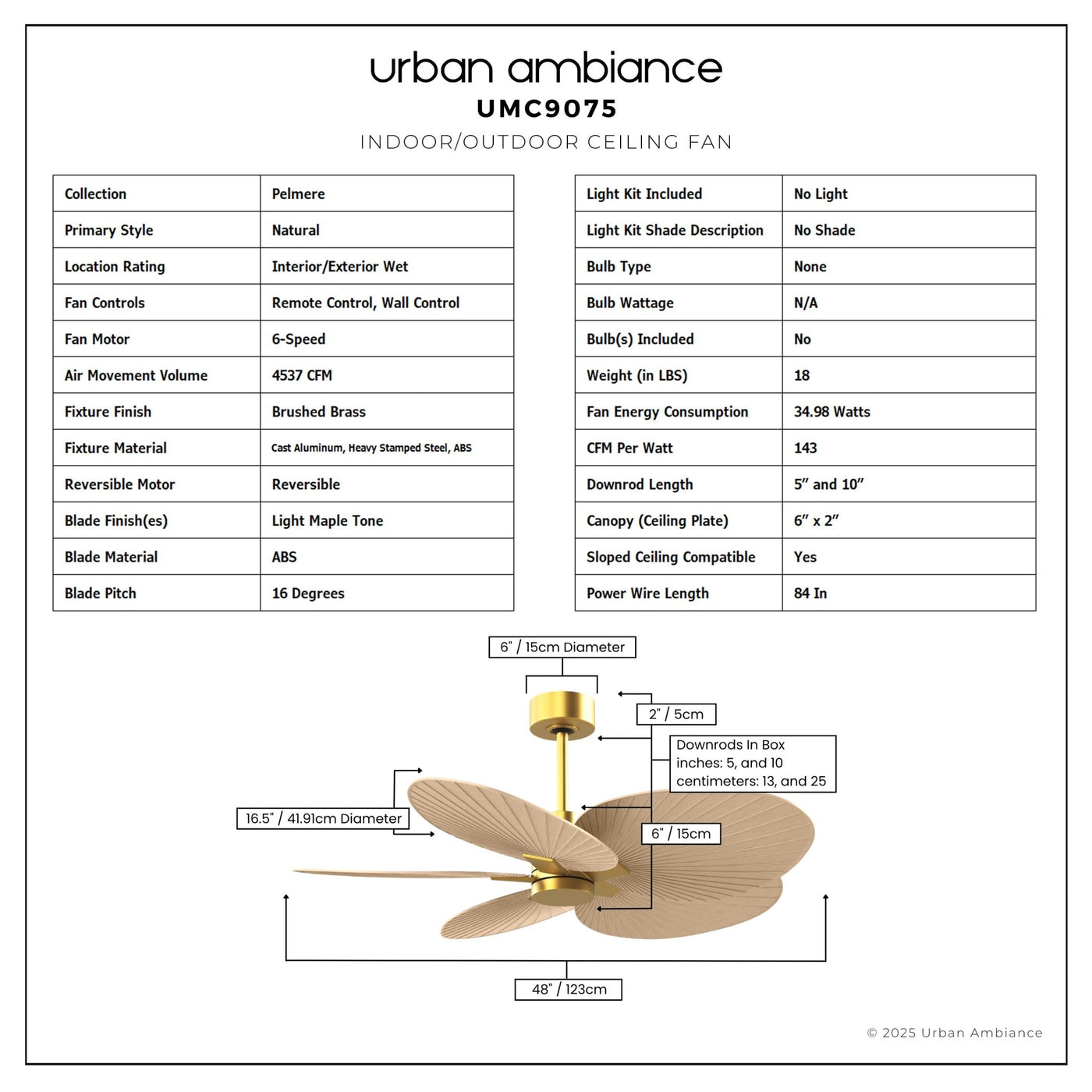 UMC9075 Natural Indoor/Outdoor Ceiling Fan, 8" (Plus Downrod) H x 48" W x 48" D, Brushed Brass Finish, Pelmere Collection