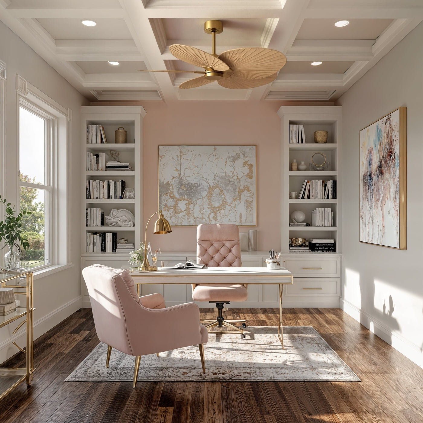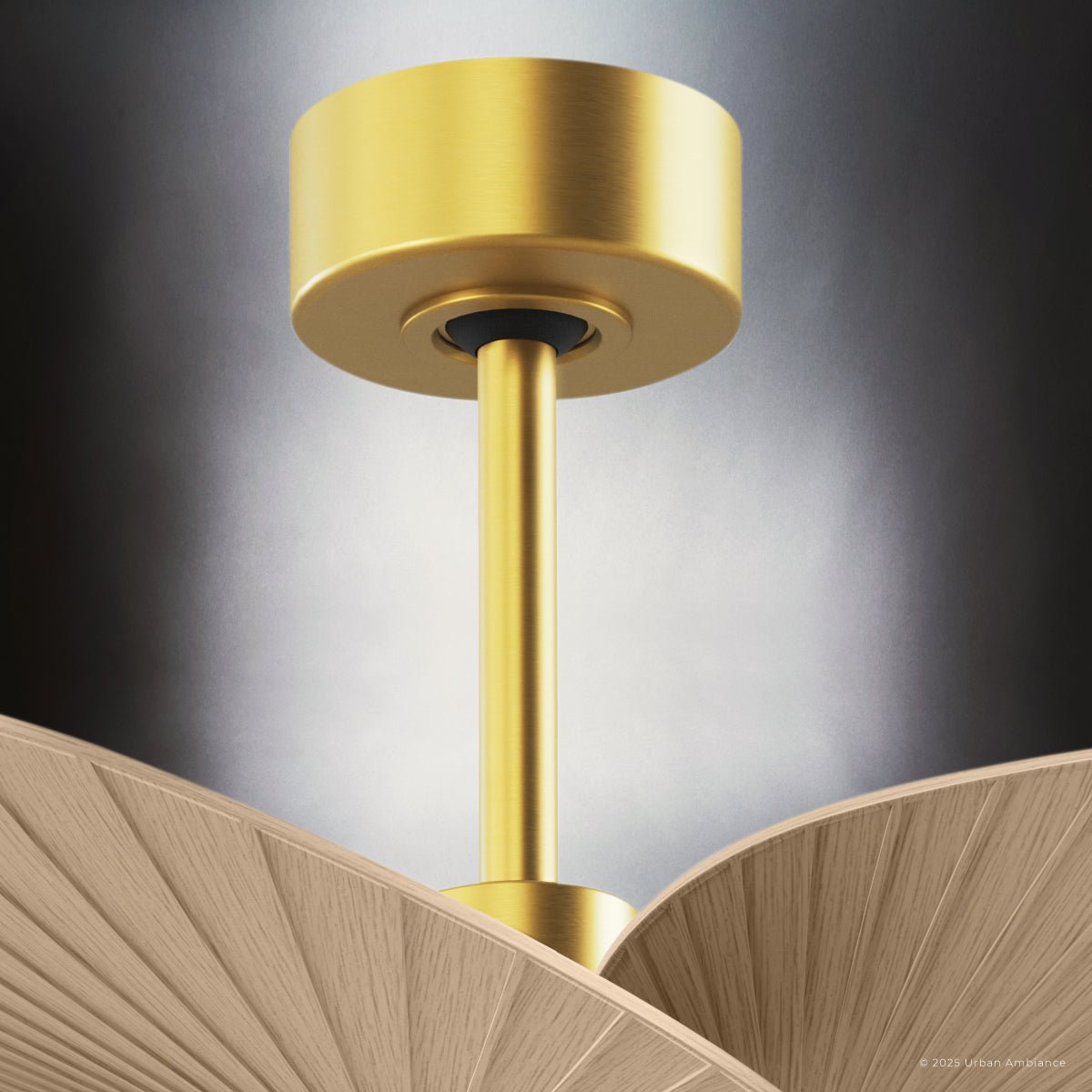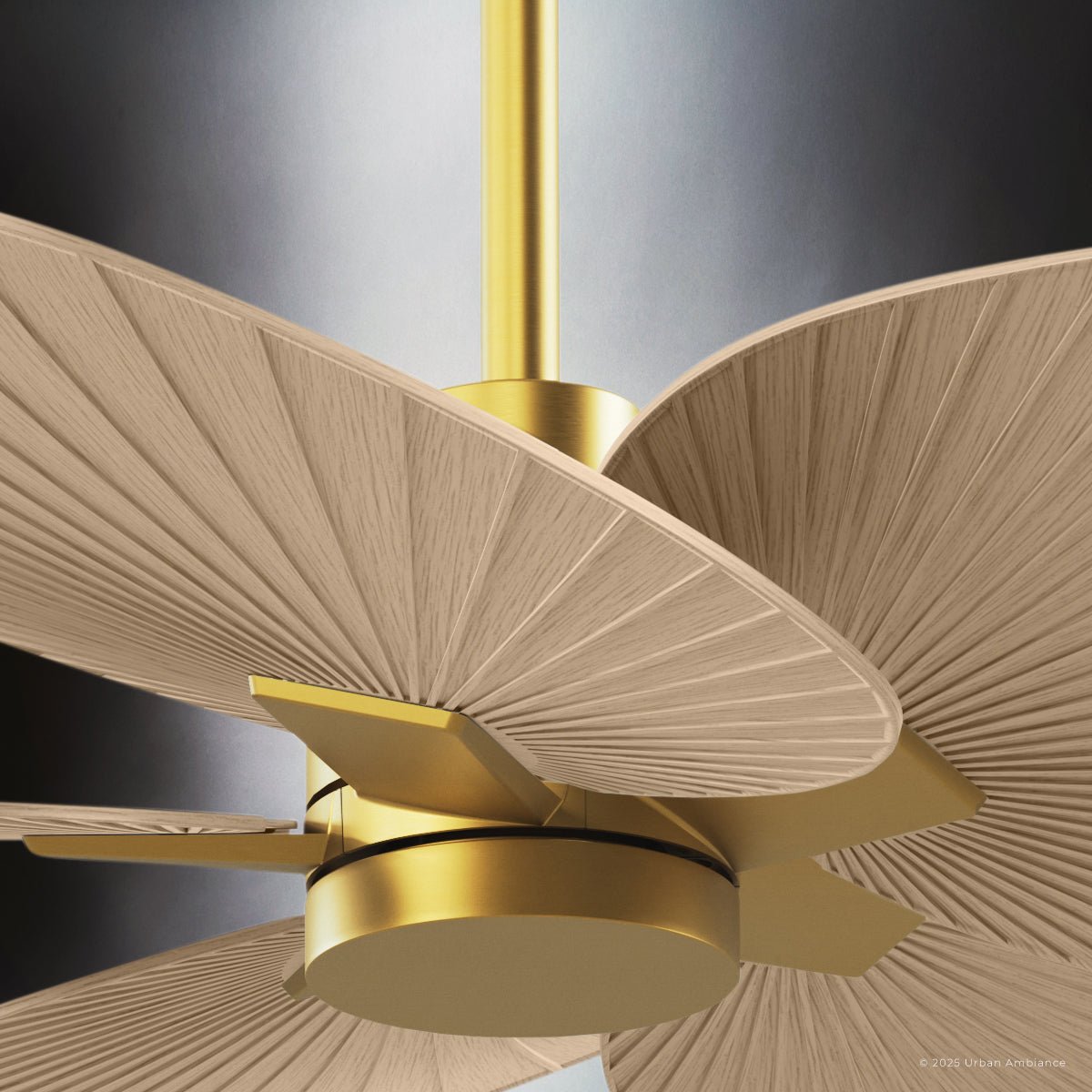 UMC9075 Natural Indoor/Outdoor Ceiling Fan, 8" (Plus Downrod) H x 48" W x 48" D, Brushed Brass Finish, Pelmere Collection