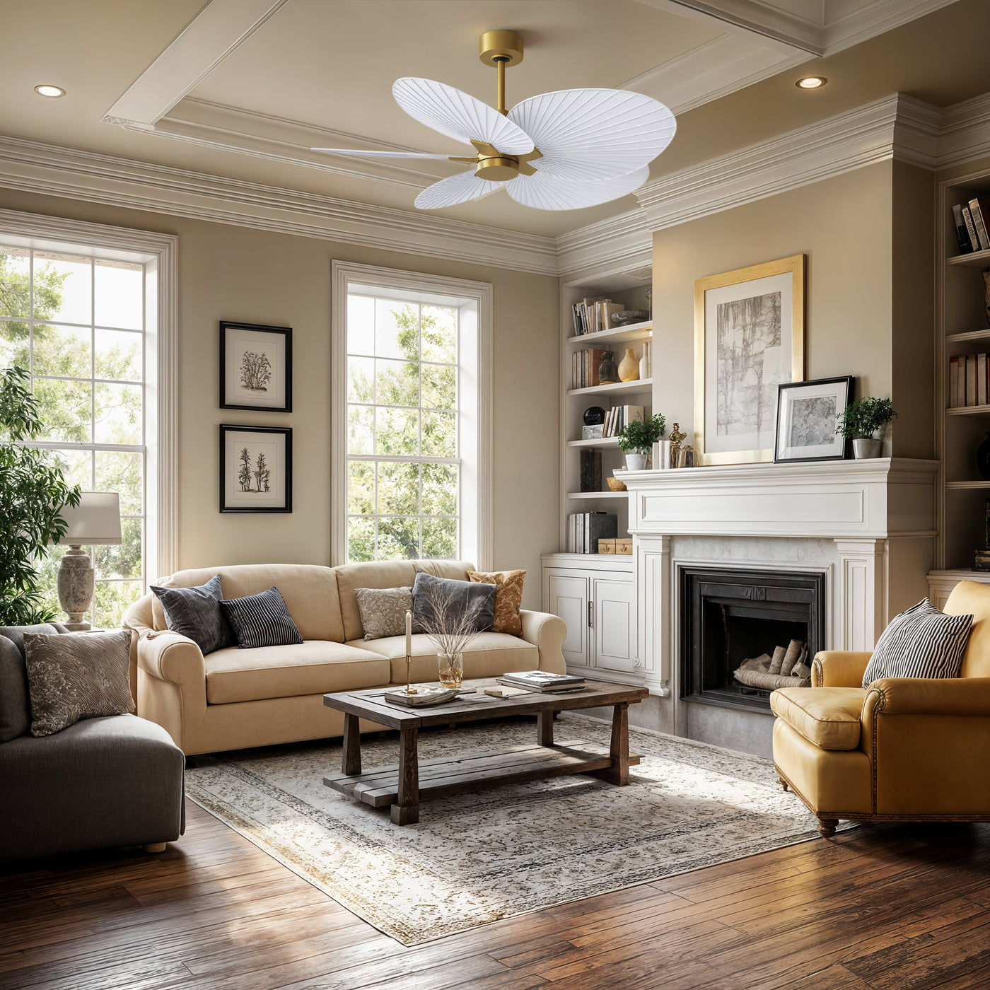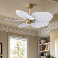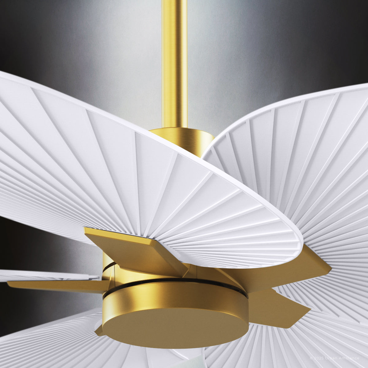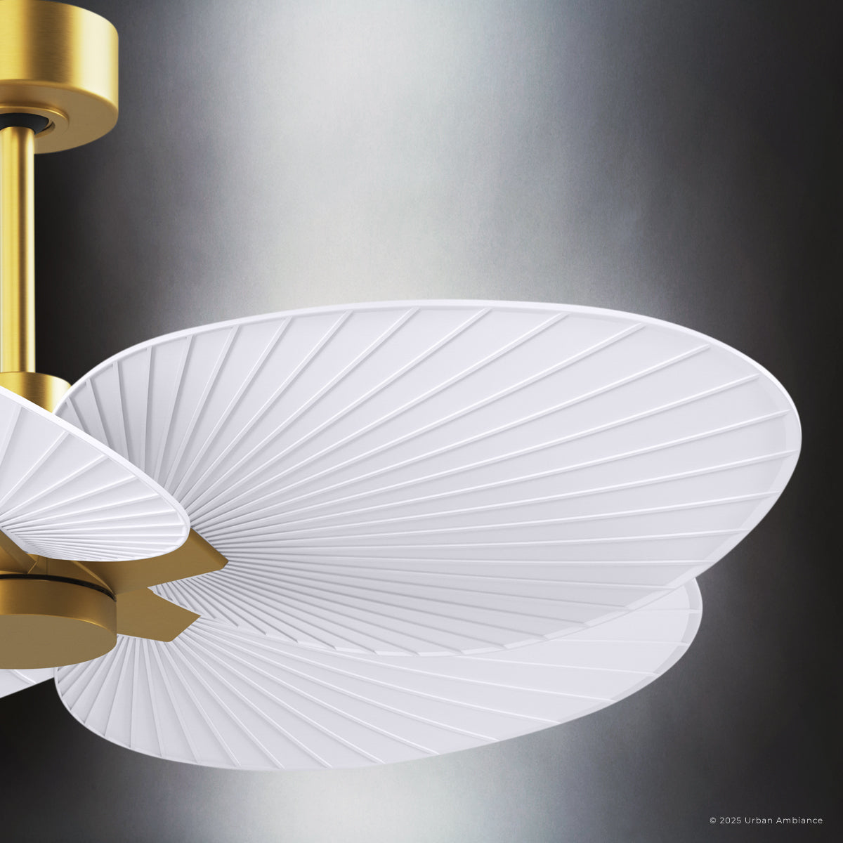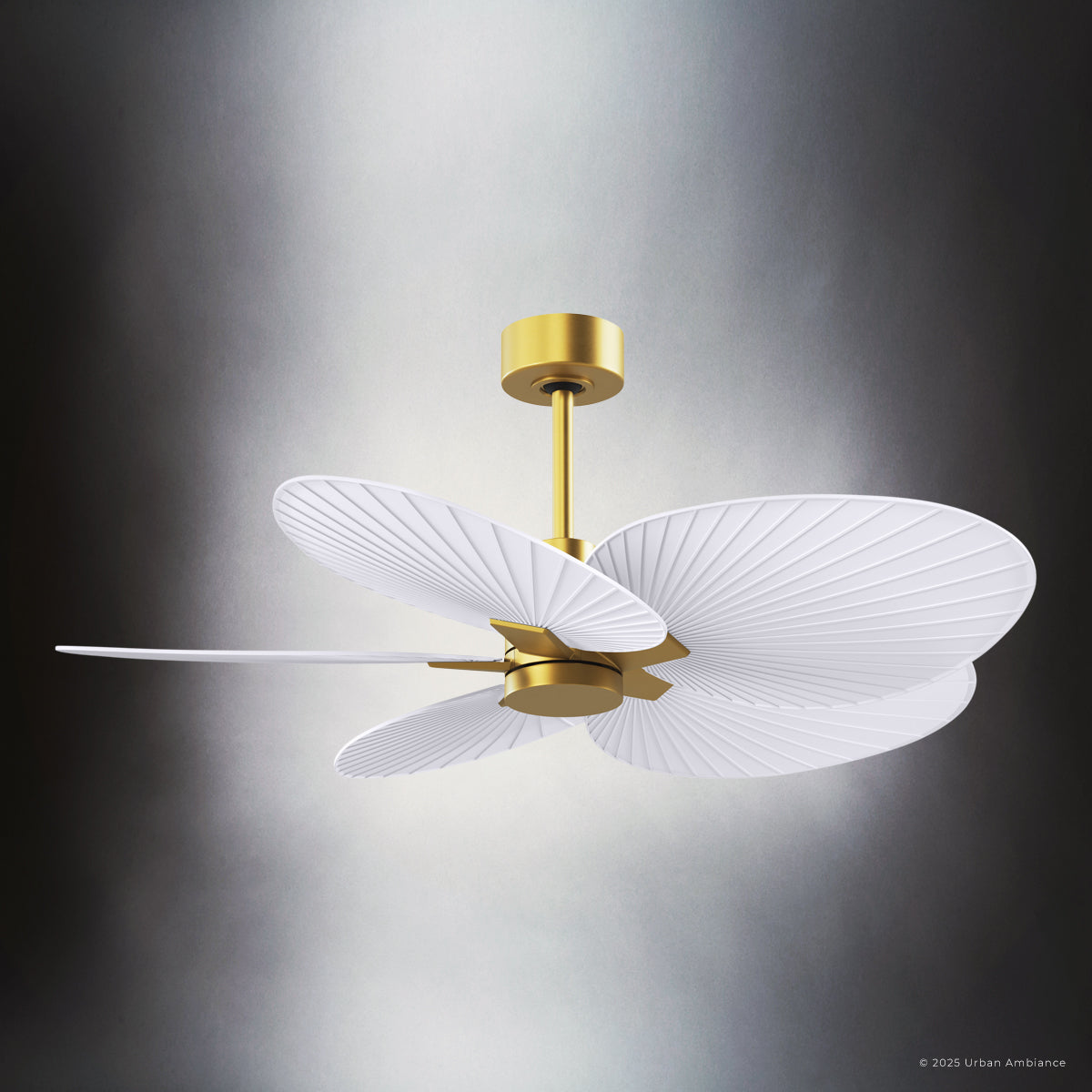UMC9076 Bohemian Indoor/Outdoor Ceiling Fan, 8" (Plus Downrod) H x 48" W x 48" D, Brushed Brass Finish, Pelmere Collection
