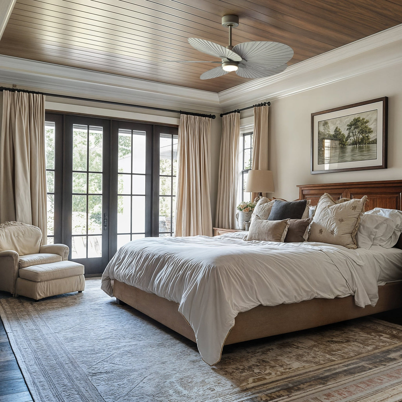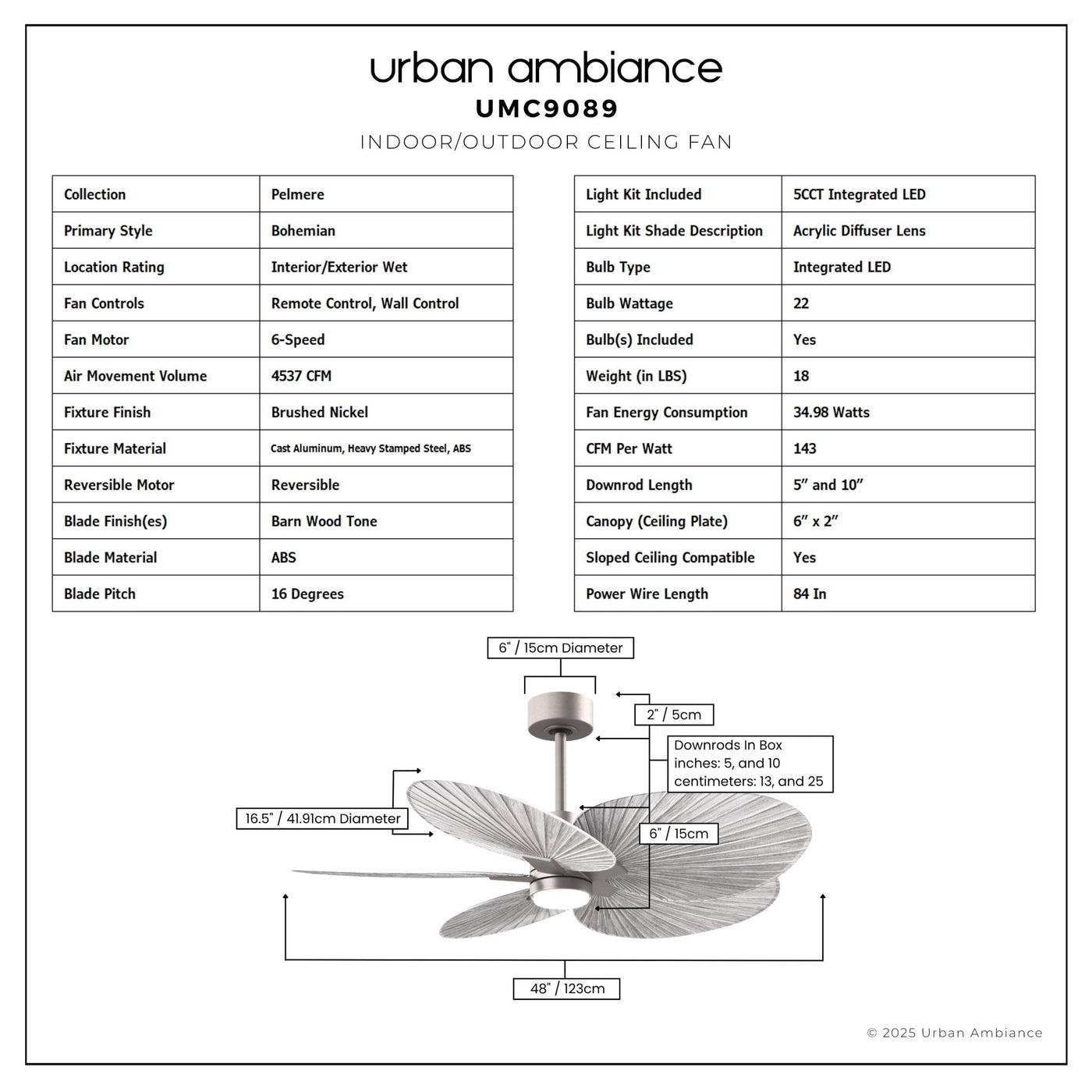 UMC9089 Bohemian Indoor/Outdoor Ceiling Fan, 8" (Plus Downrod) H x 48" W x 48" D, Brushed Nickel Finish, Pelmere Collection