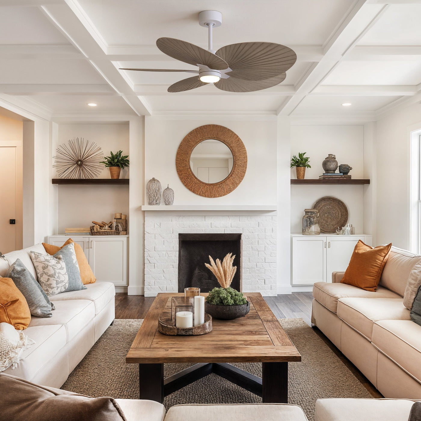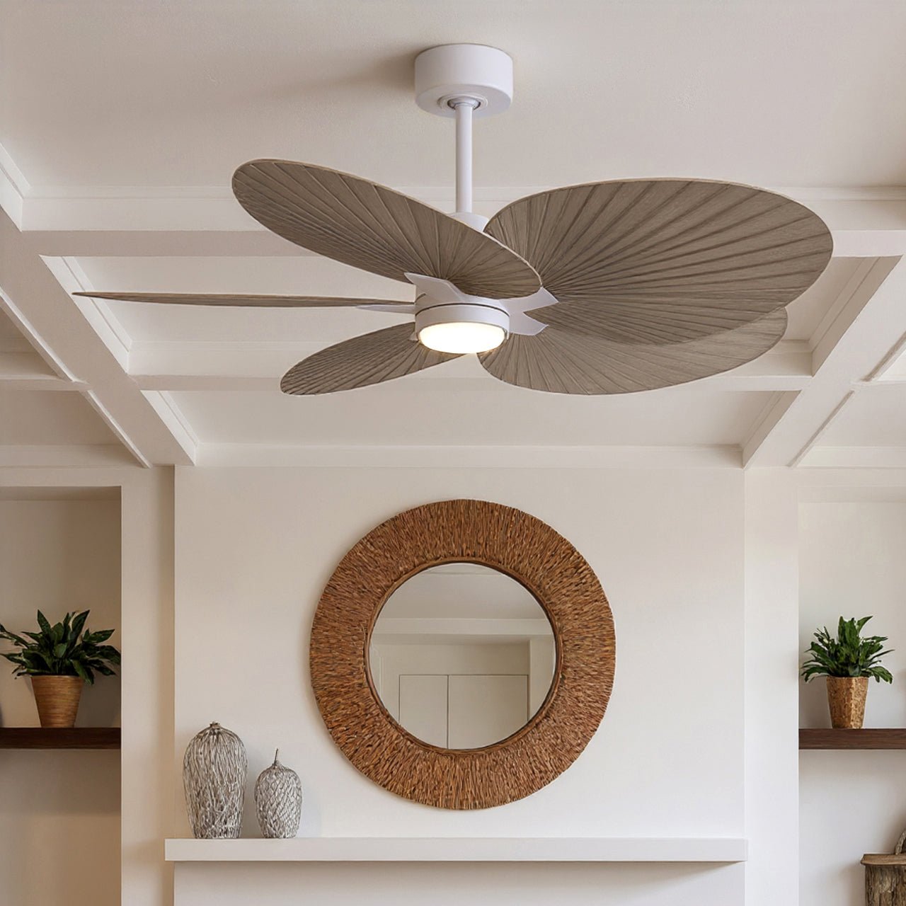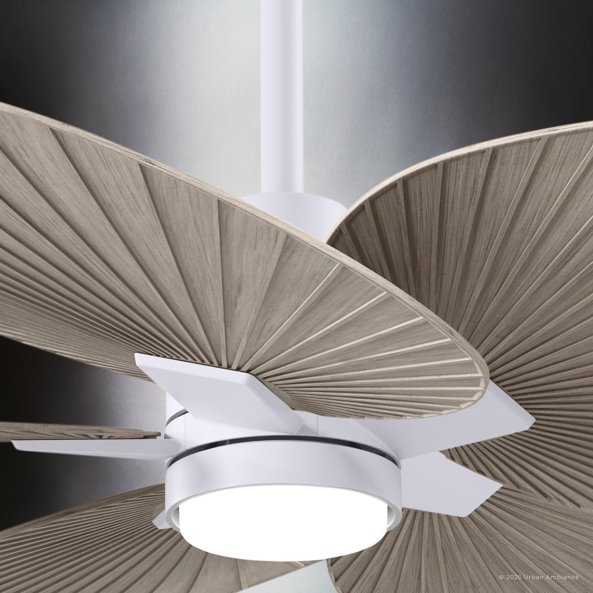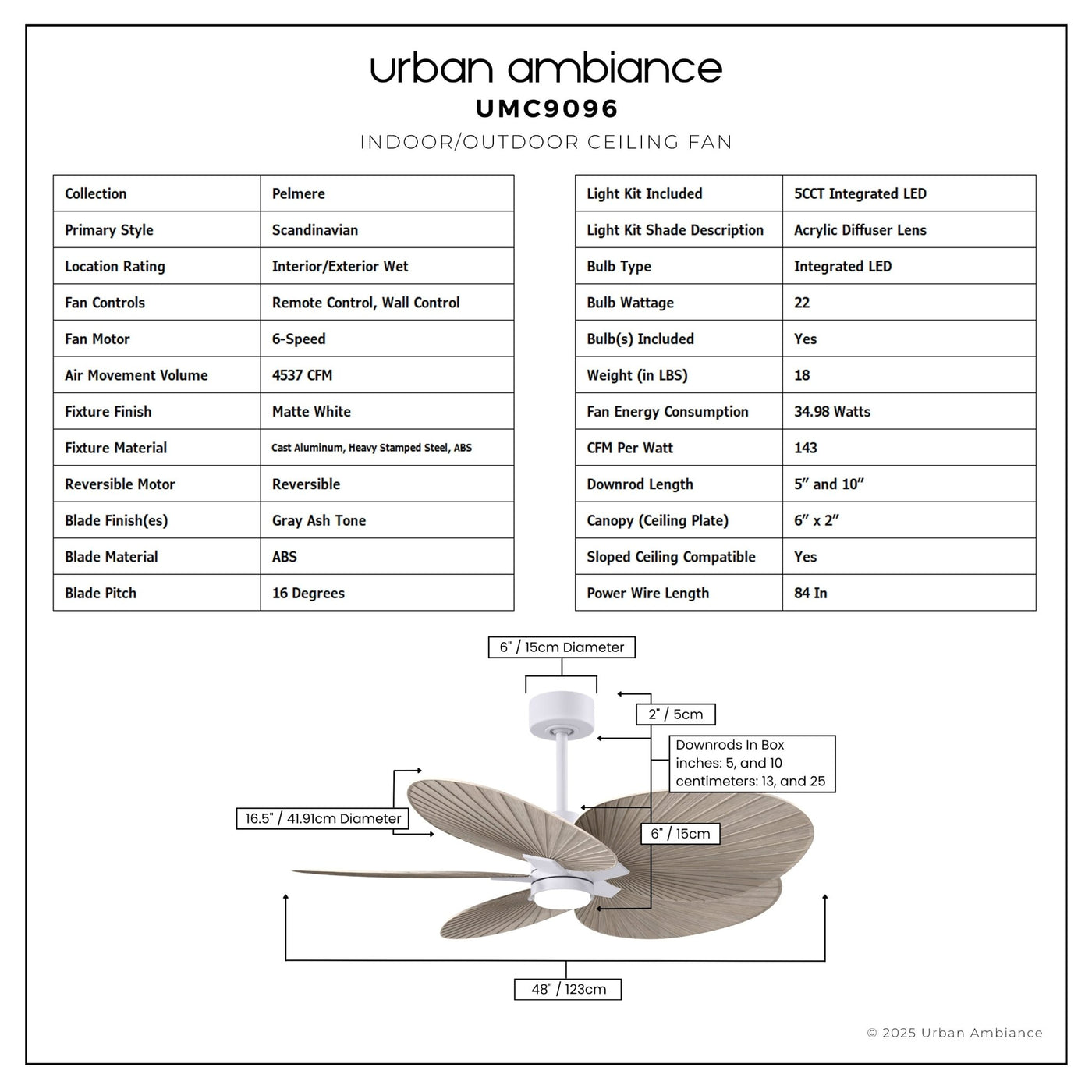 UMC9096 Scandinavian Indoor/Outdoor Ceiling Fan, 8" (Plus Downrod) H x 48" W x 48" D, Matte White Finish, Pelmere Collection