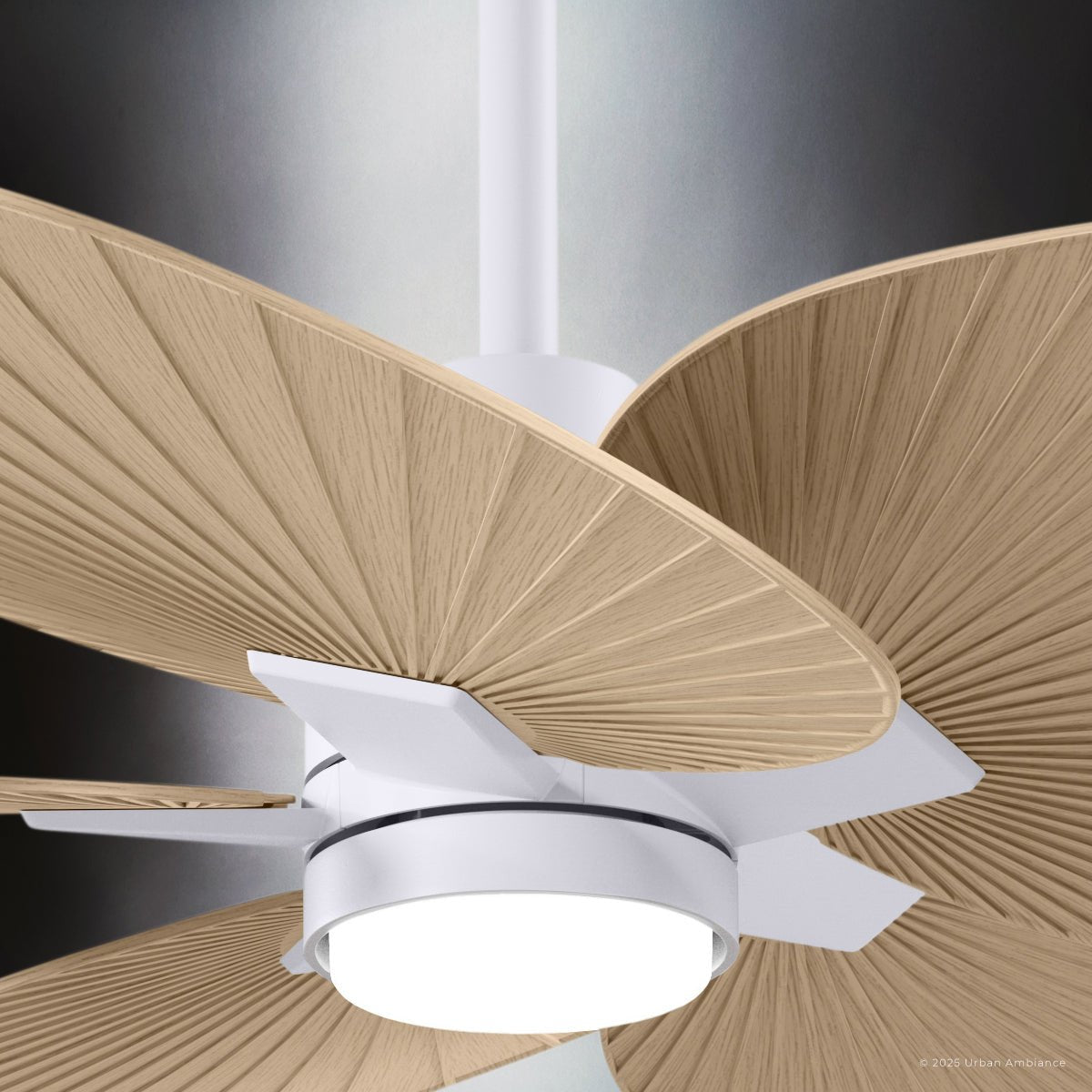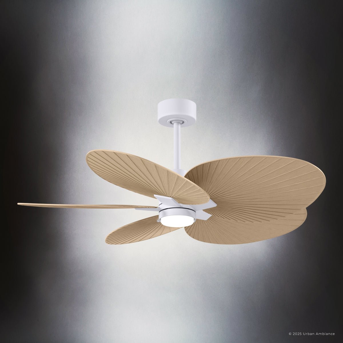 UMC9097 Farmhouse Indoor/Outdoor Ceiling Fan, 8" (Plus Downrod) H x 48" W x 48" D, Matte White Finish, Pelmere Collection