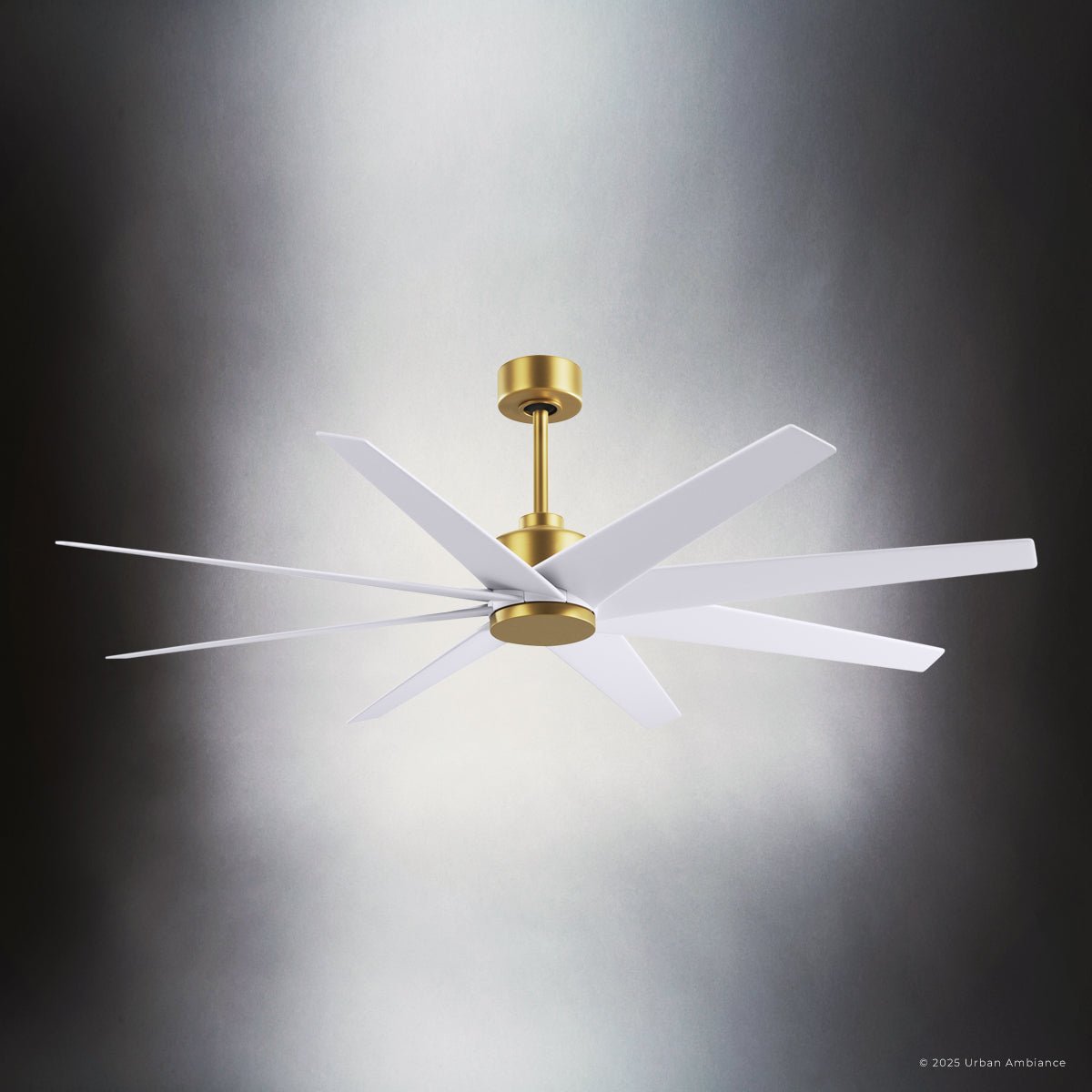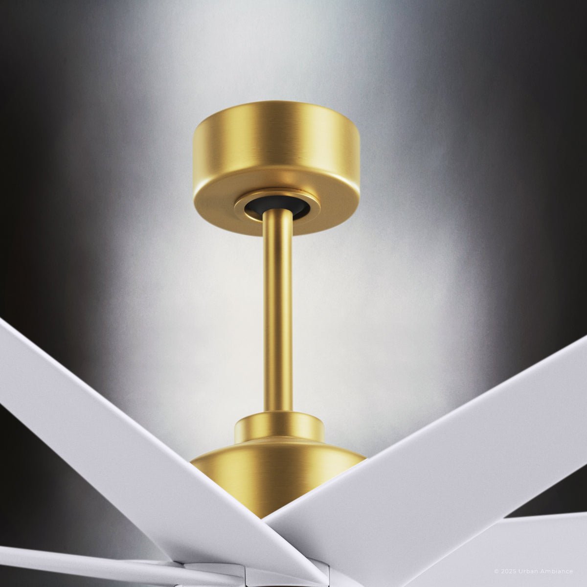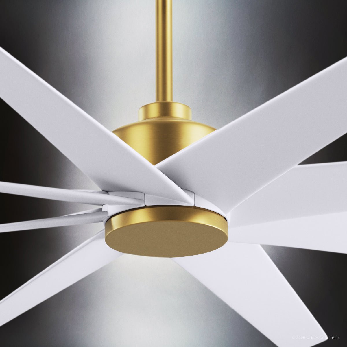 UMC9114 Glam Indoor/Outdoor Ceiling Fan, 8.5" (Plus Downrod) H x 64" W x 64" D, Brushed Brass Finish, Brivelle Collection