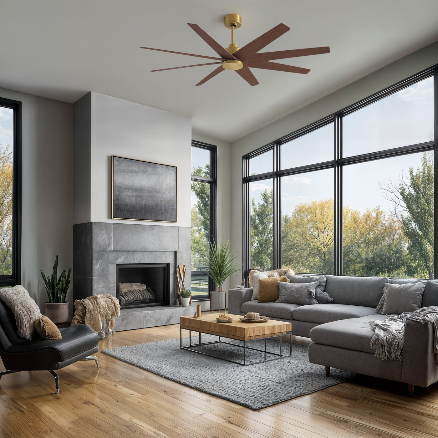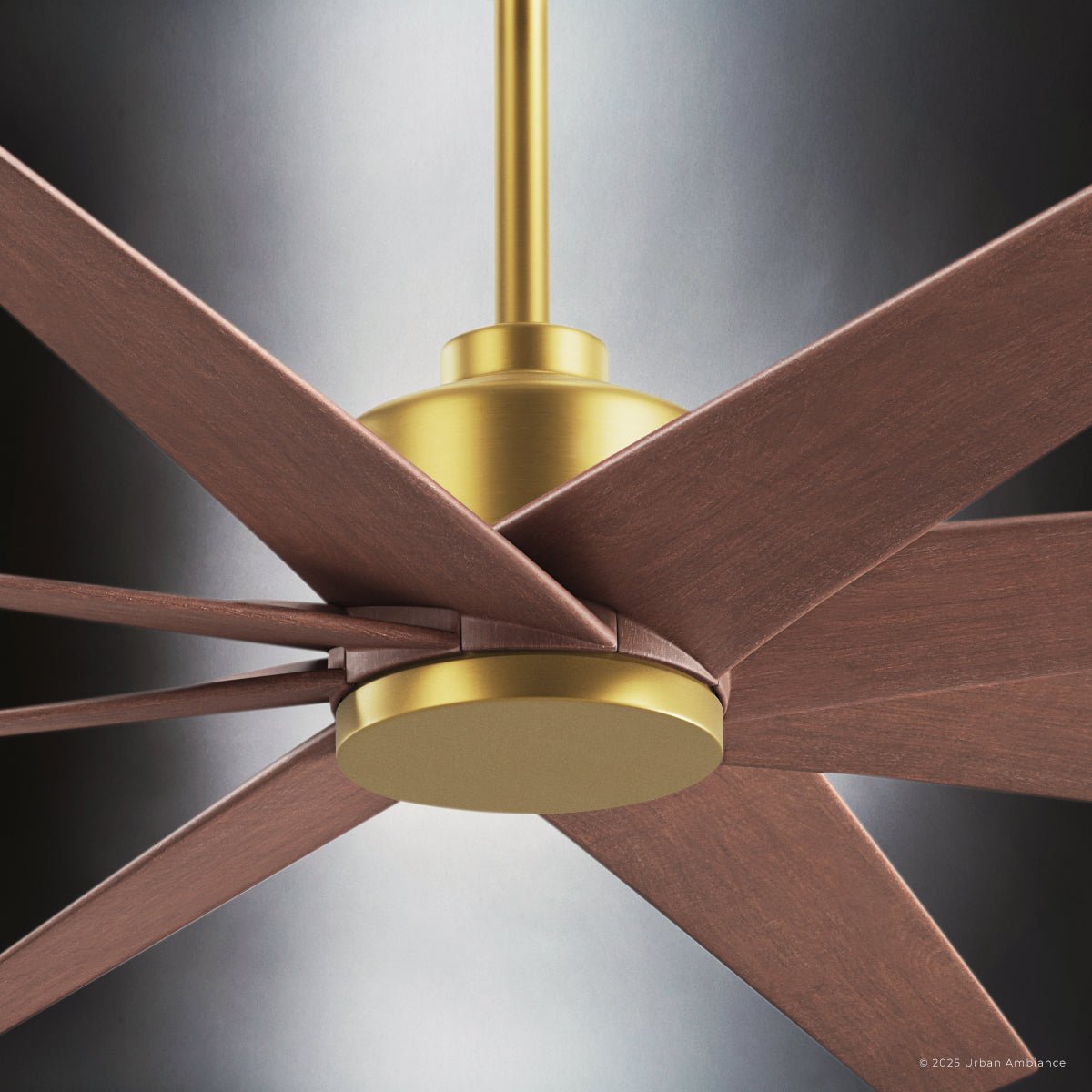 UMC9115 Transitional Indoor/Outdoor Ceiling Fan, 8.5" (Plus Downrod) H x 64" W x 64" D, Brushed Brass Finish, Brivelle Collection