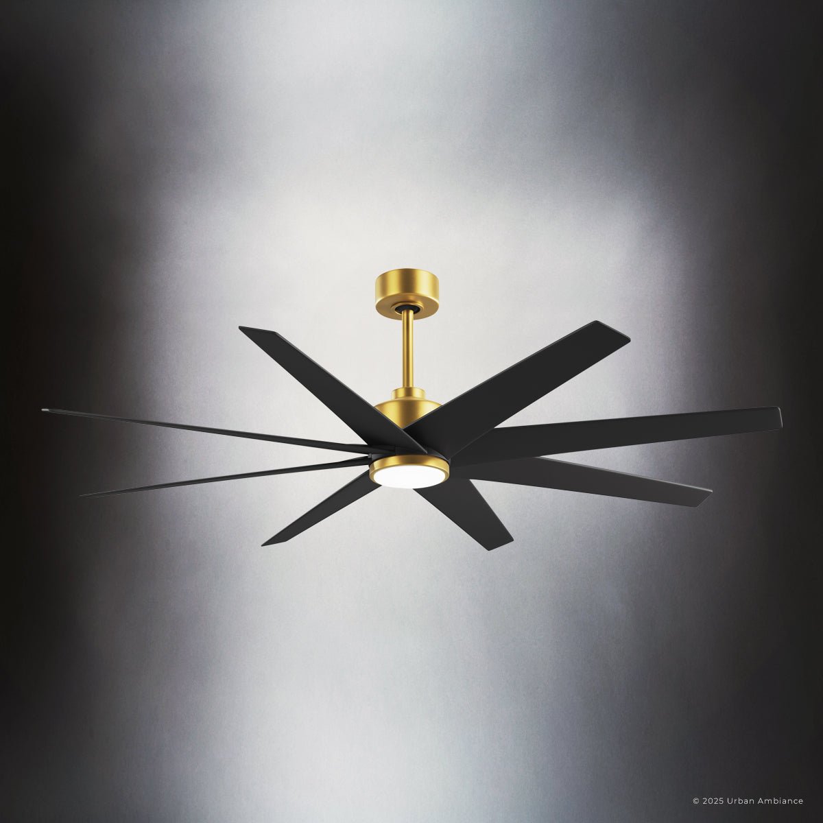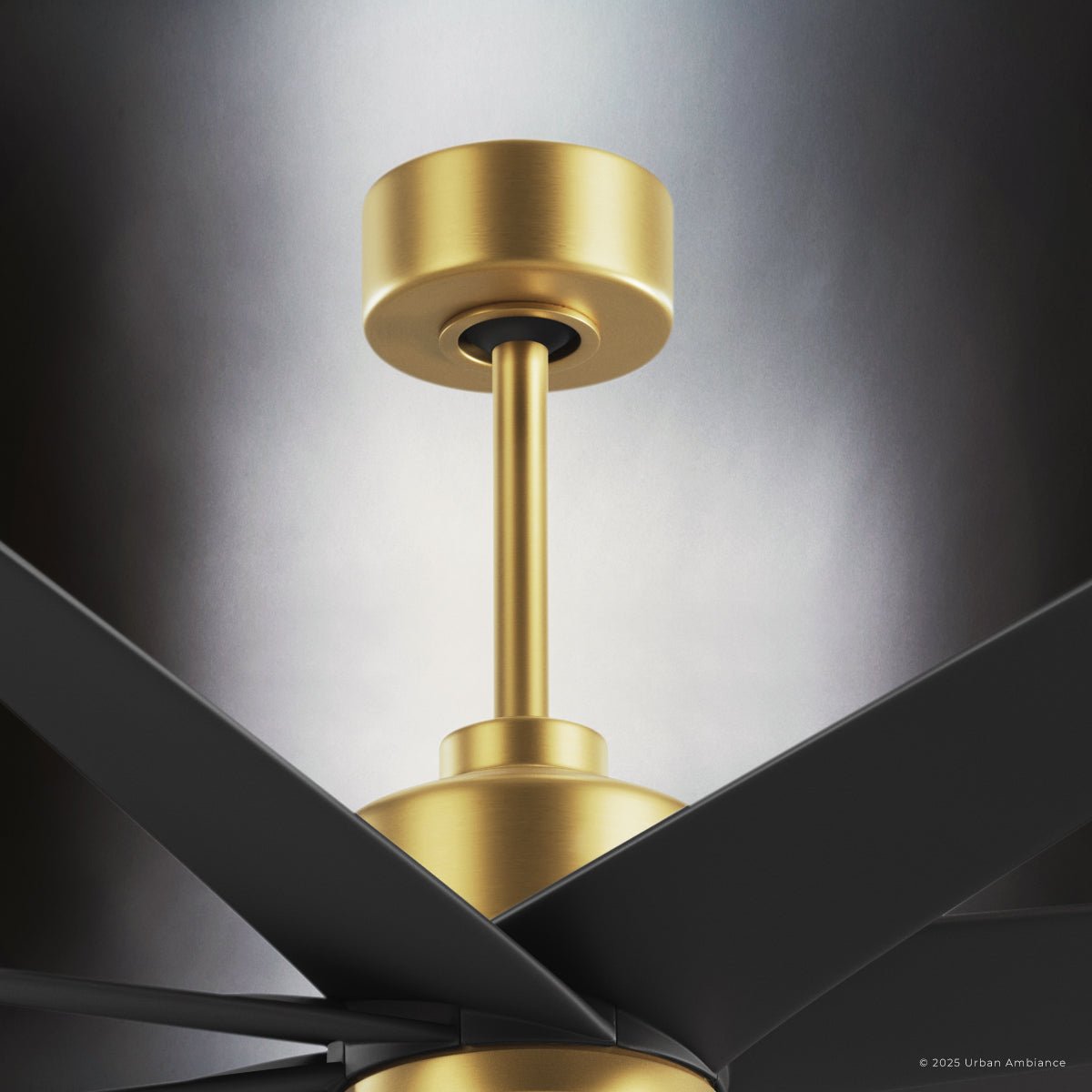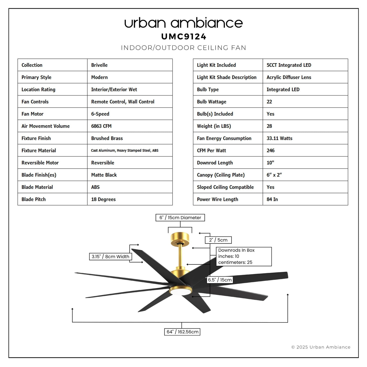 UMC9124 Modern Indoor/Outdoor Ceiling Fan, 9" (Plus Downrod) H x 64" W x 64" D, Brushed Brass Finish, Brivelle Collection