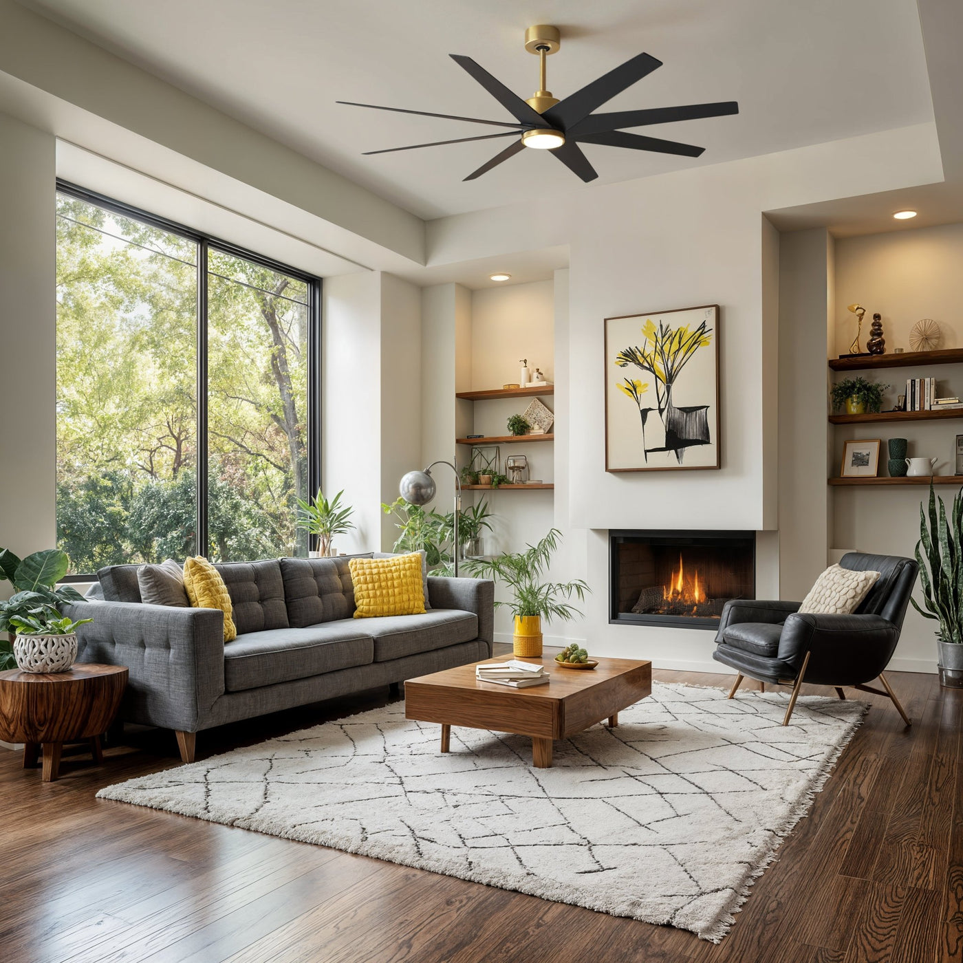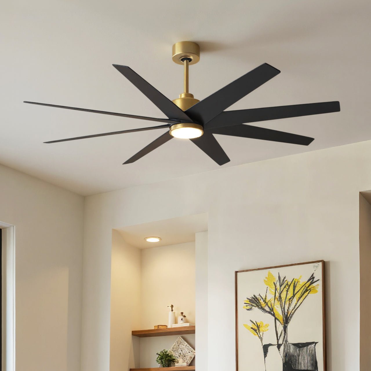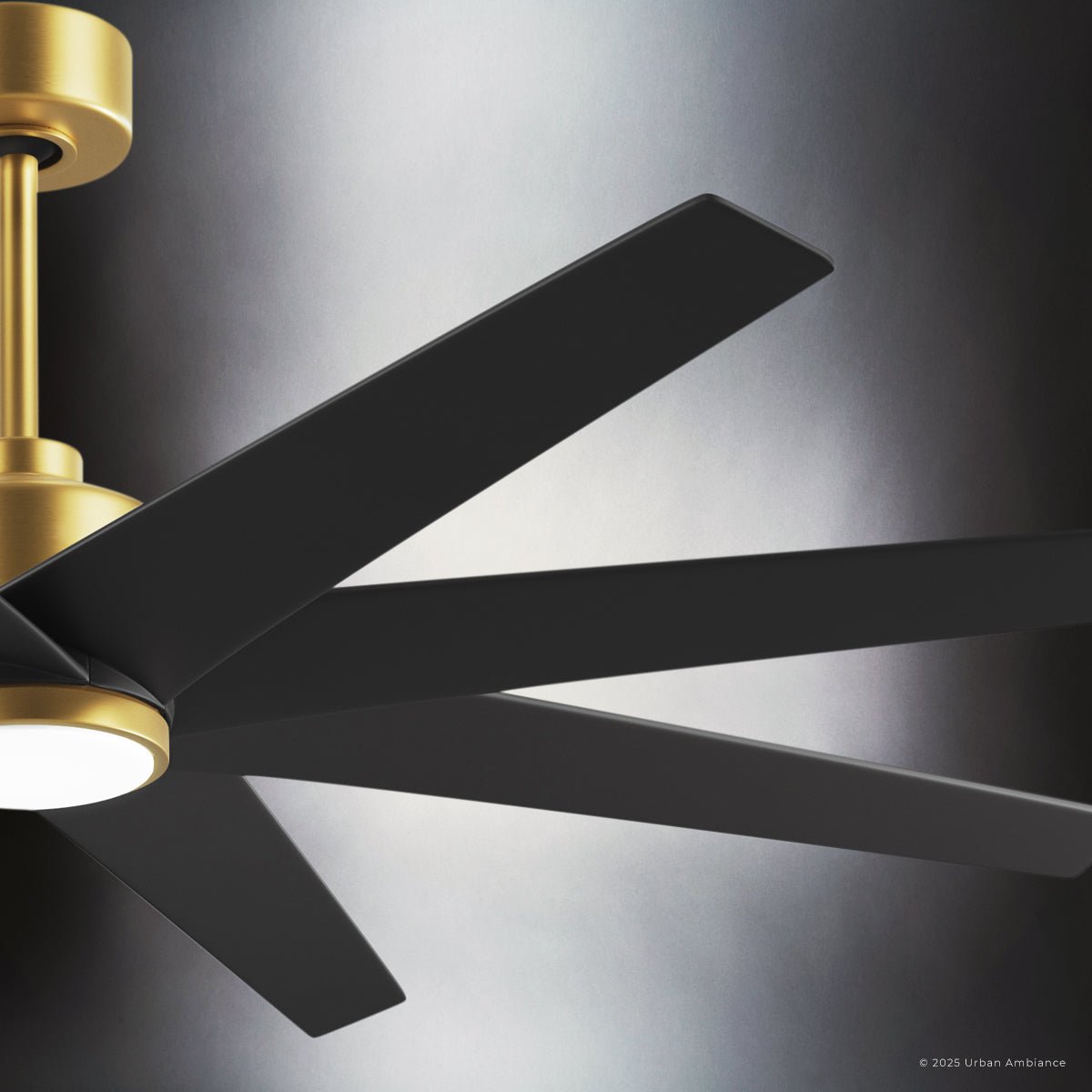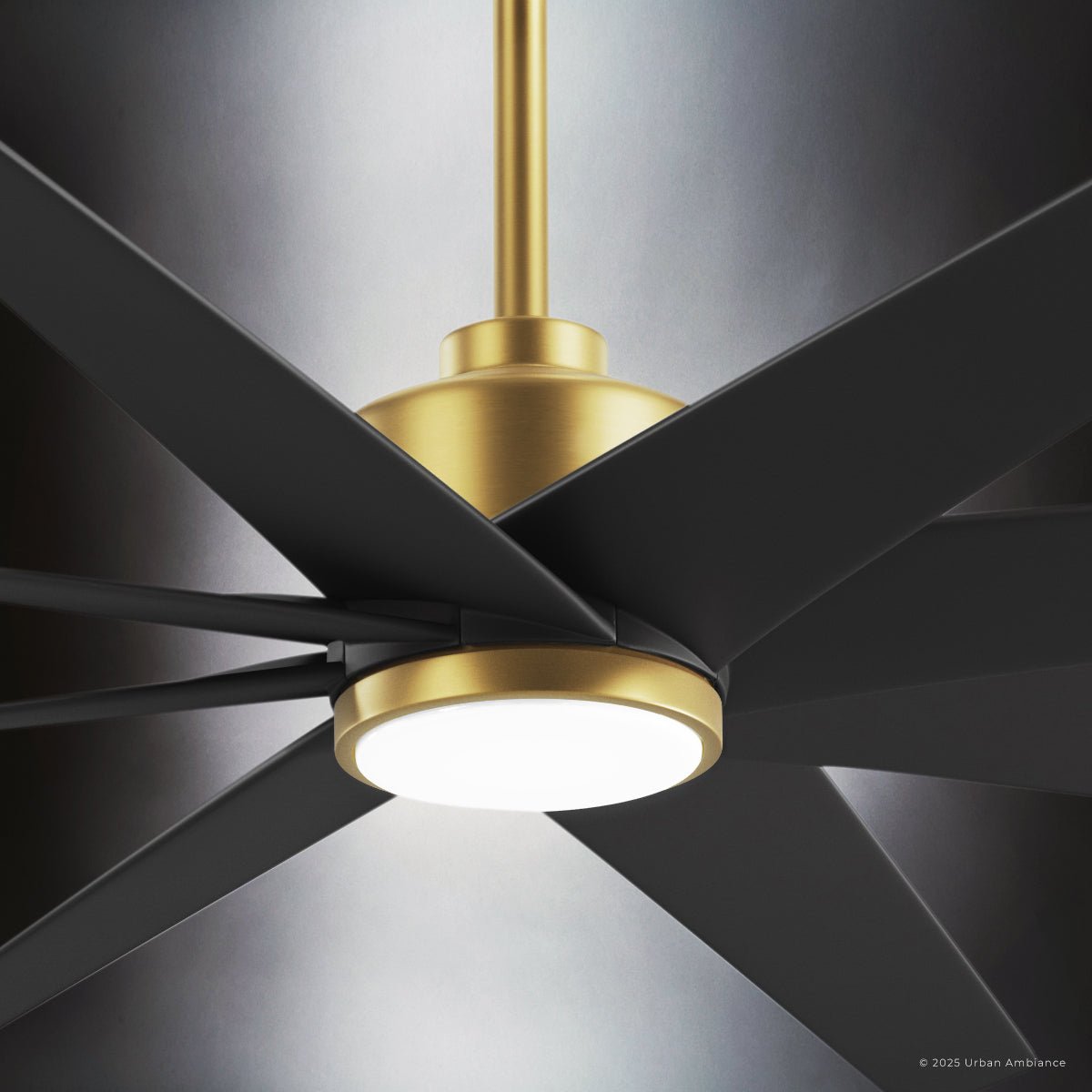 UMC9124 Modern Indoor/Outdoor Ceiling Fan, 9" (Plus Downrod) H x 64" W x 64" D, Brushed Brass Finish, Brivelle Collection
