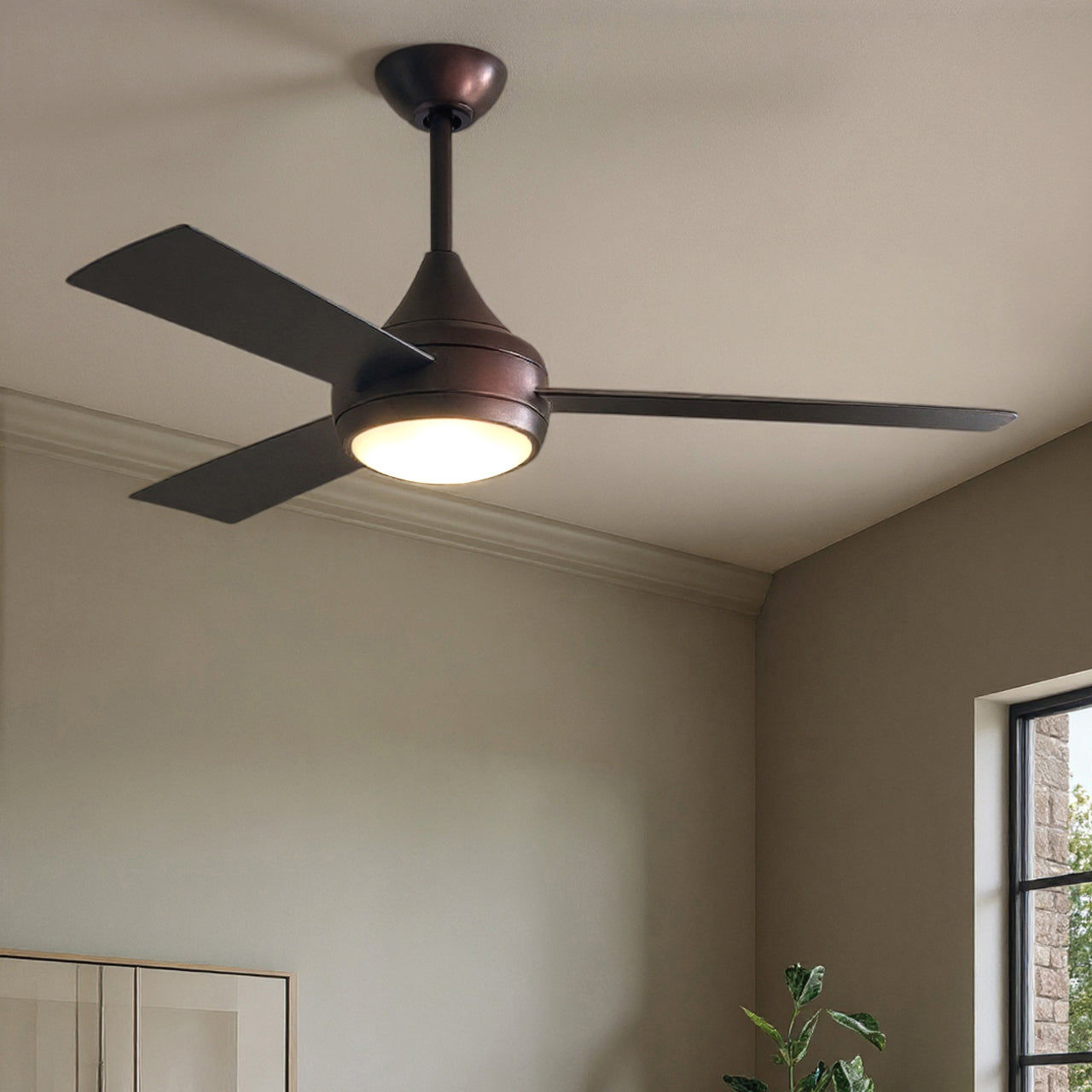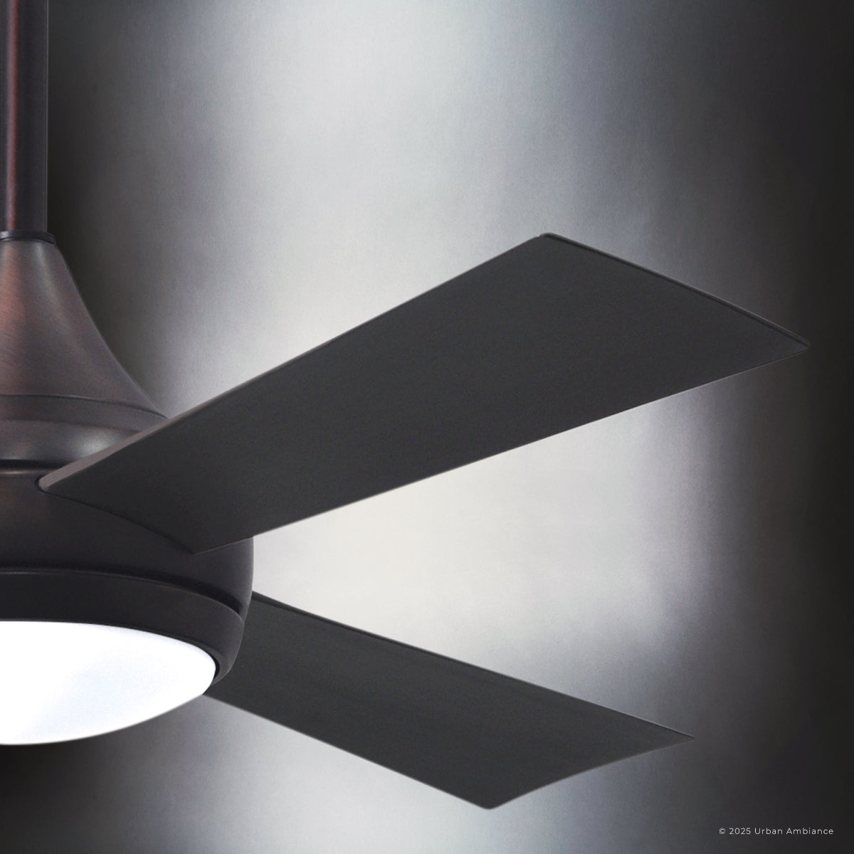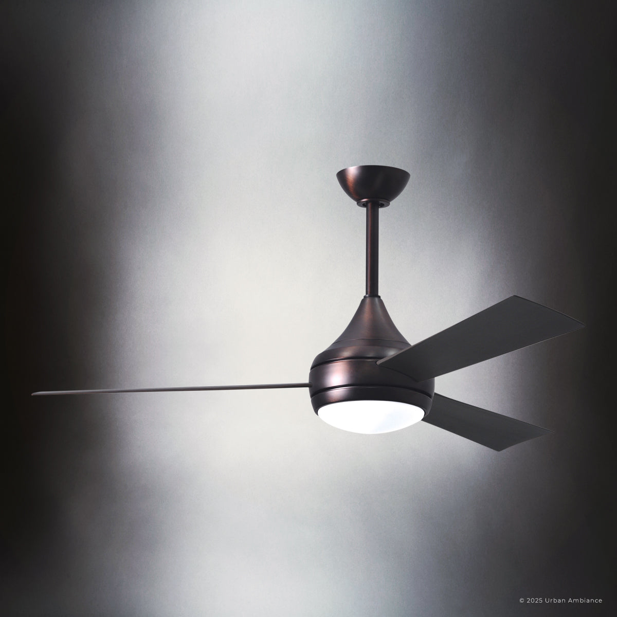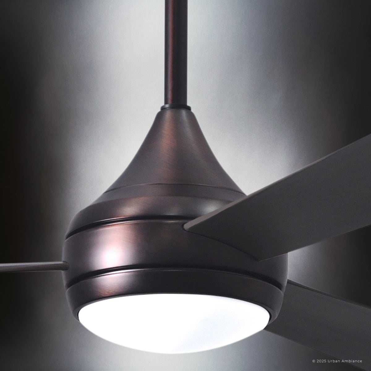 UMC9170 Minimalist Indoor/Outdoor Ceiling Fan, 9" (Plus Downrod) H x 52" W x 52" D, Brushed Bronze Finish, Asquell Collection