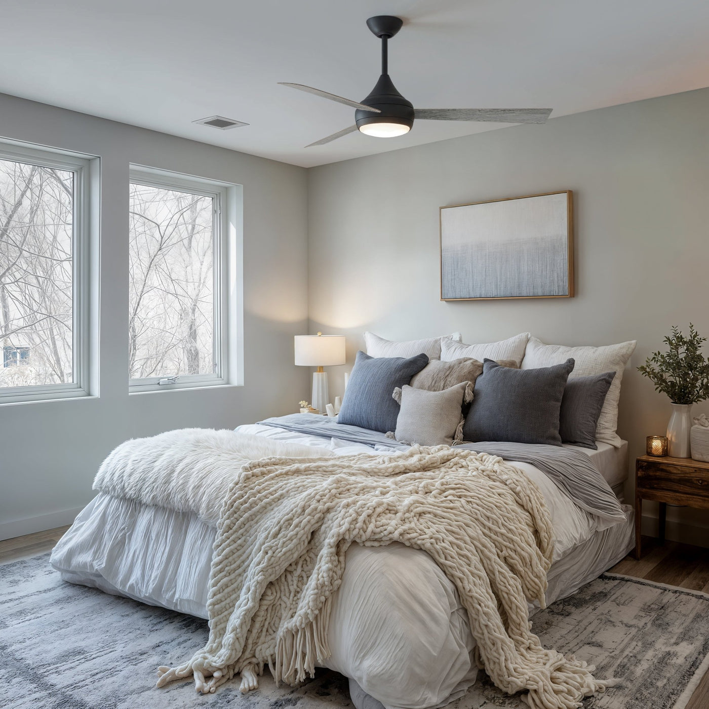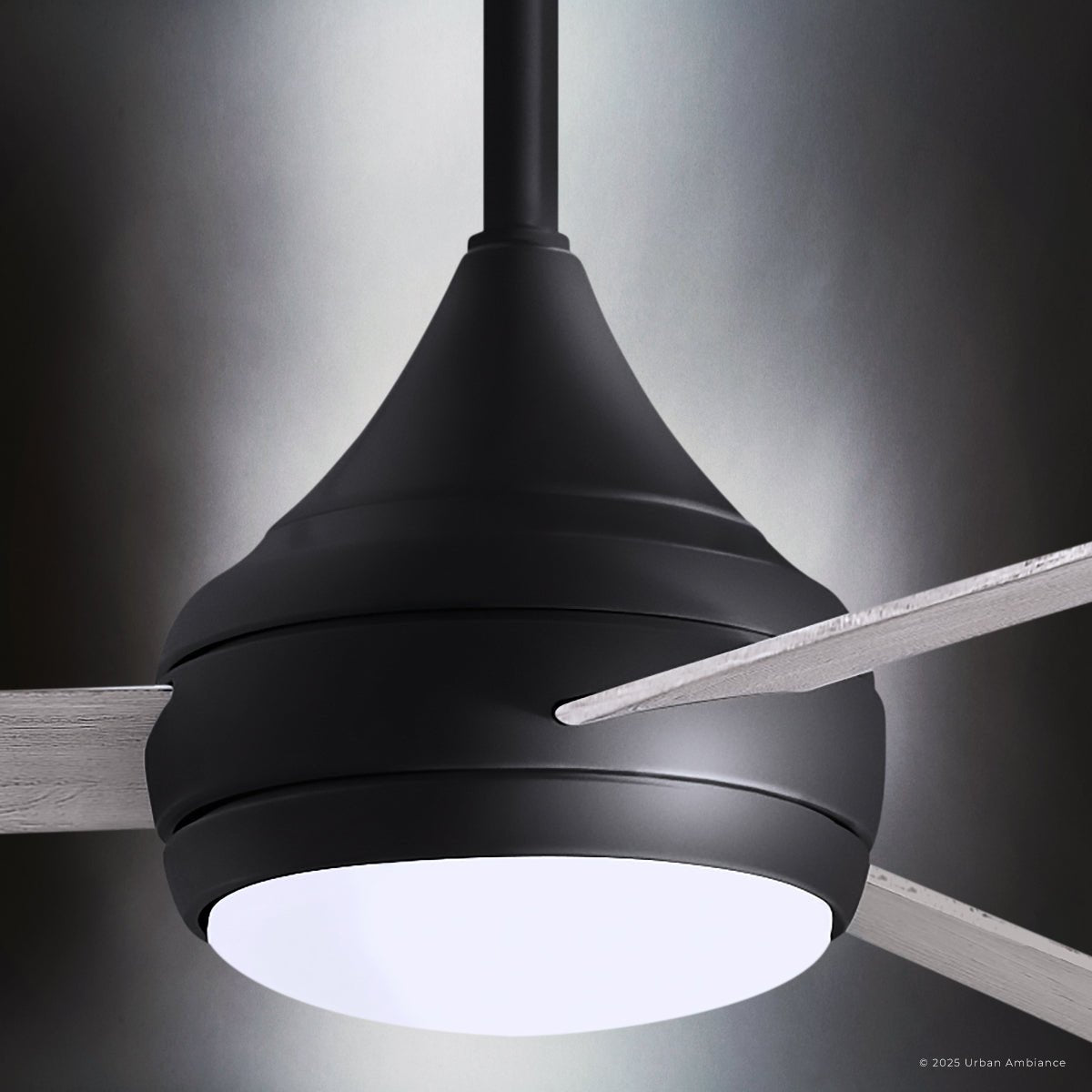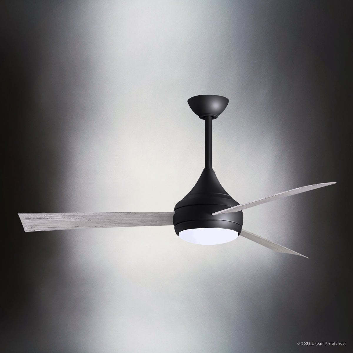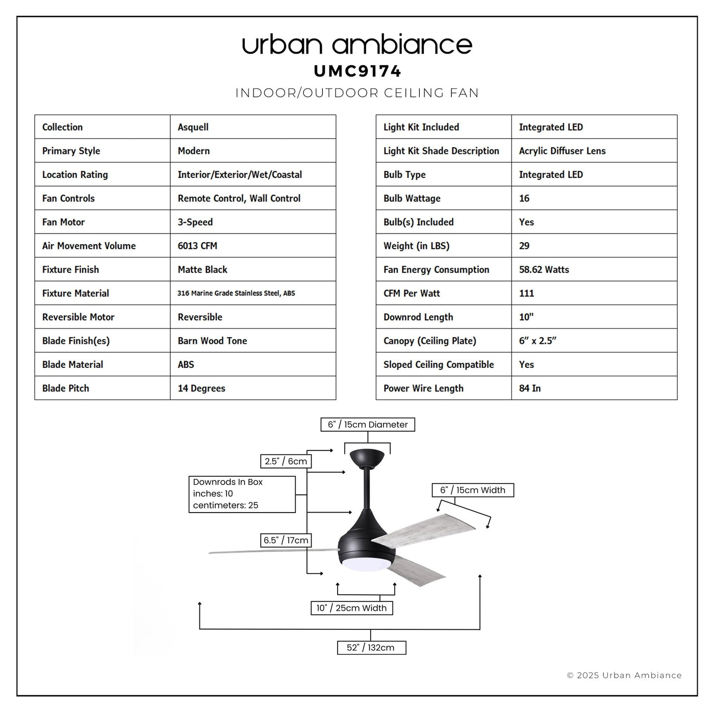 UMC9174 Modern Indoor/Outdoor Ceiling Fan, 9" (Plus Downrod) H x 52" W x 52" D, Matte Black Finish, Asquell Collection