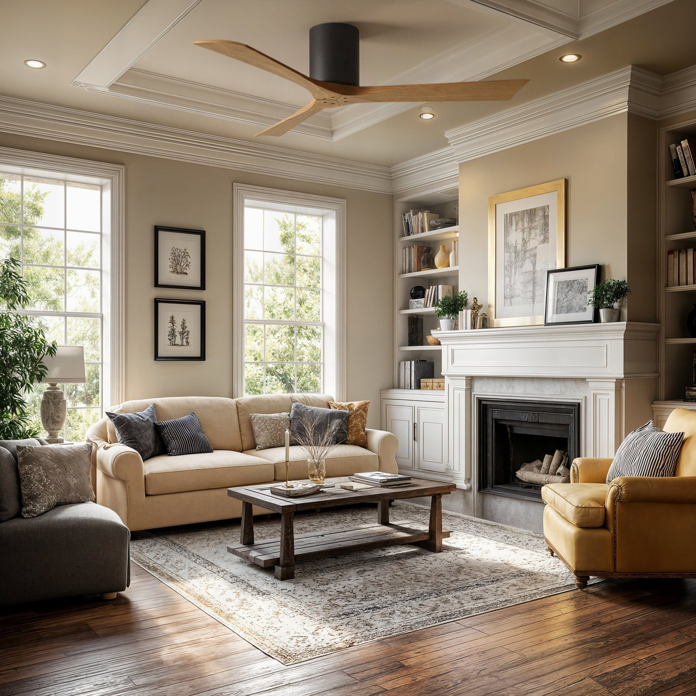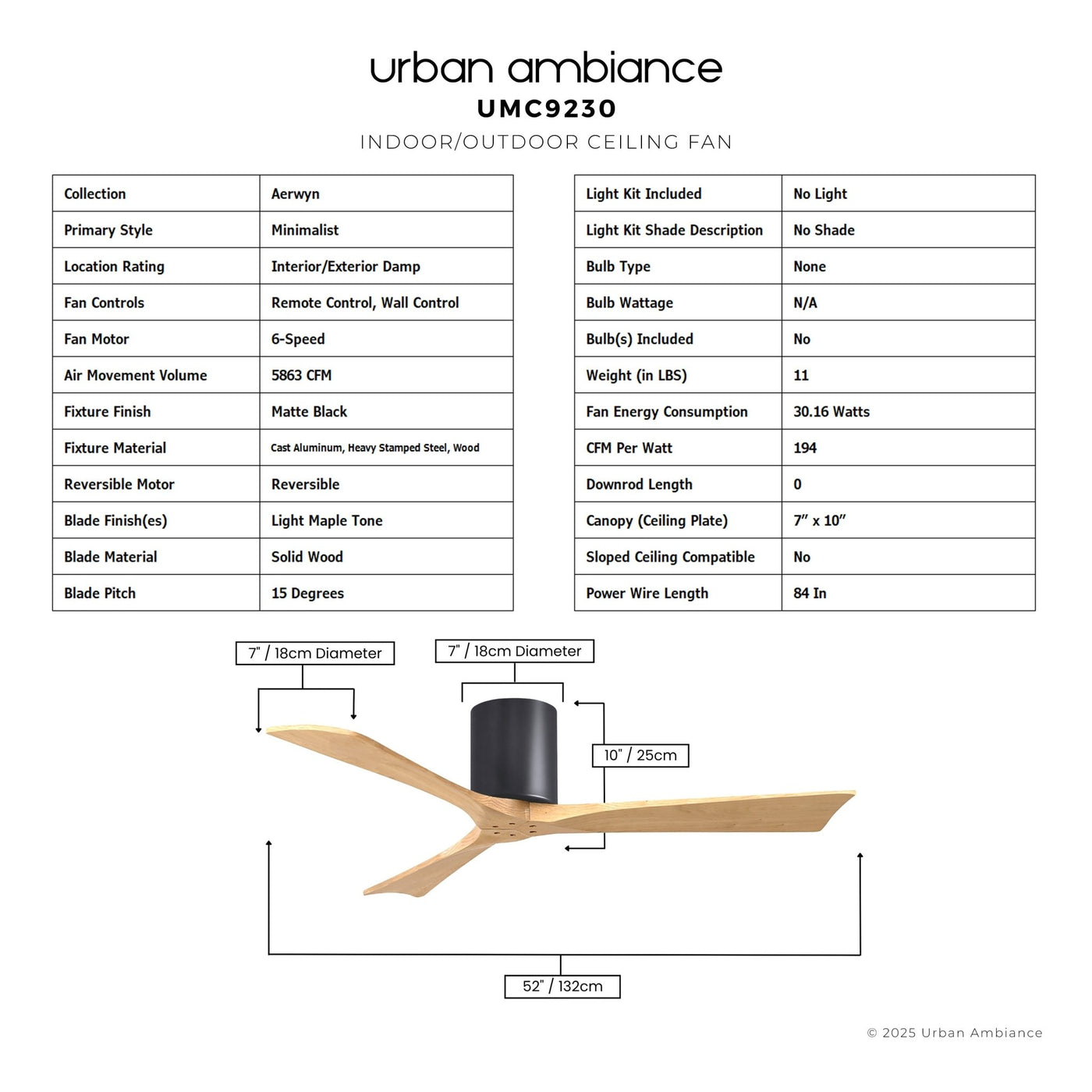 UMC9230 Minimalist Indoor/Outdoor Ceiling Fan, 10" H x 52" W x 52" D, Matte Black Finish, Aerwyn Collection