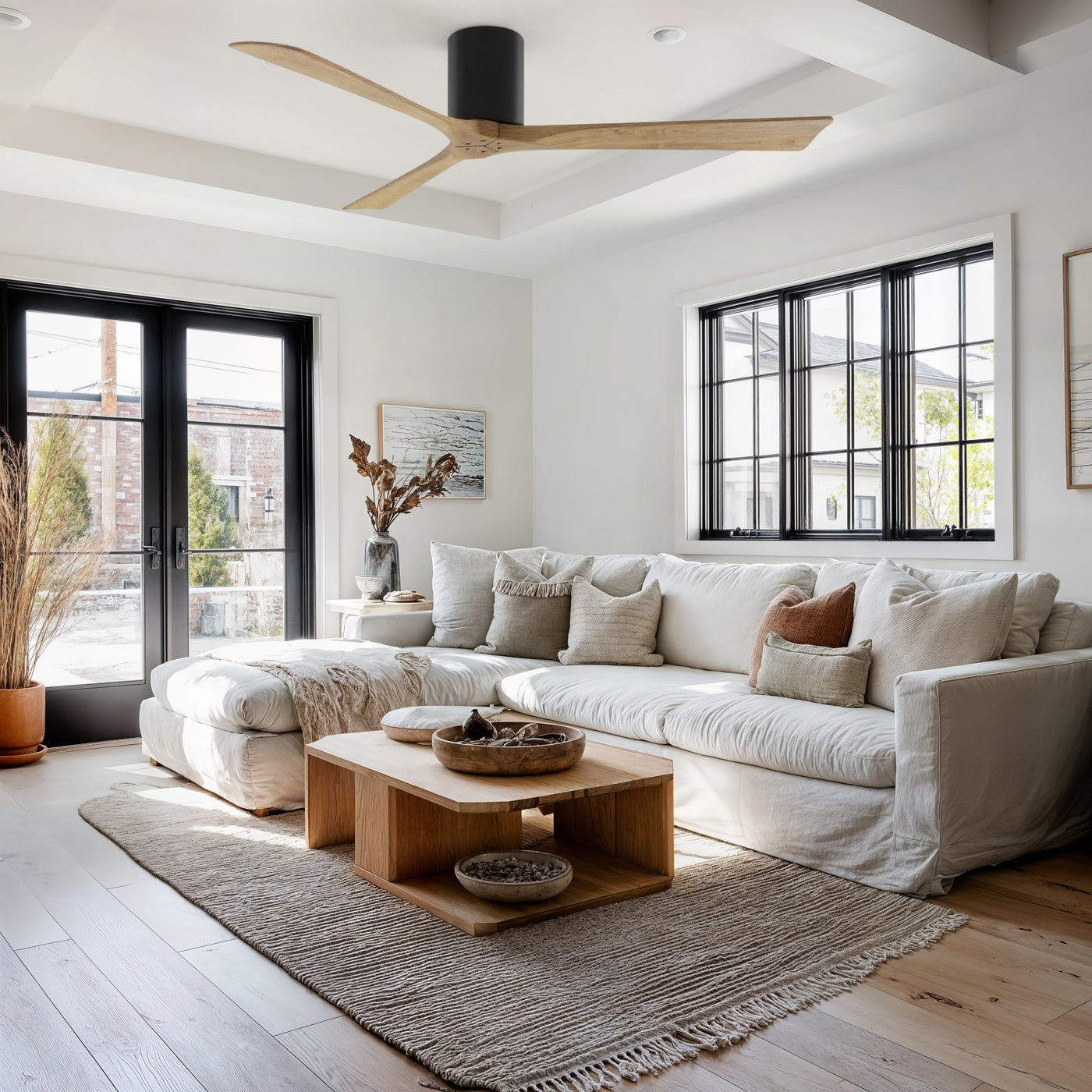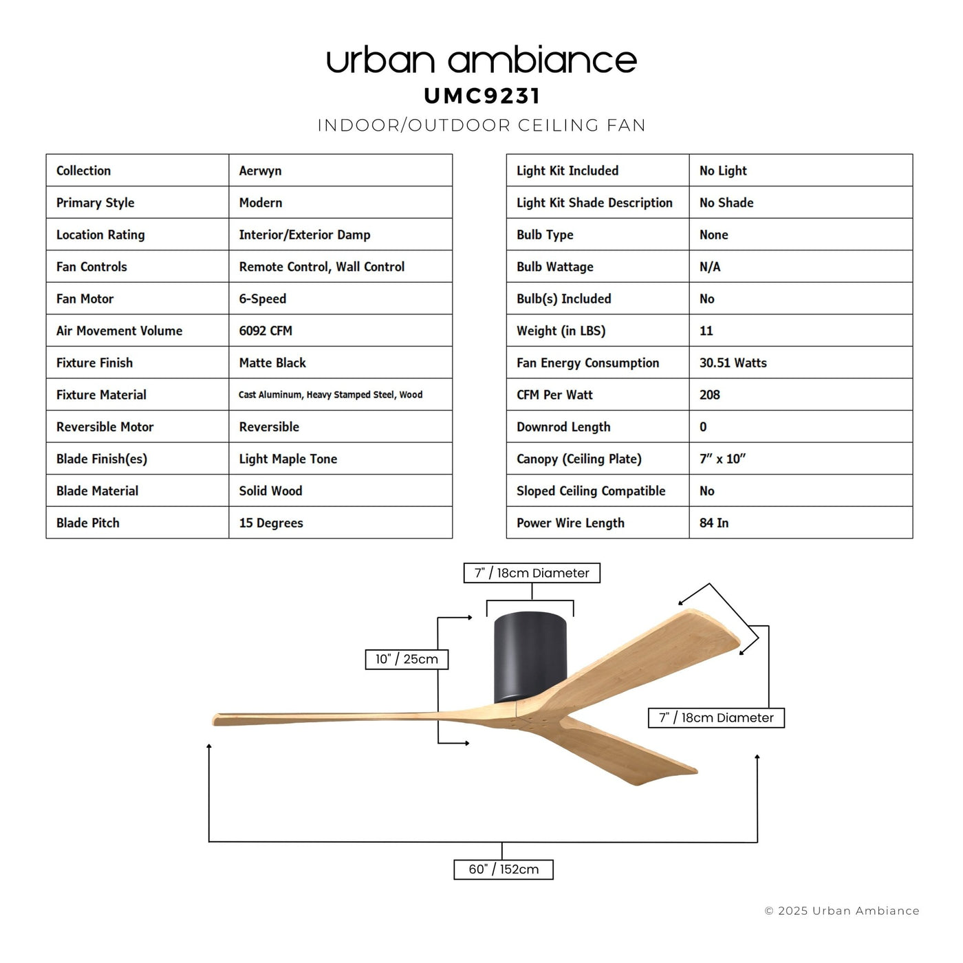 UMC9231 Modern Indoor/Outdoor Ceiling Fan, 10" H x 60" W x 60" D, Matte Black Finish, Aerwyn Collection