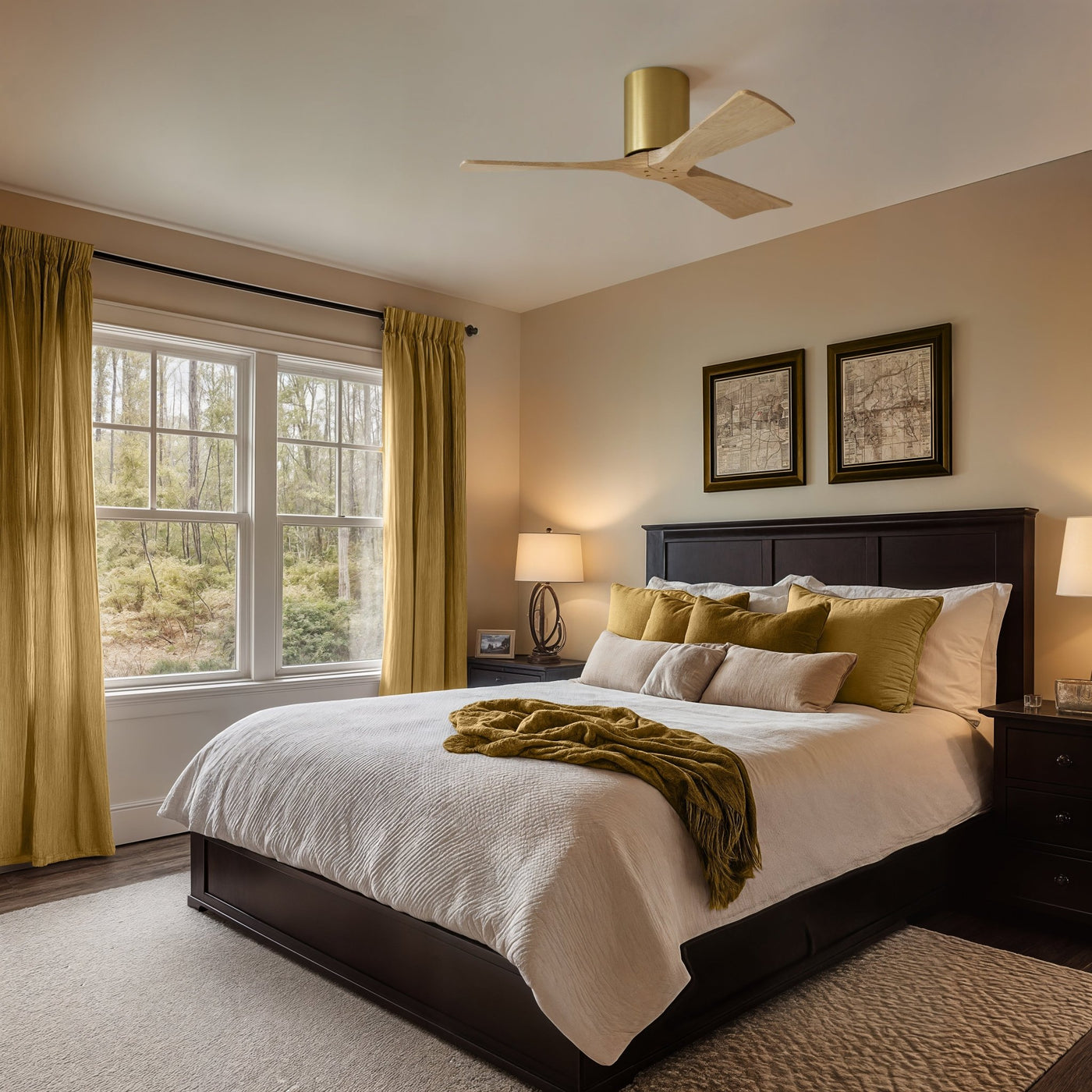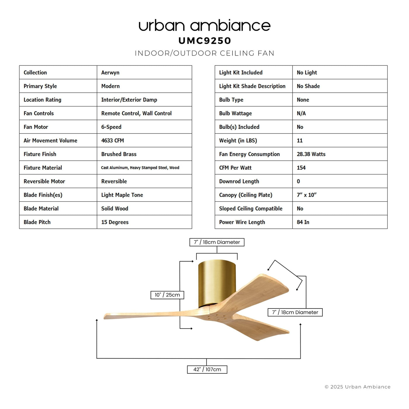 UMC9250 Modern Indoor/Outdoor Ceiling Fan, 10" H x 42" W x 42" D, Brushed Brass Finish, Aerwyn Collection